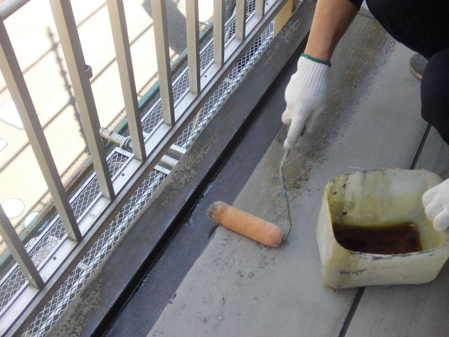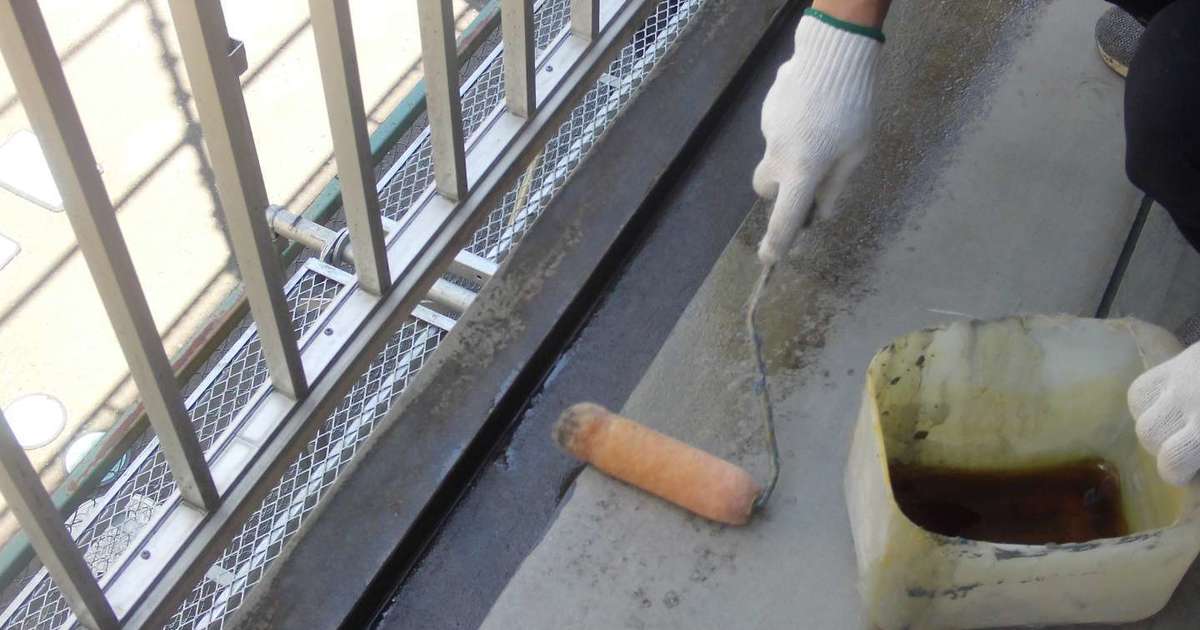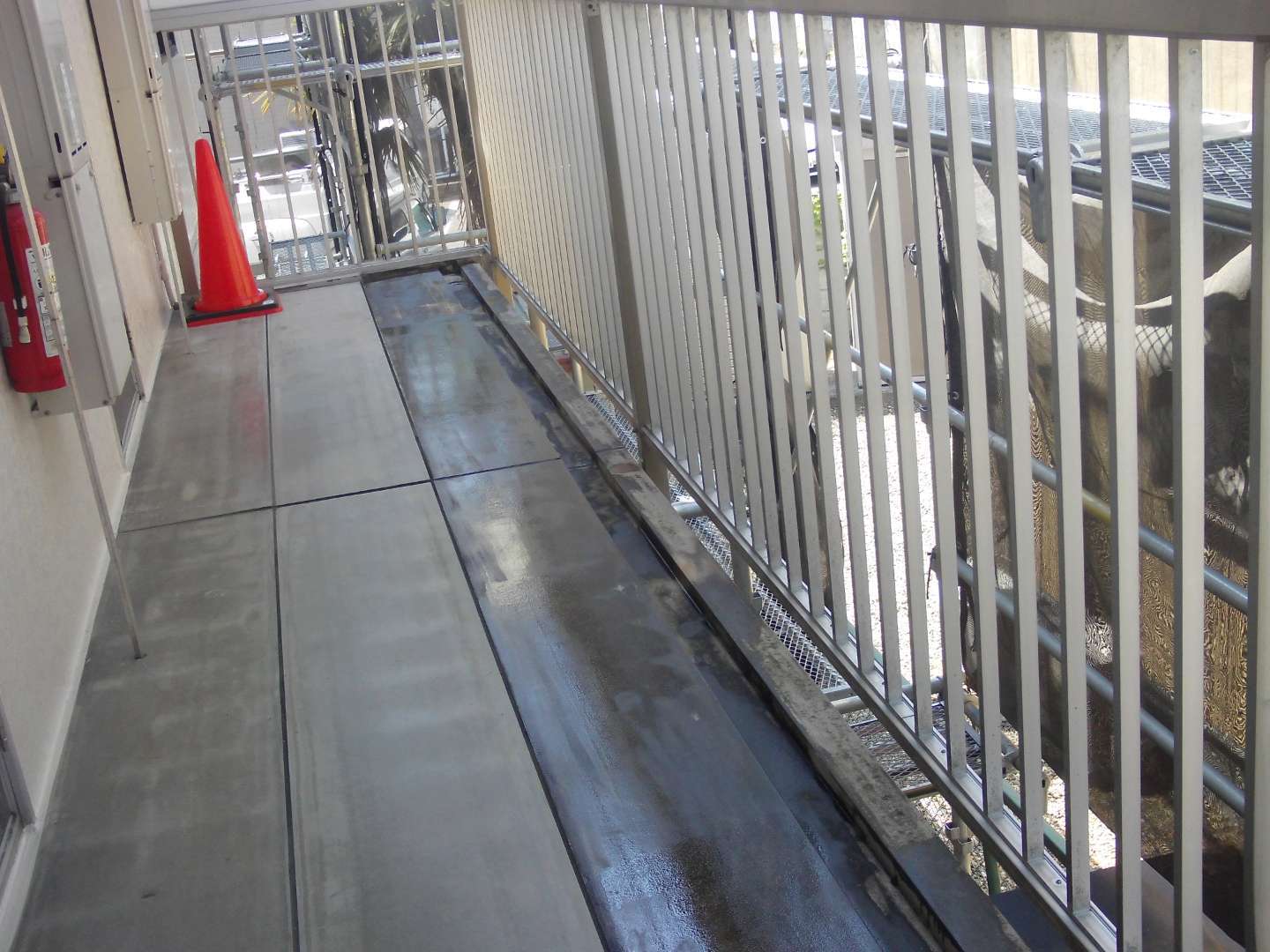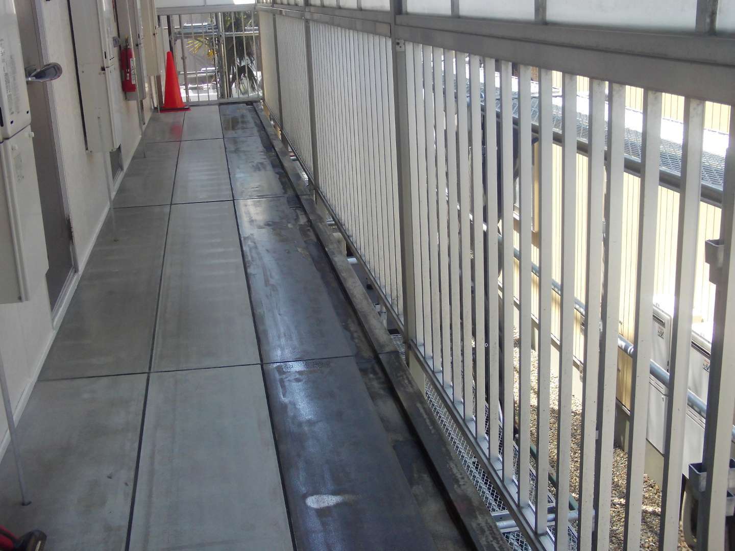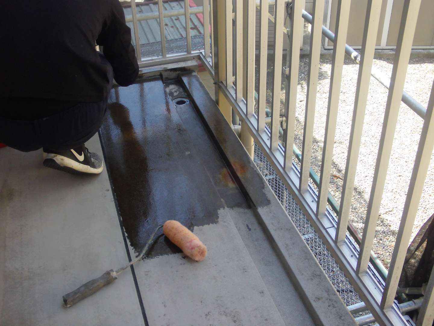 本日の作業は アパートのドレン排水・溝の防水工事です