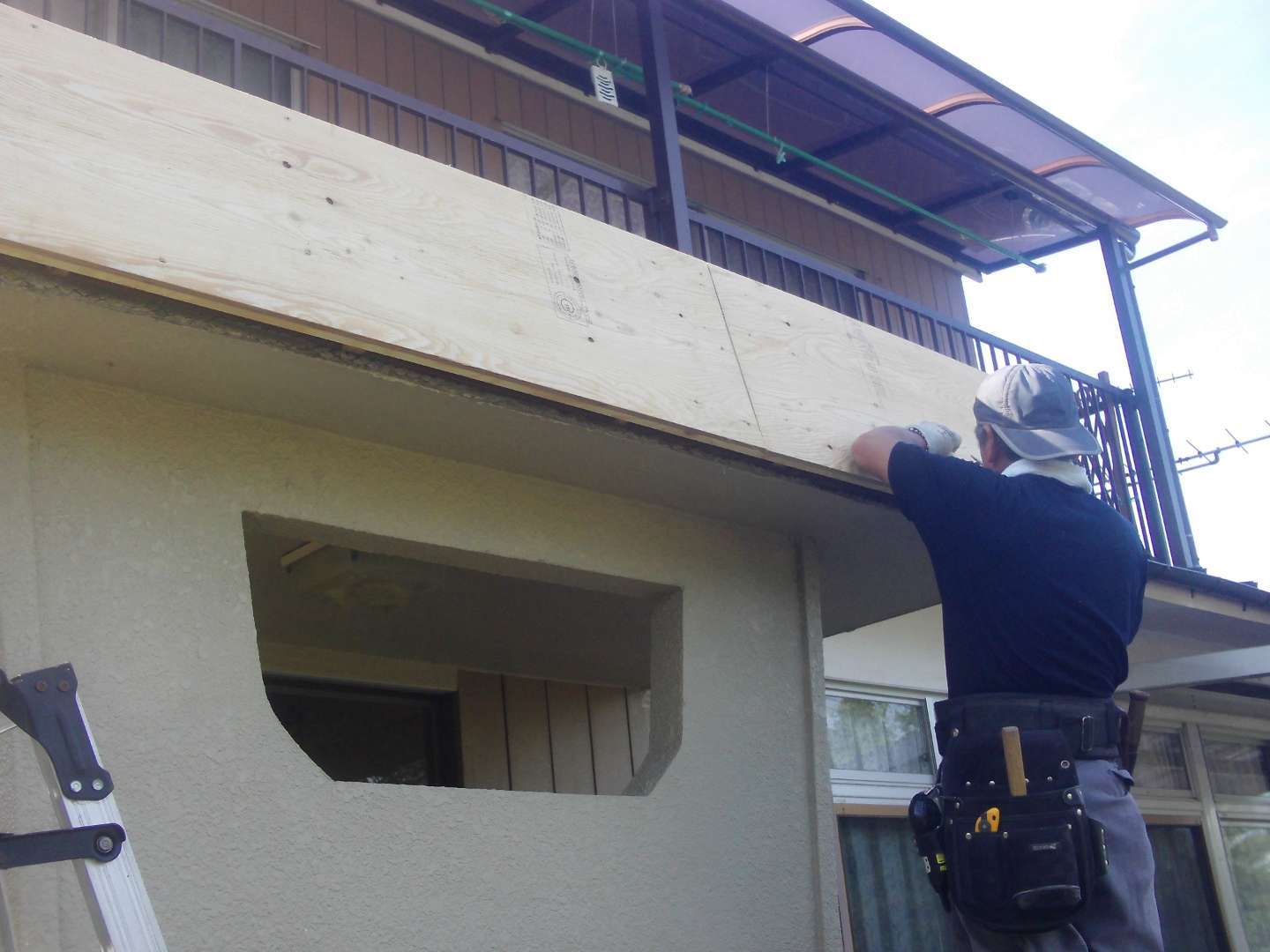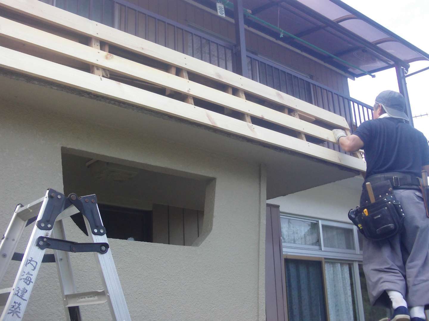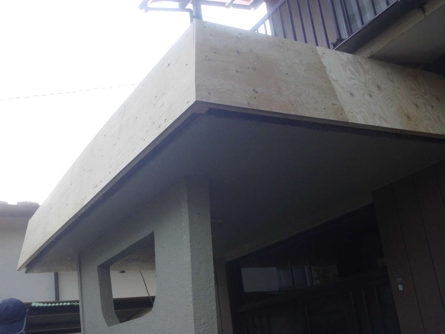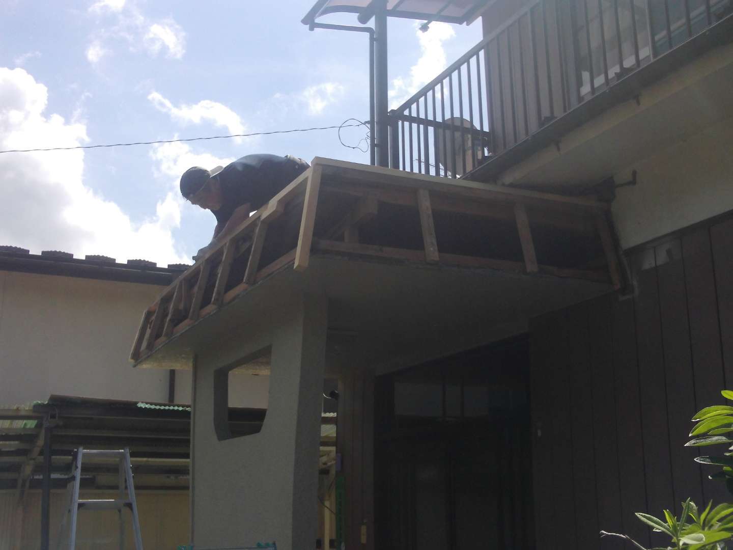 本日の作業は 玄関庇の修繕工事(大工下地)です