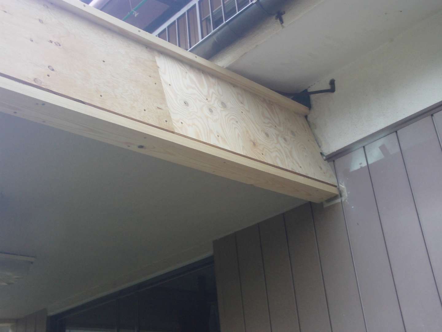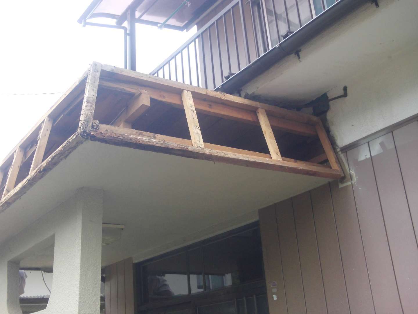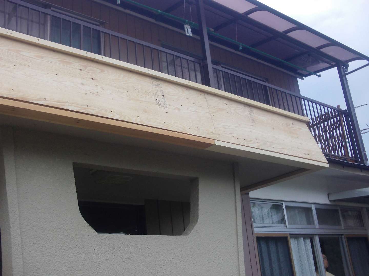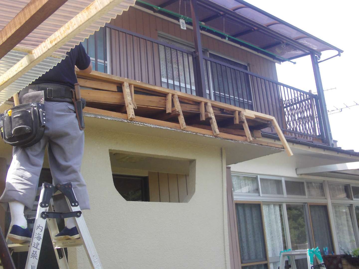 本日の作業は 玄関庇の修繕工事(大工下地)です