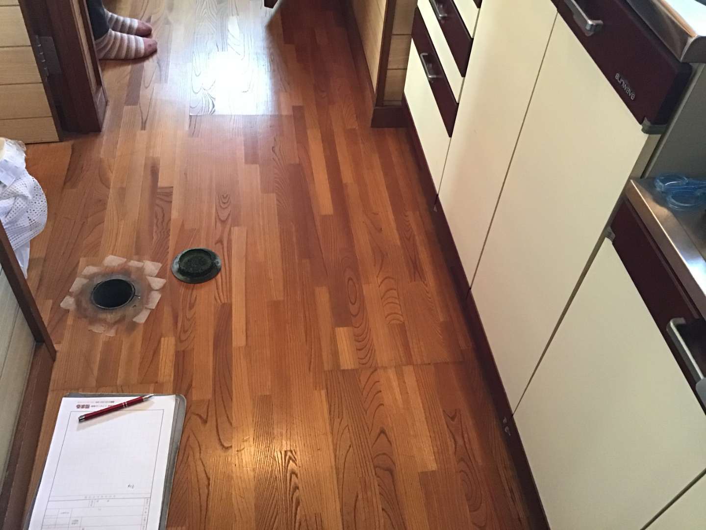廊下に点検用下水蓋