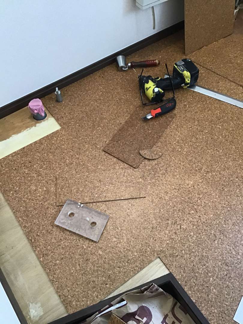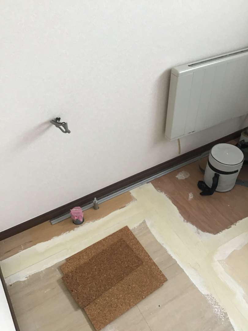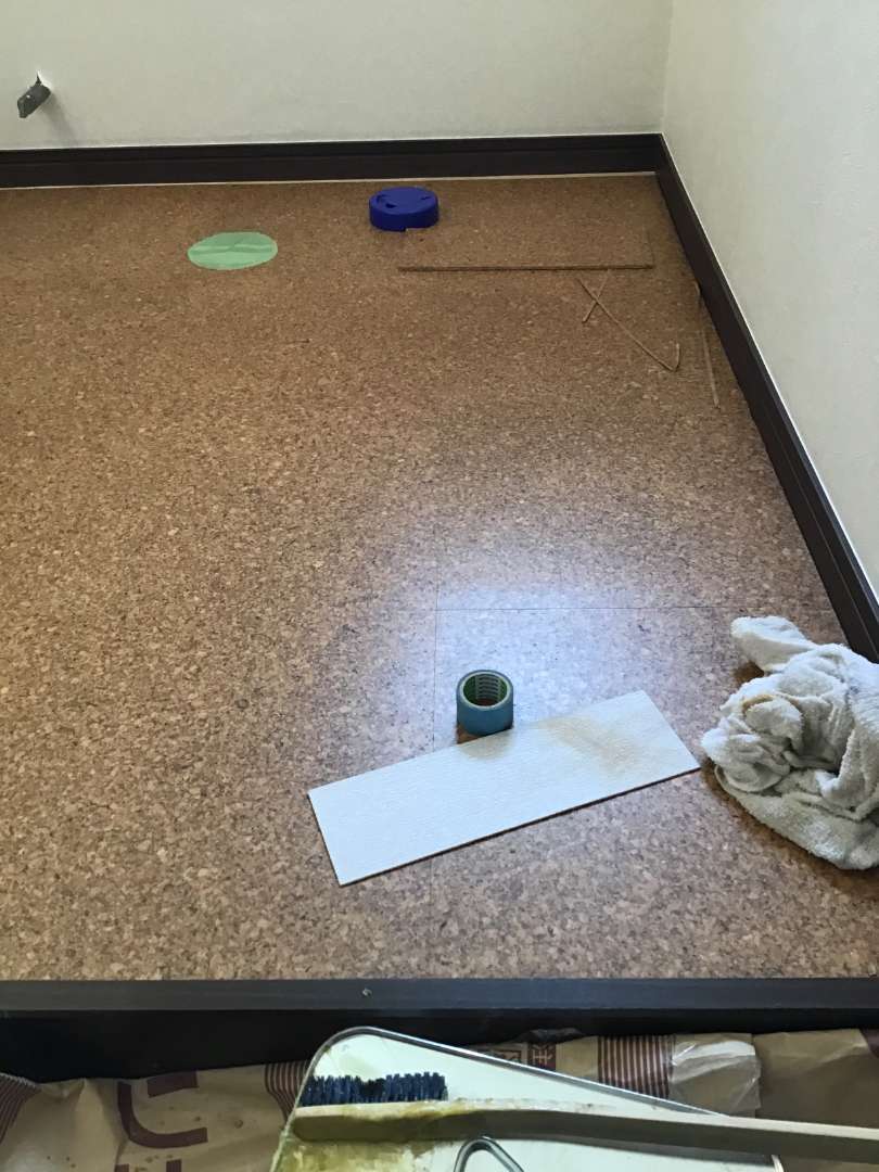 トイレ床コルク張り作業
