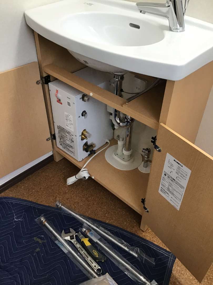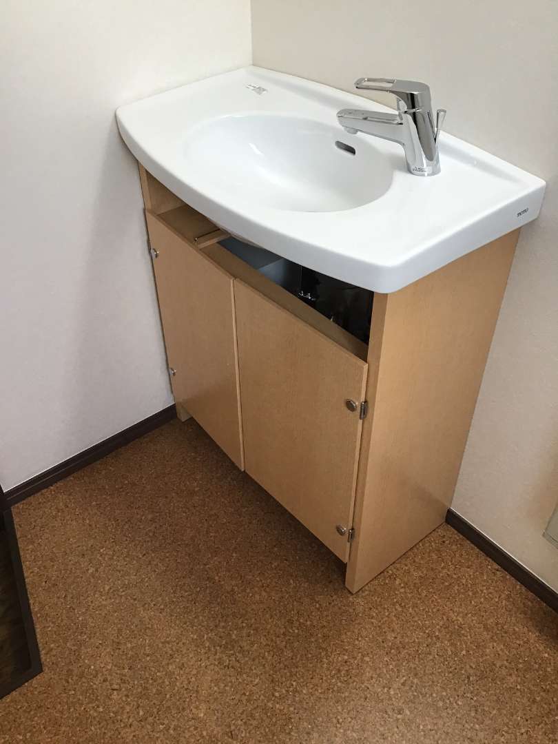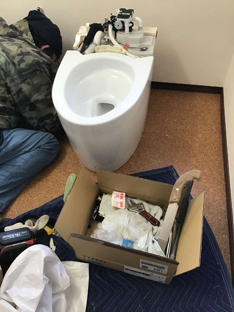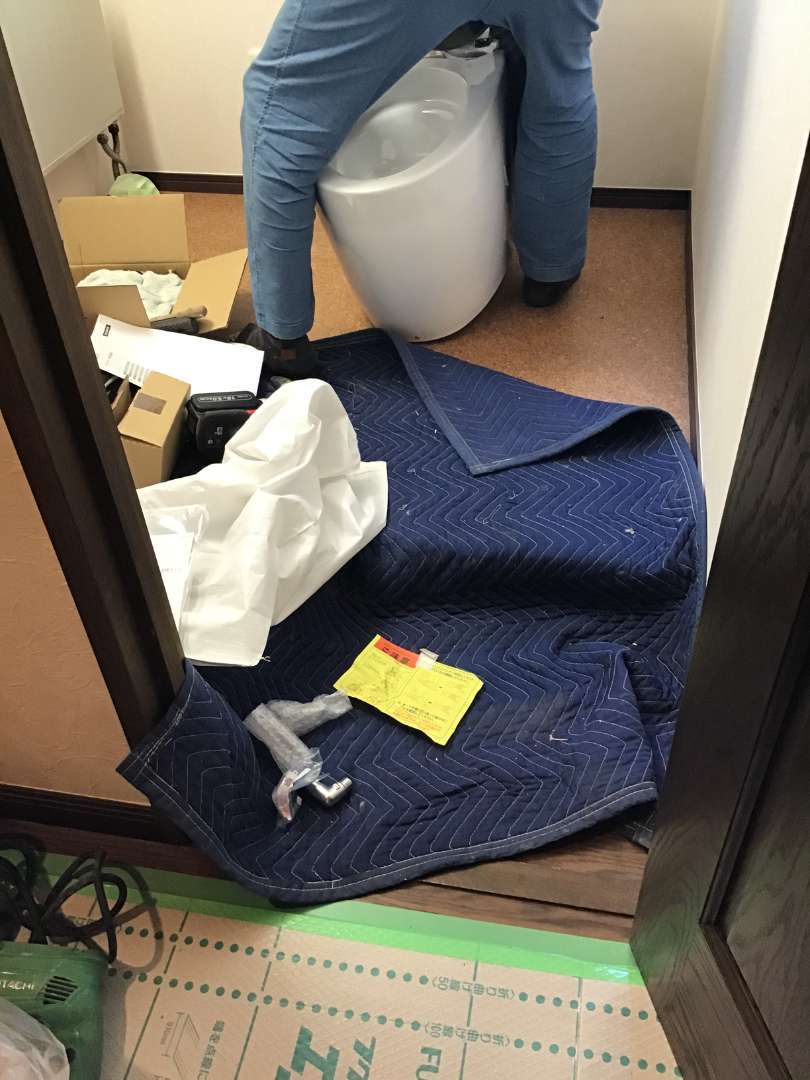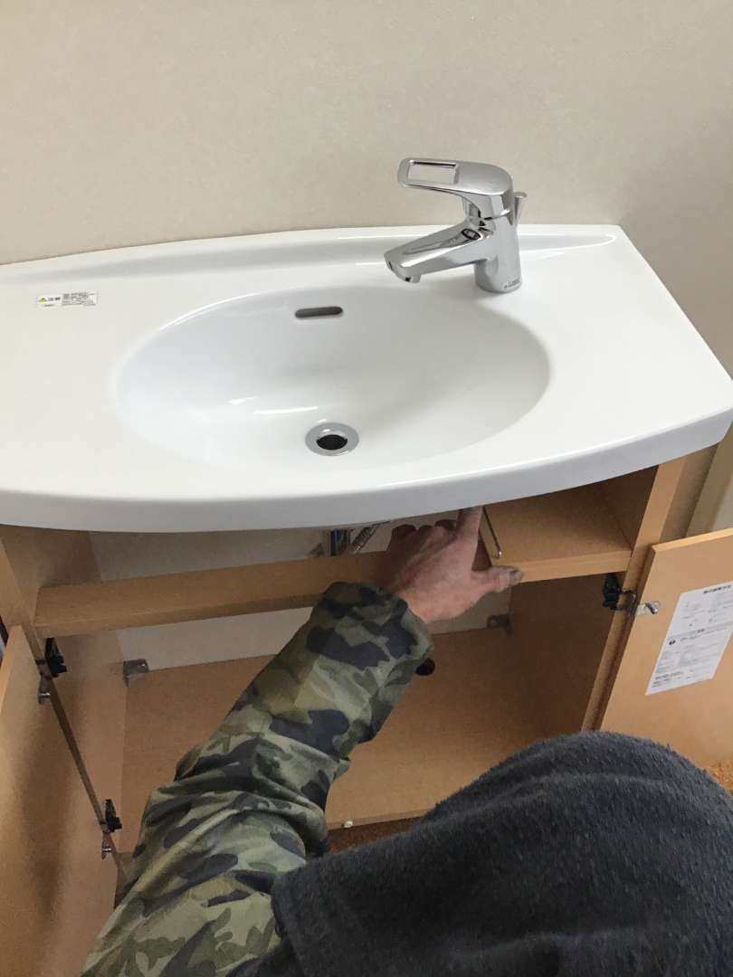 本日はトイレ器具取付・手洗い化粧台取付作業です