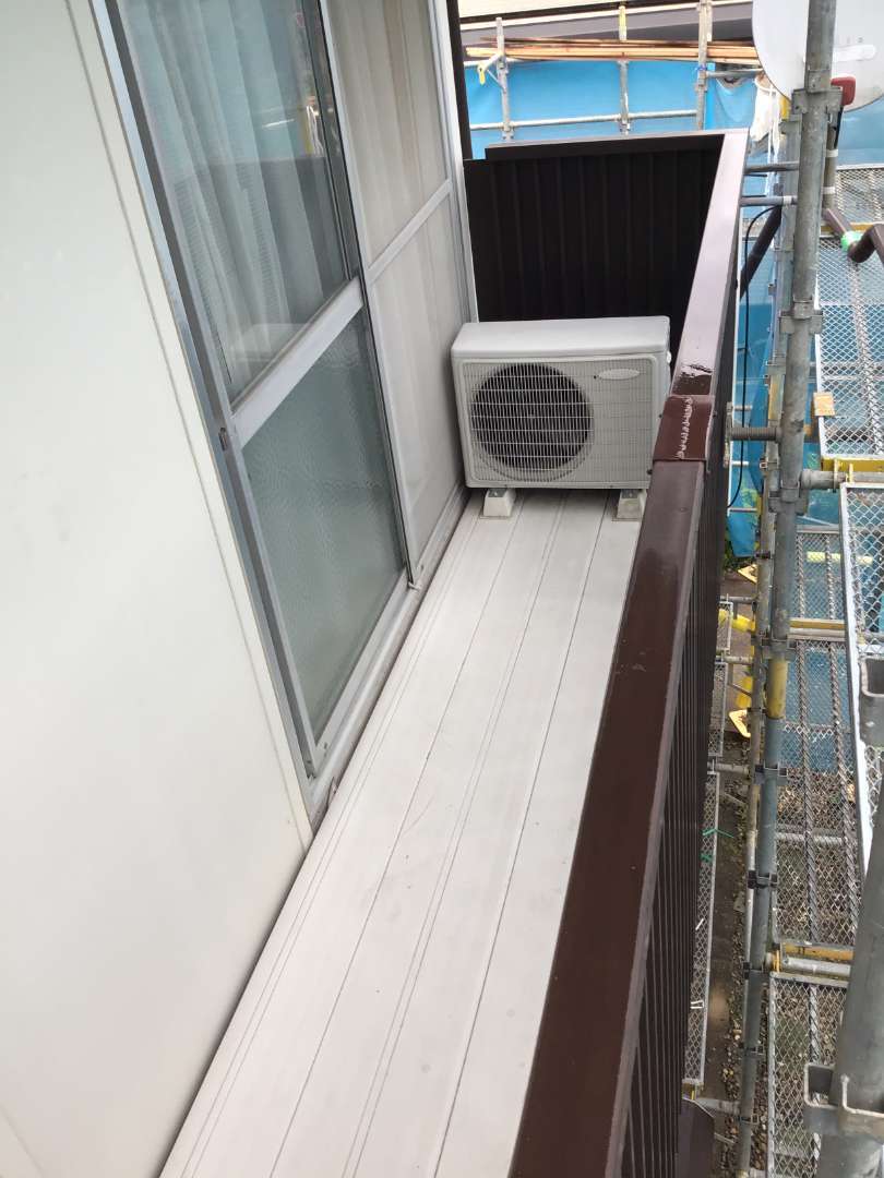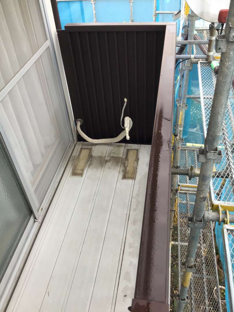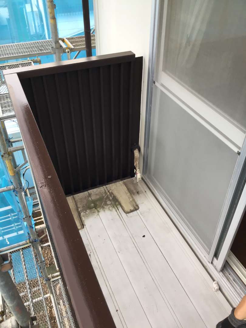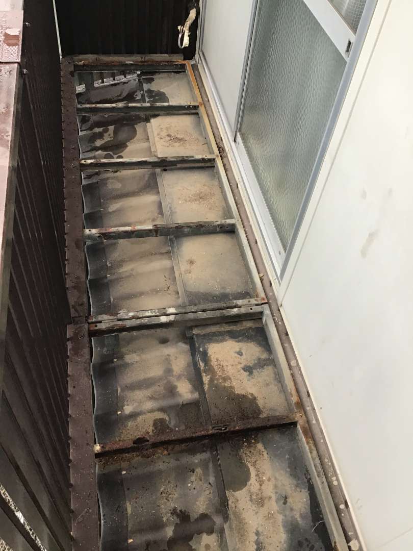 本日はバルコニー下地の鉄部腐食交換のため既存デッキ取り外し作業です