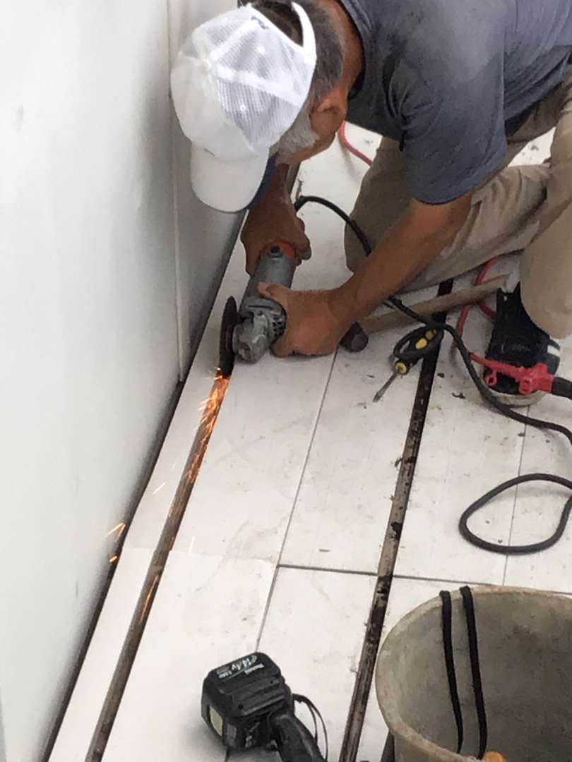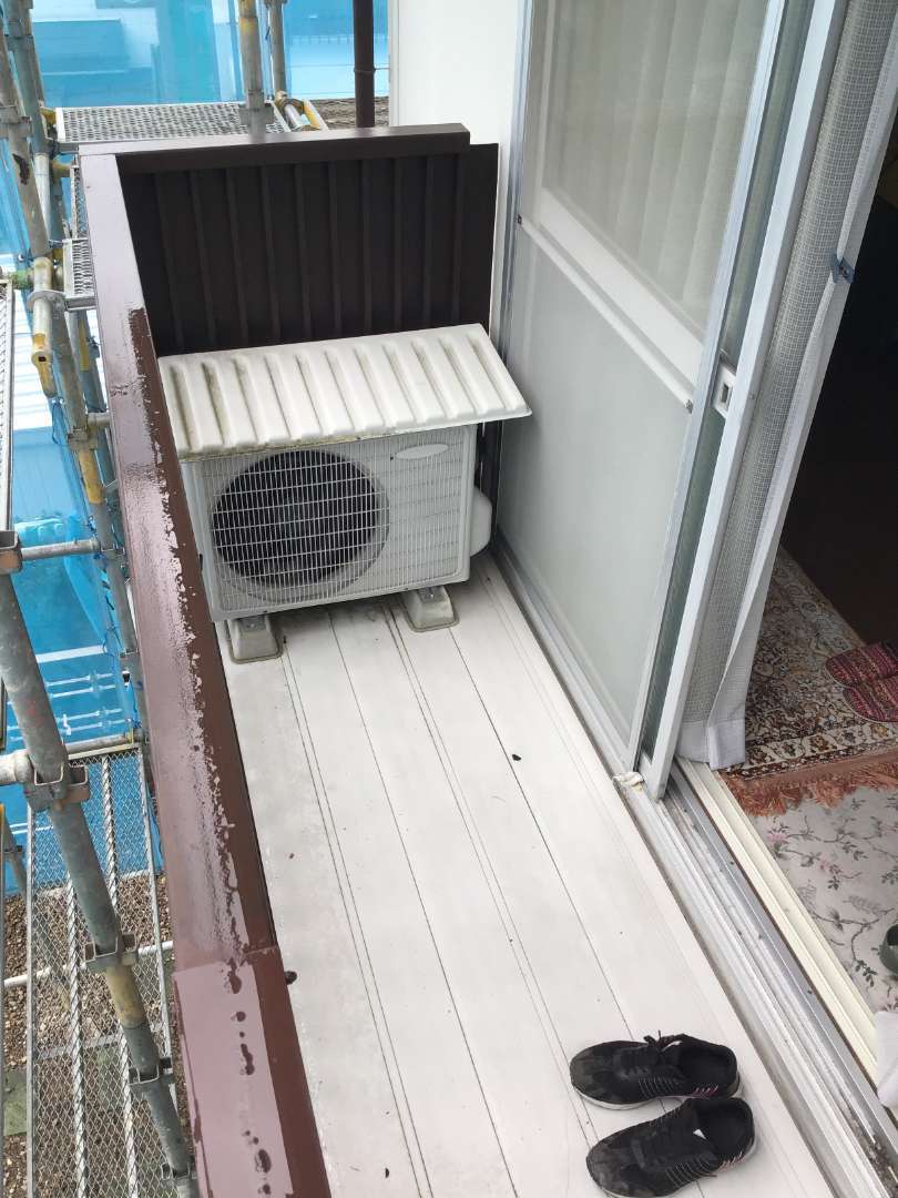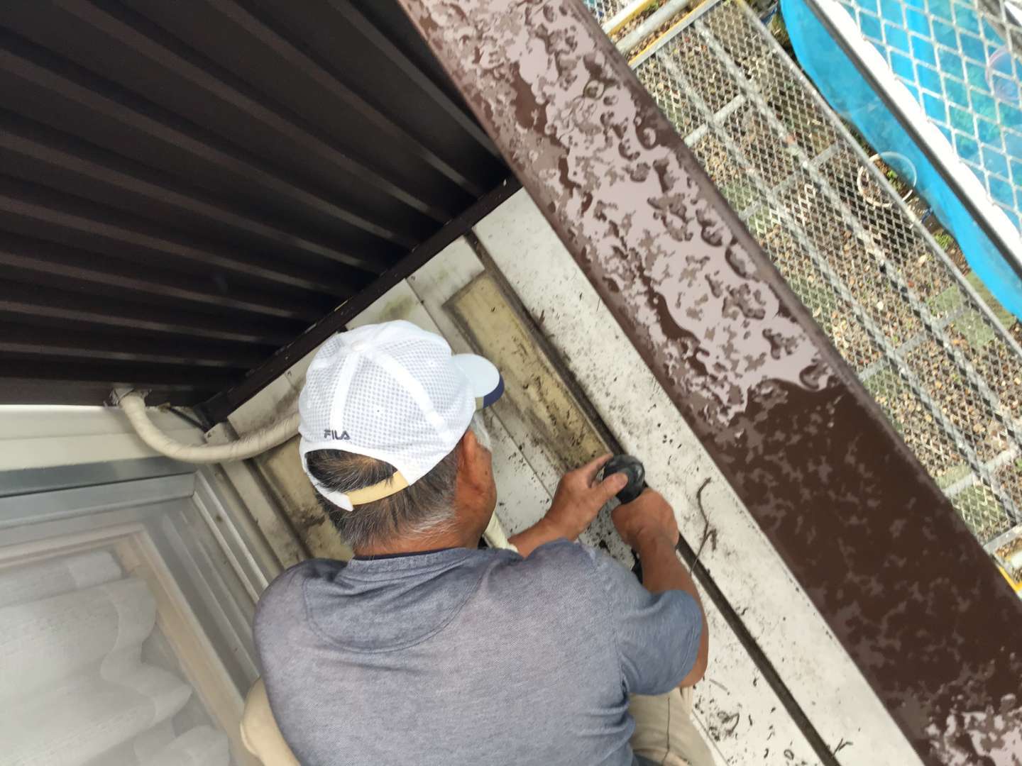 本日はバルコニー下地の鉄部腐食交換のため既存デッキ取り外し作業です