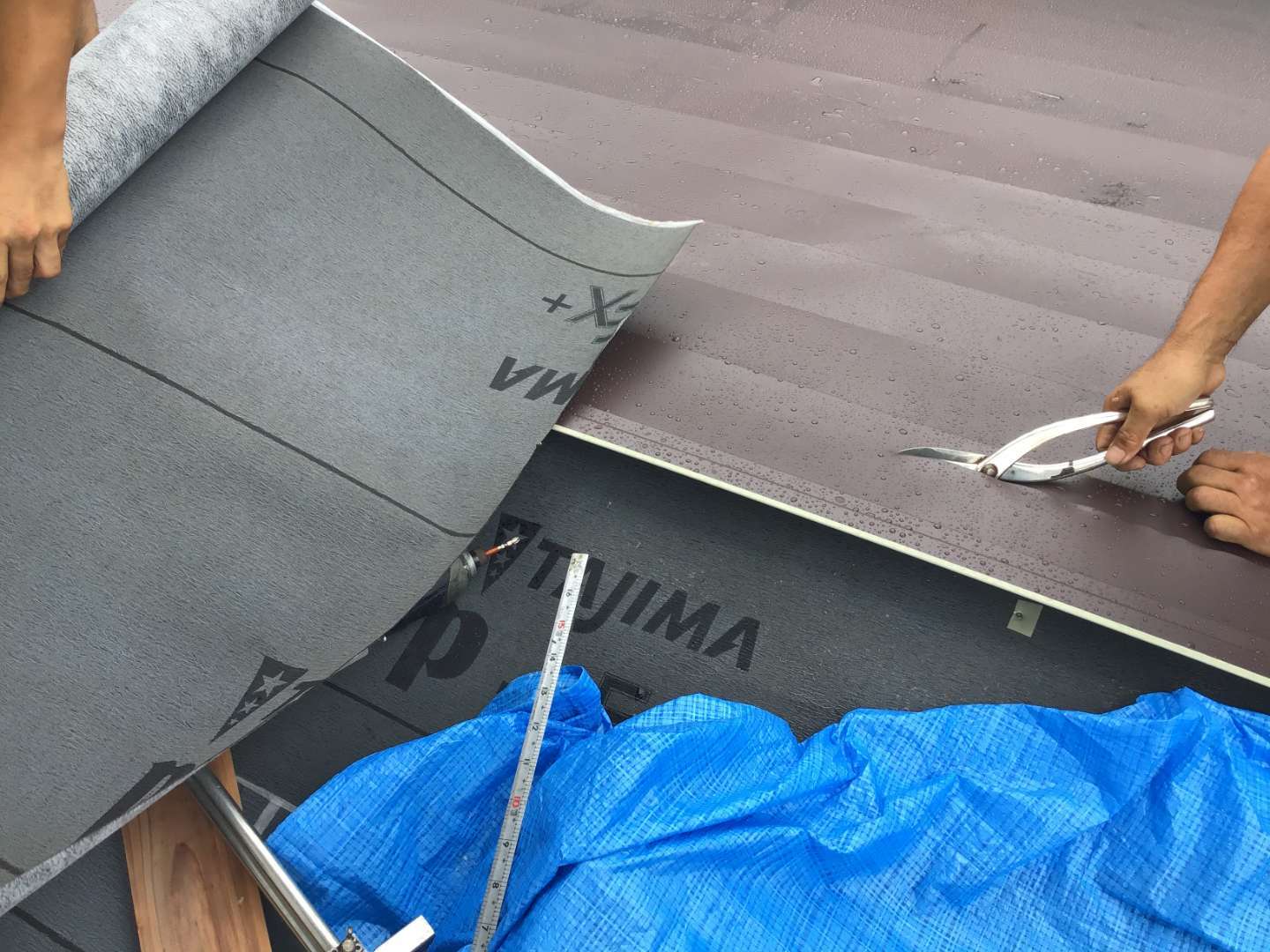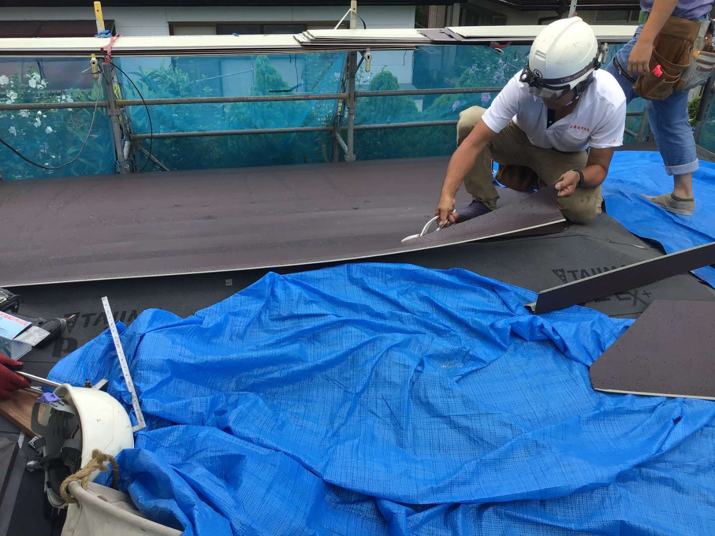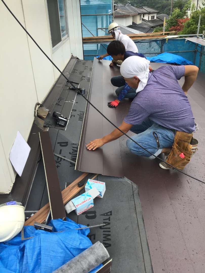 1階屋根材取り付け作業