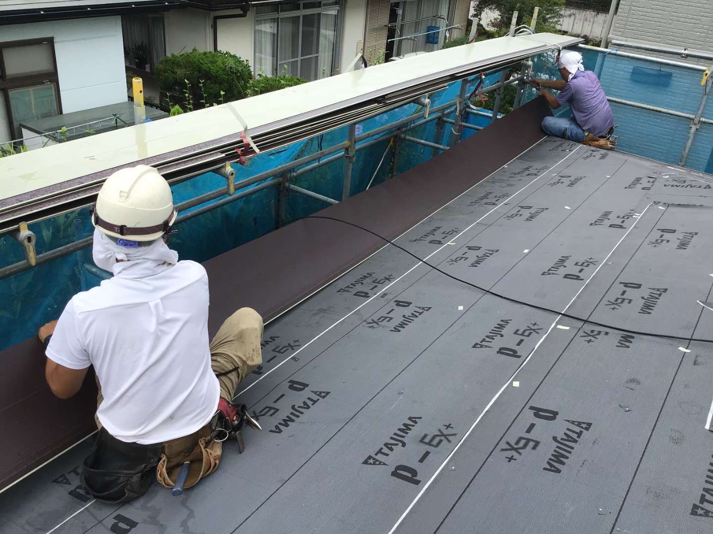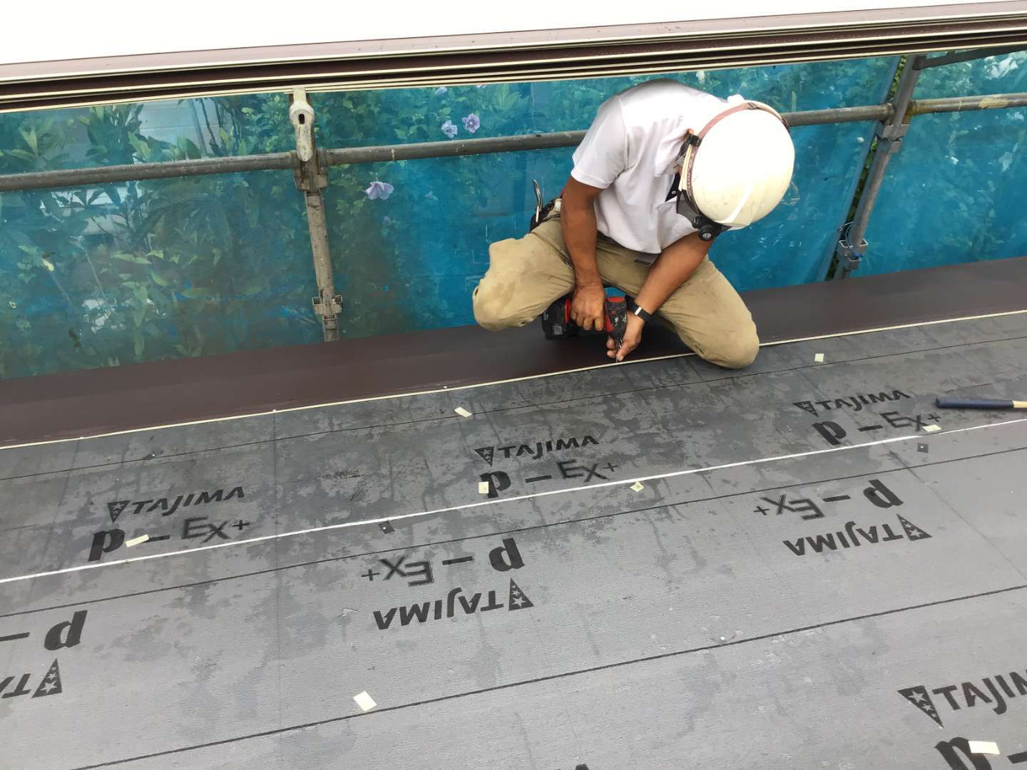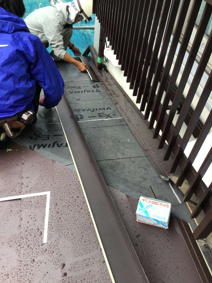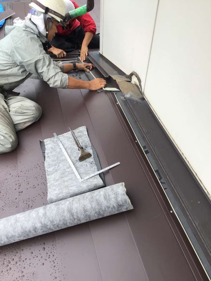 壁との取り合い雨押さえ作業