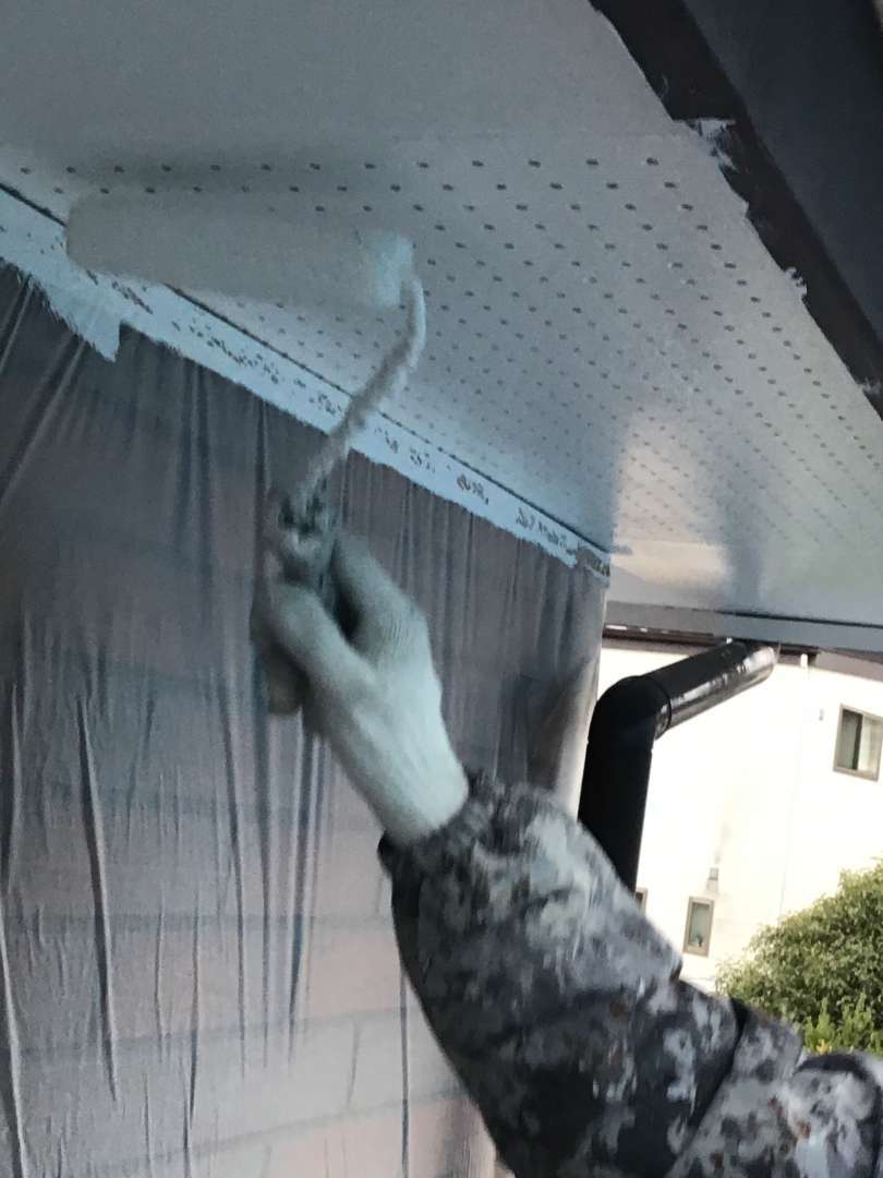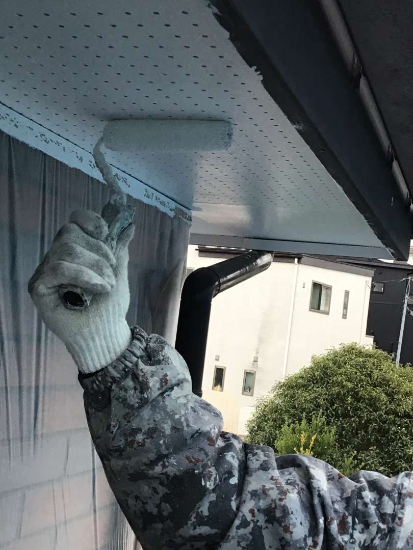 作業内容は軒天塗装・2階屋根刷毛入れ塗装です