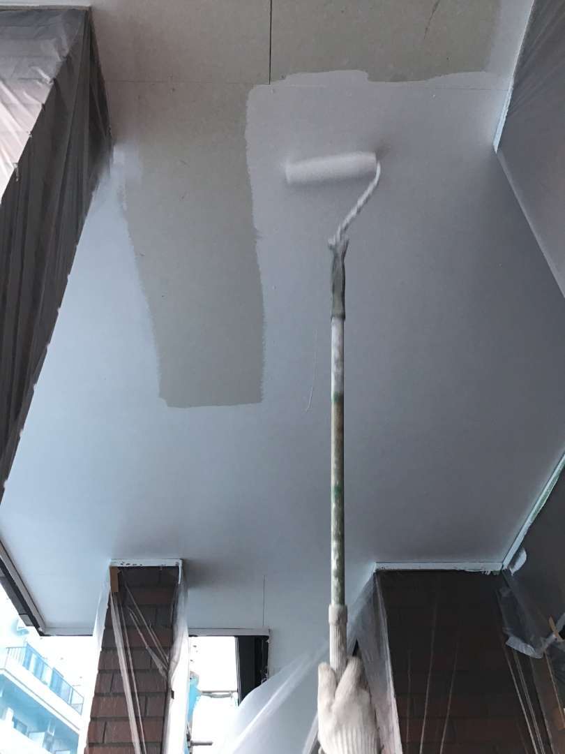 玄関軒天塗装1回目