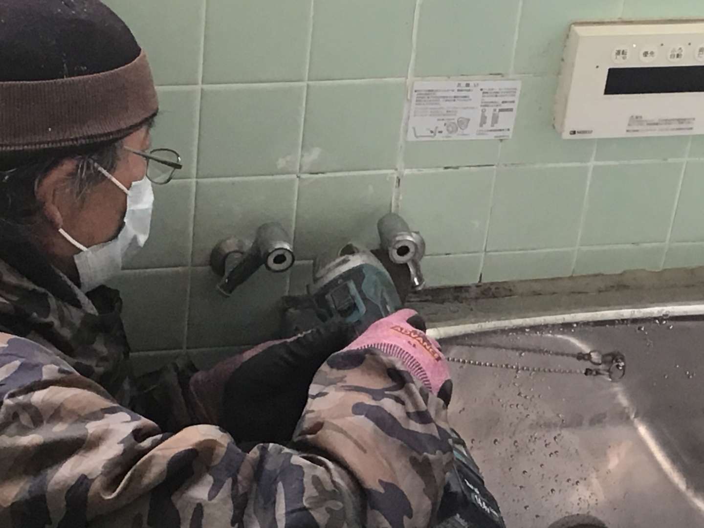 既存水栓取り外し