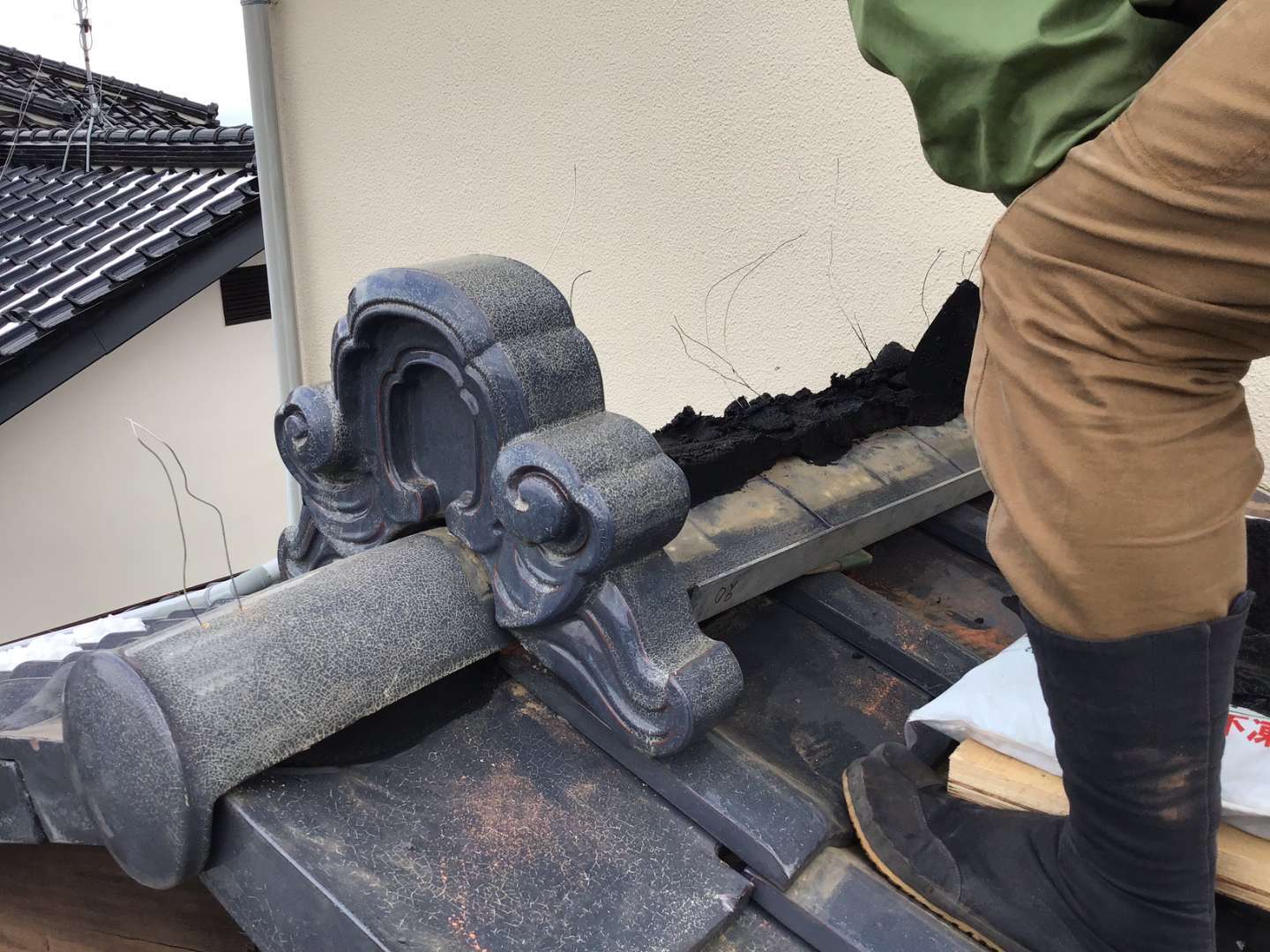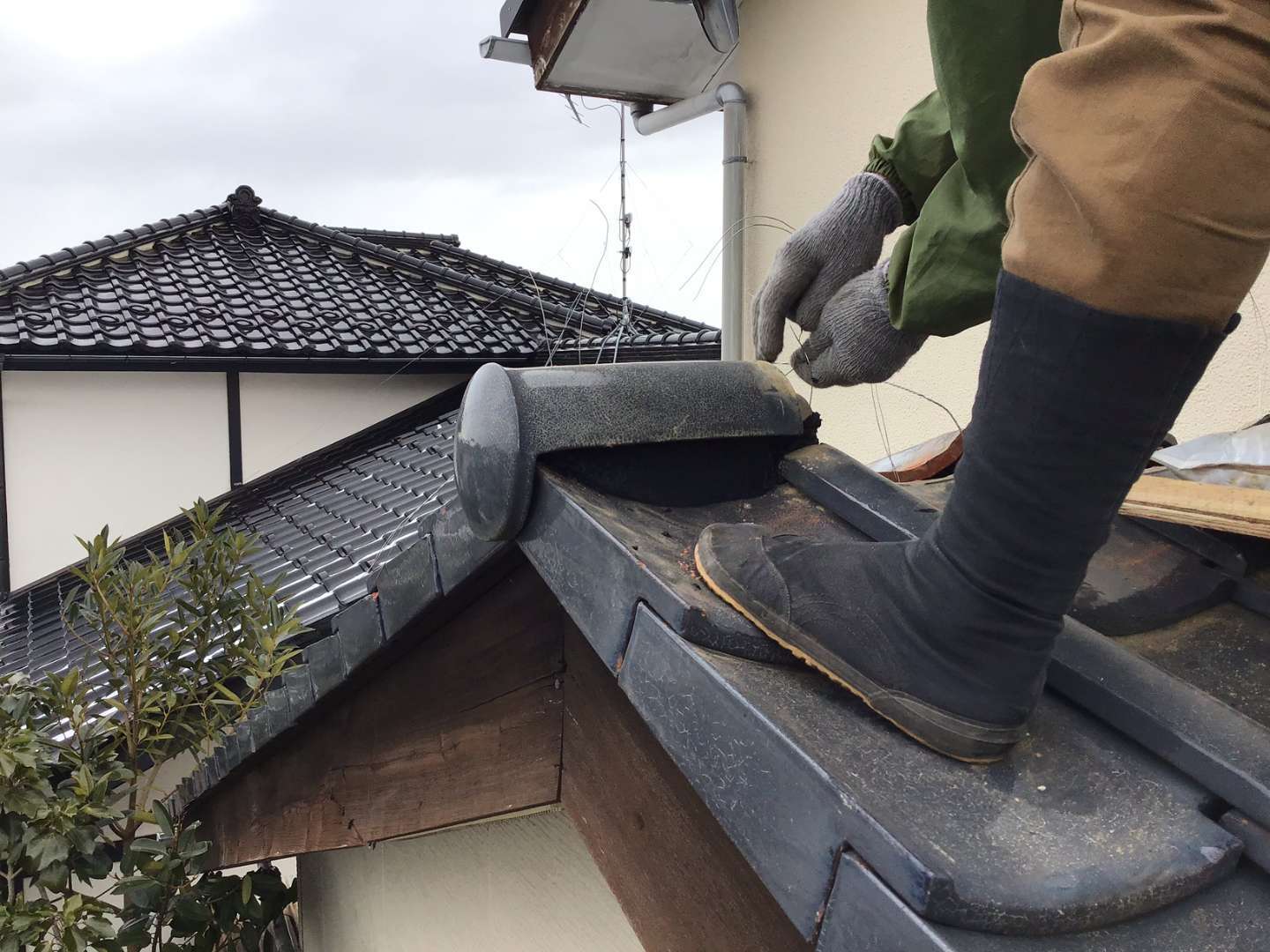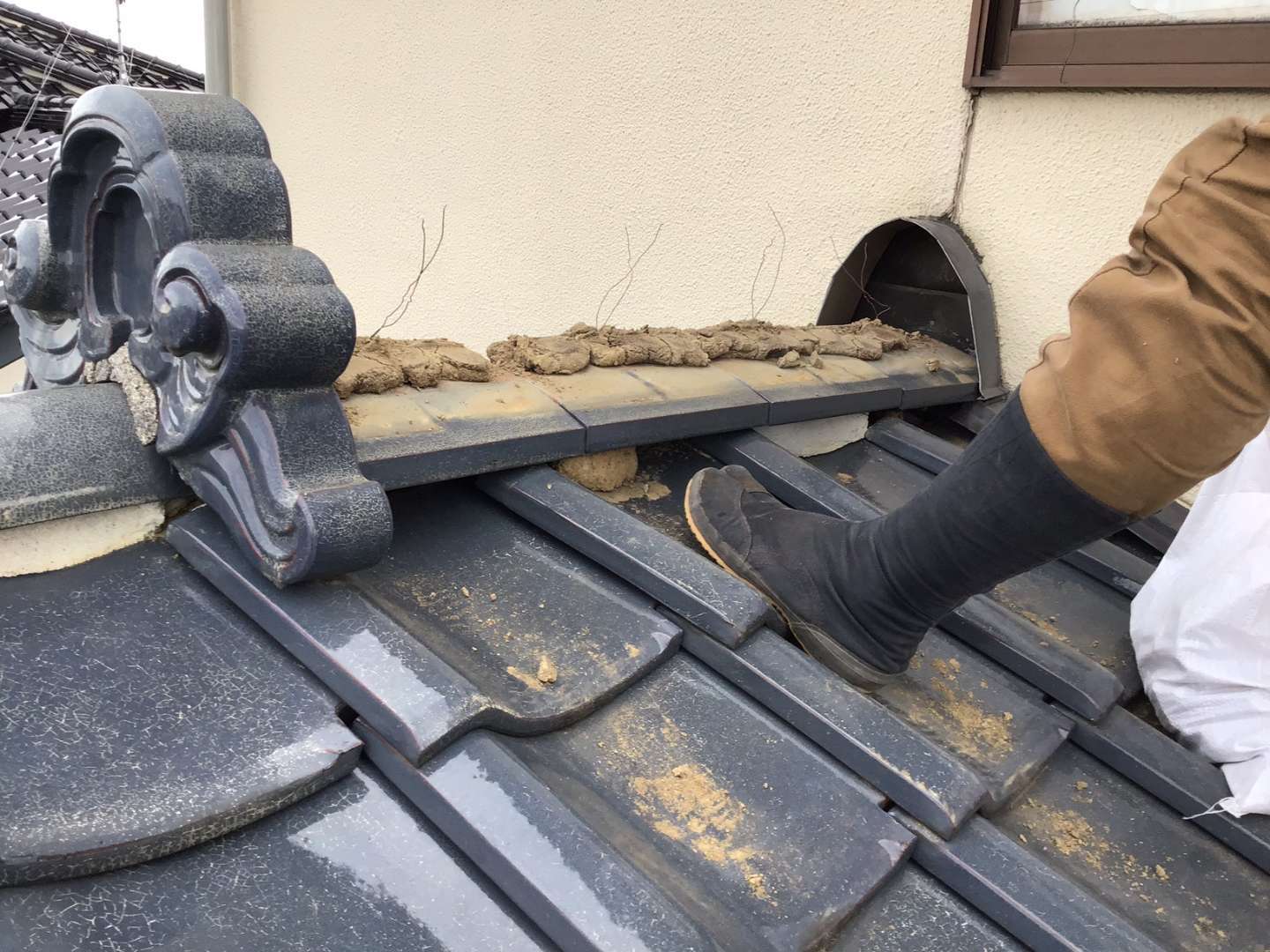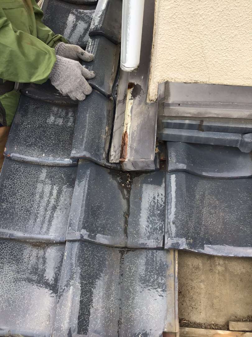 本日は1階屋根瓦屋根の棟取り直し・雨漏れ箇所の修理です。