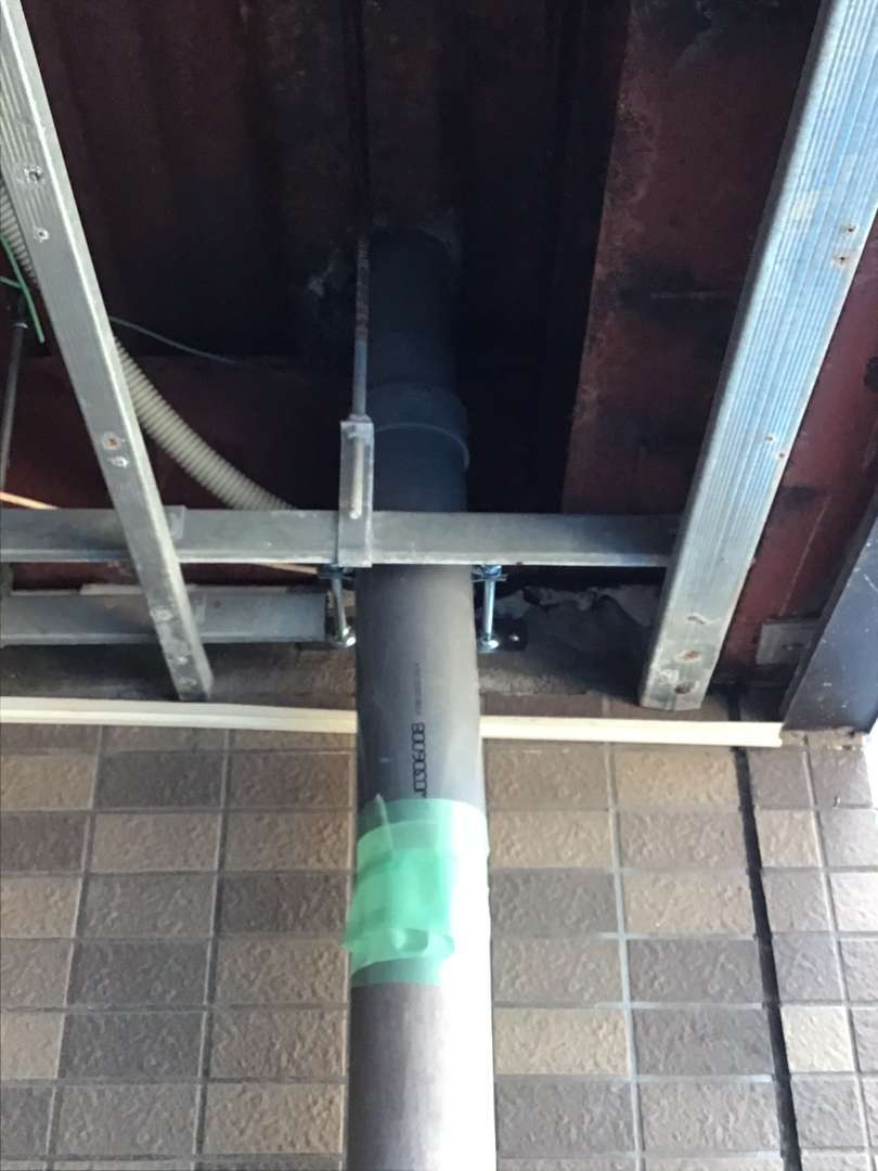 ドレン接合部分から配管が落ちないよう固定