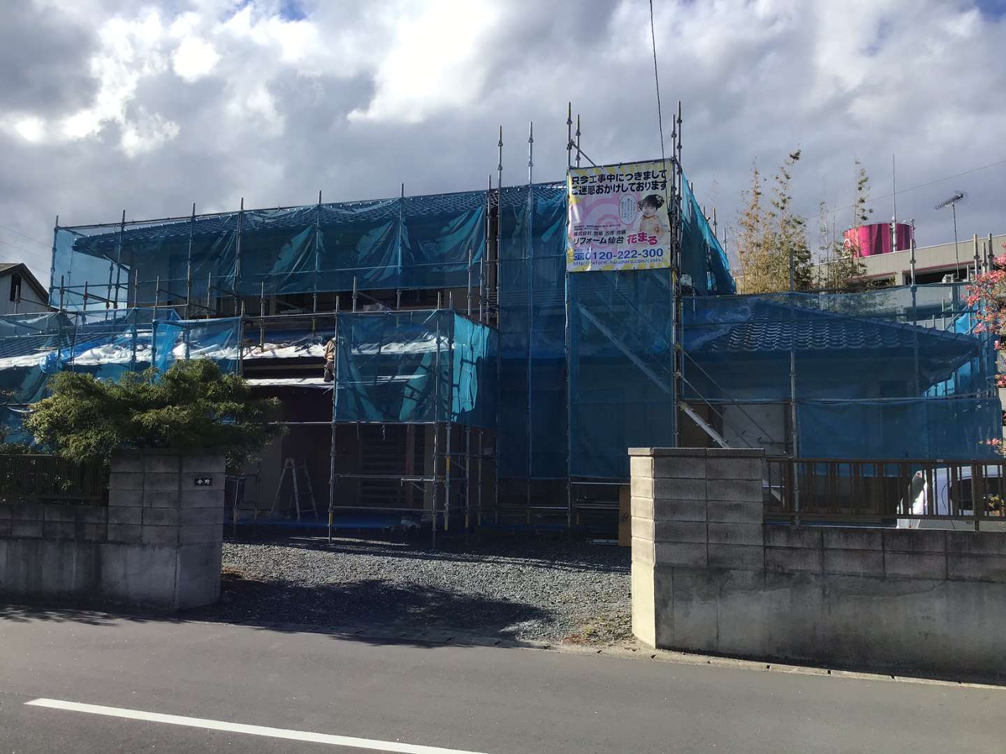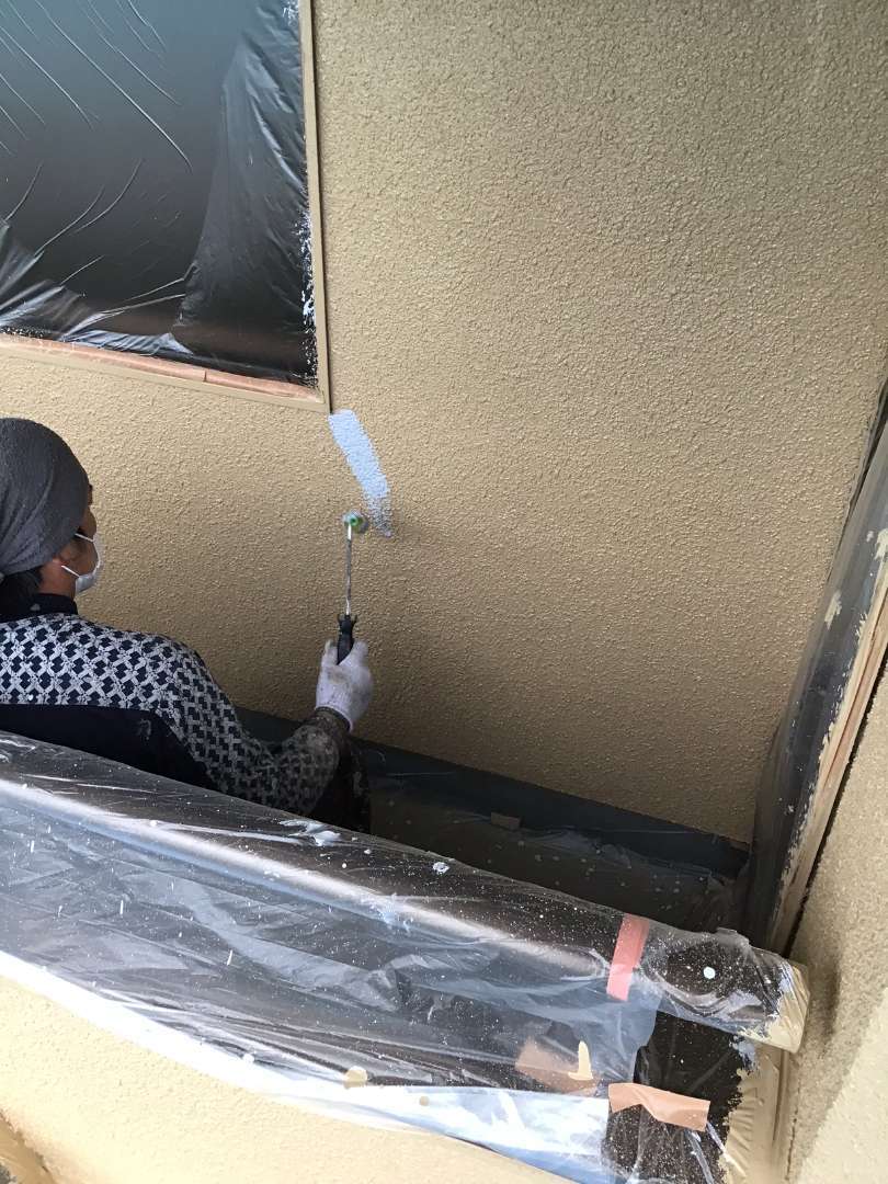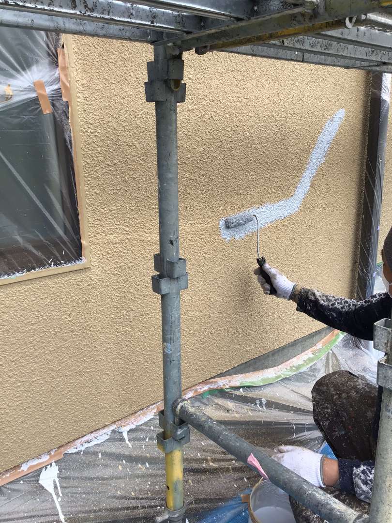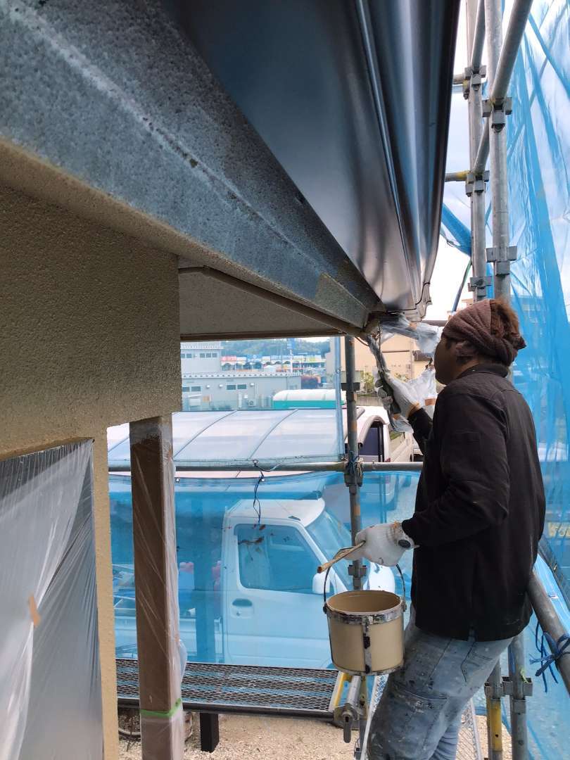 本日の作業は1階中塗り・1階、2階上塗り・破風塗装・軒樋仕上げ塗装です。