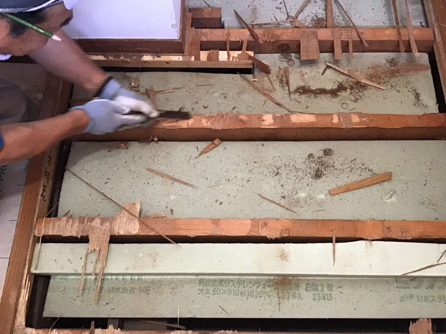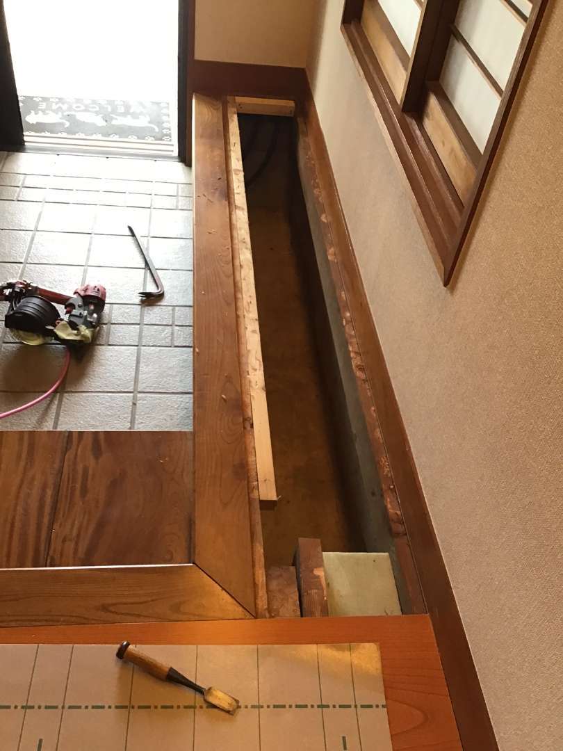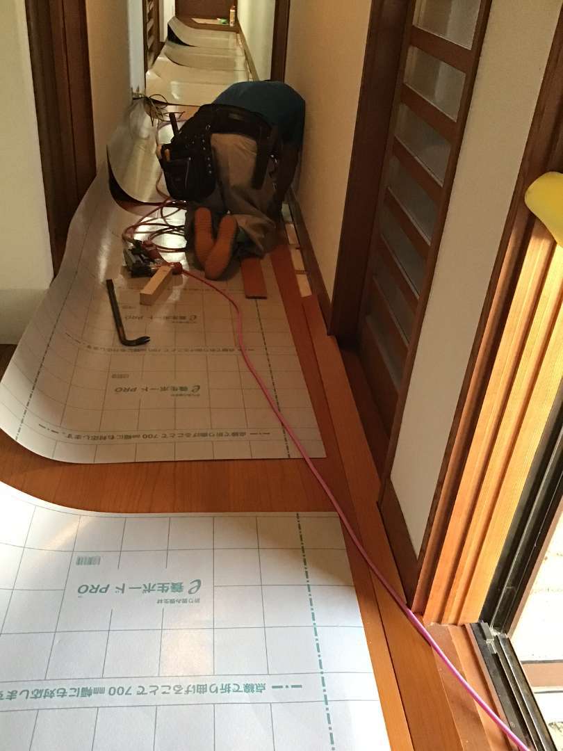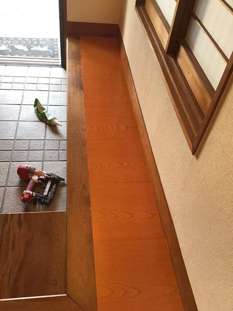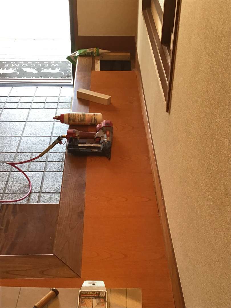 本日の作業は廊下・玄関ホール床張り替え作業です。