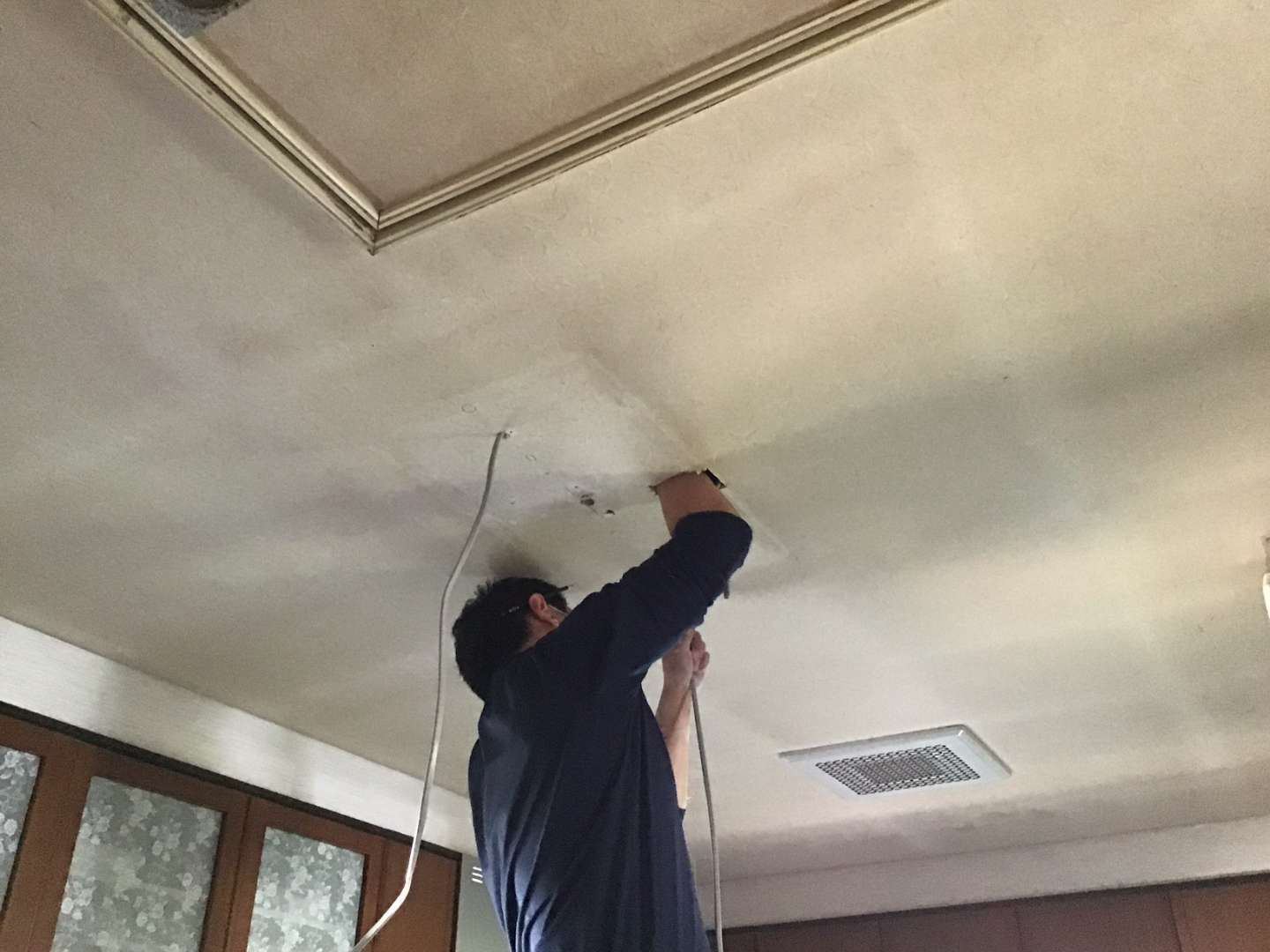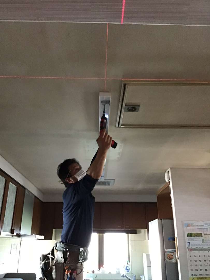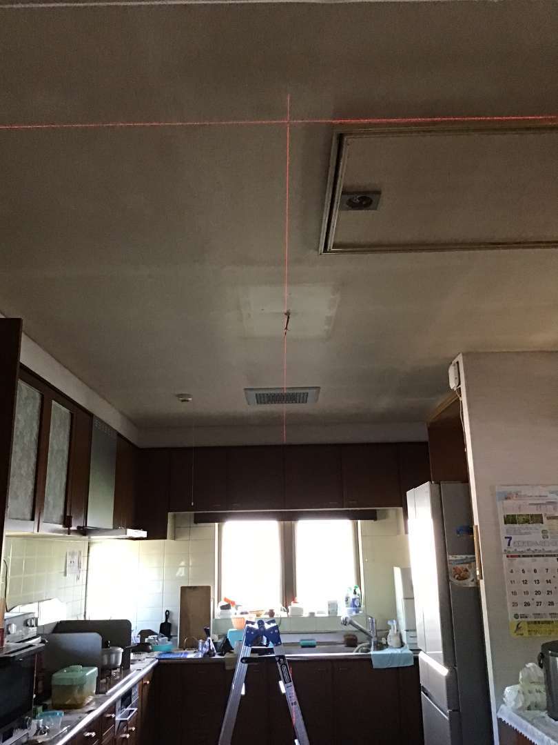 本日の作業は、台所天井照明配線工事・和室天井クロス張り・廊下壁クロス張り作業です。