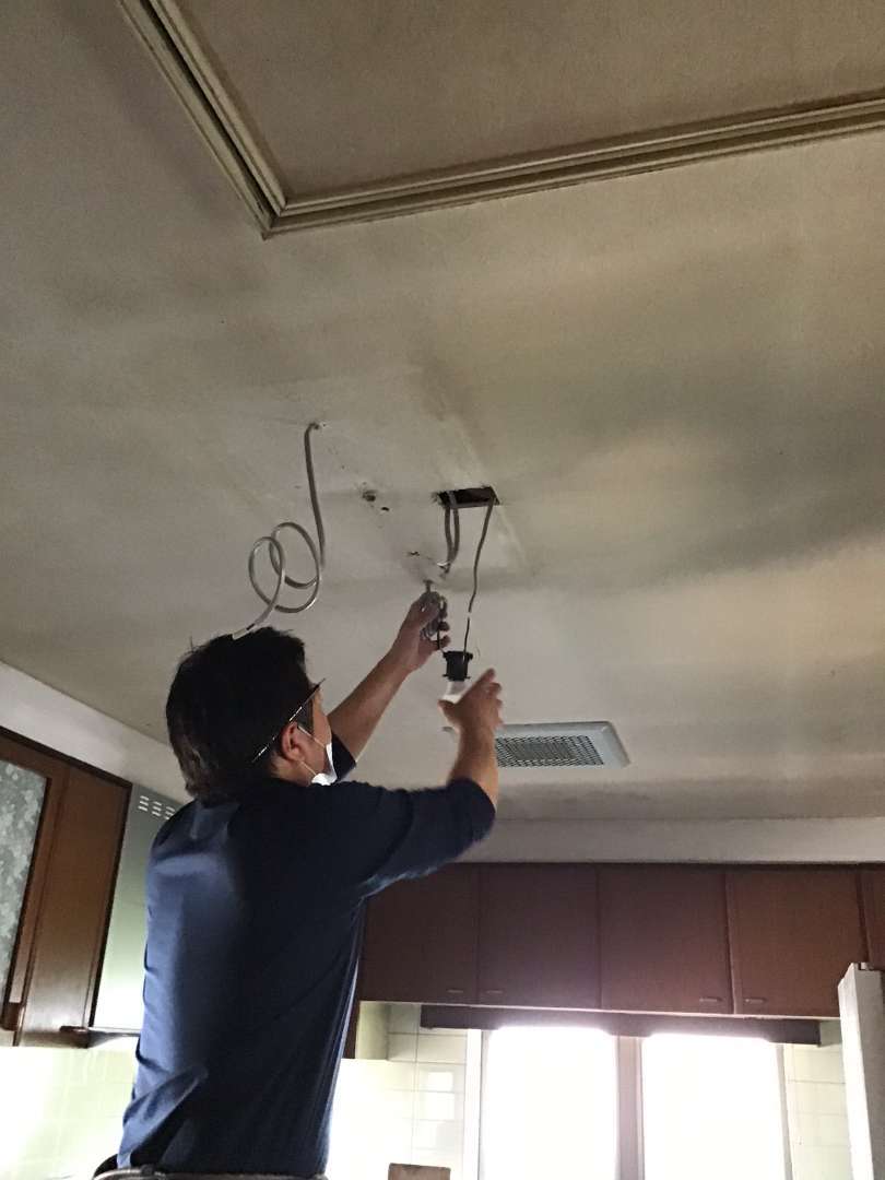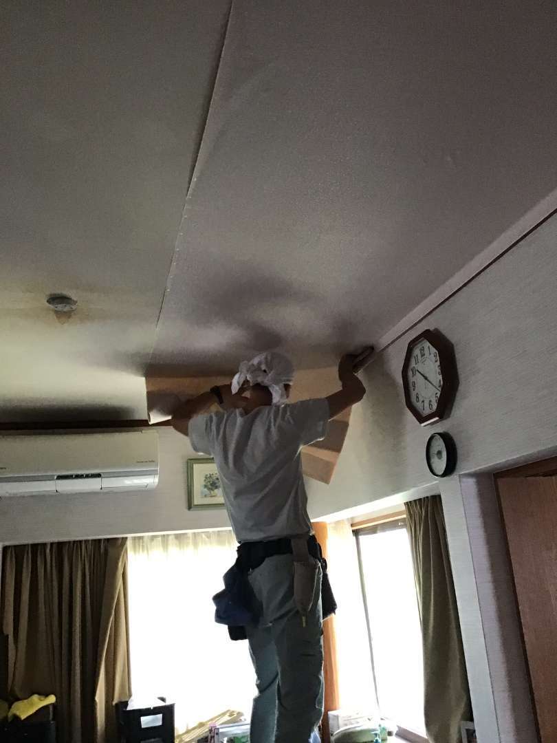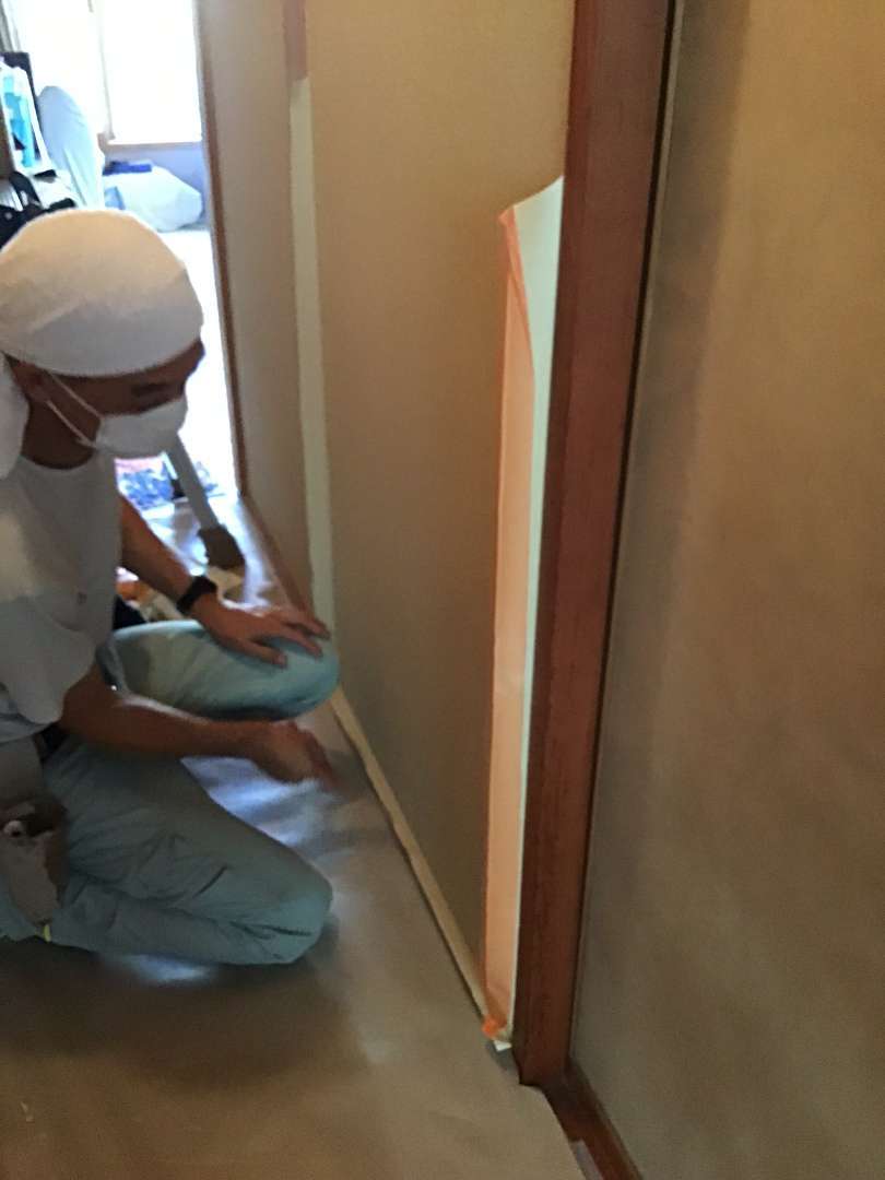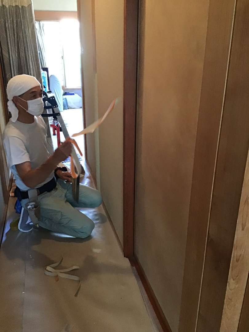 本日の作業は、台所天井照明配線工事・和室天井クロス張り・廊下壁クロス張り作業です。