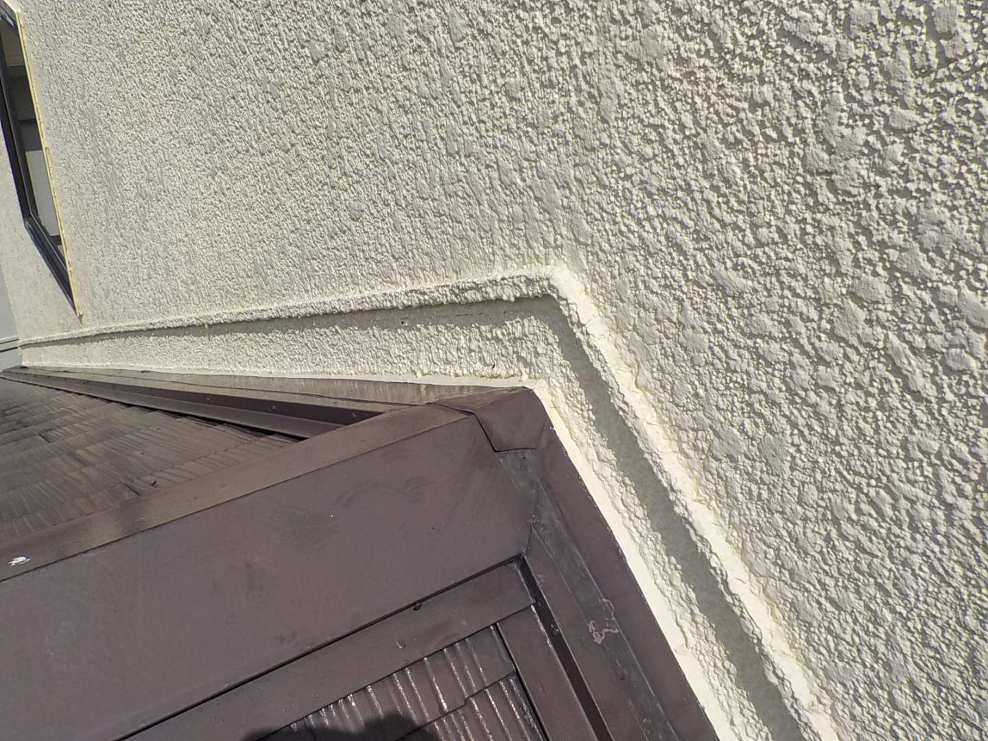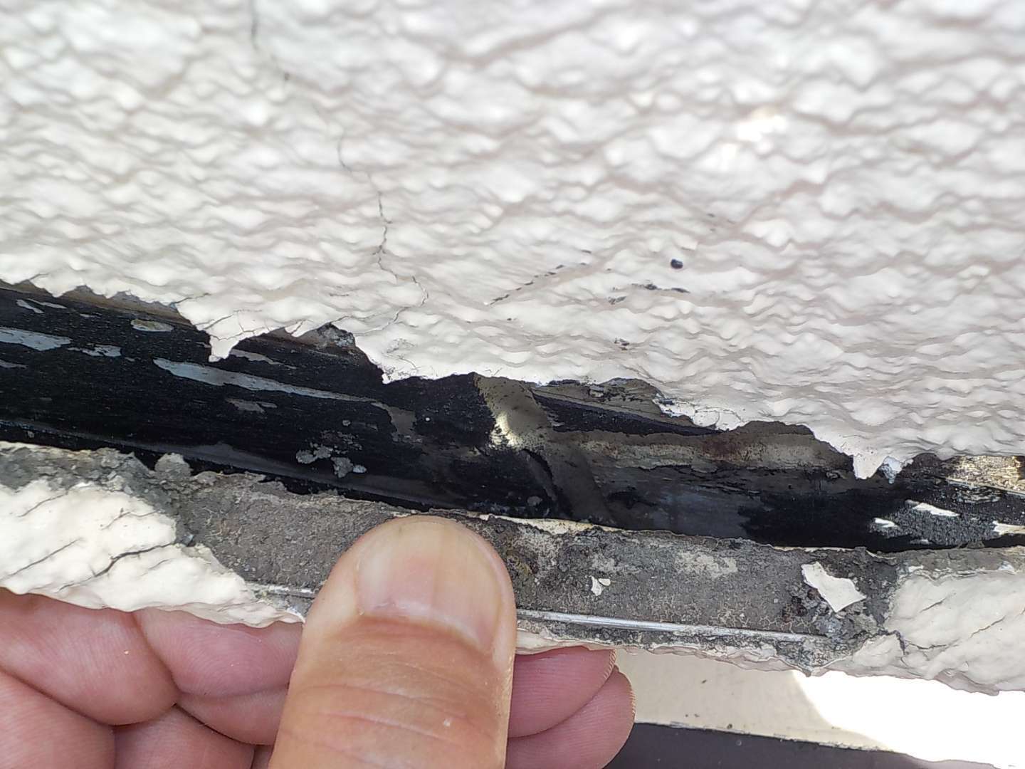 外壁面の水切り立ち上げがなく粘着テープで立ち上げてました