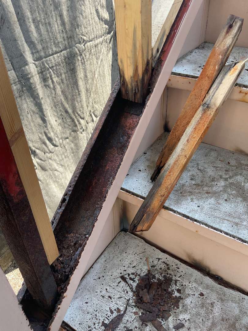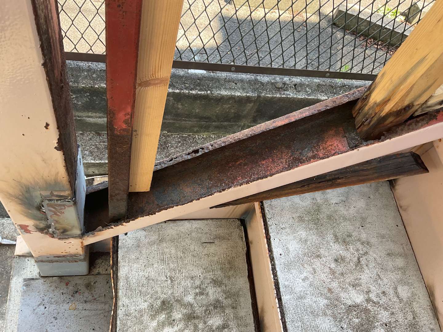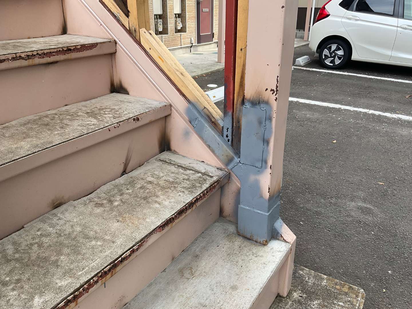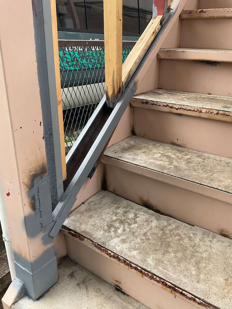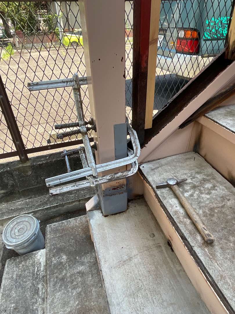 アパート鉄骨階段補修作業です。