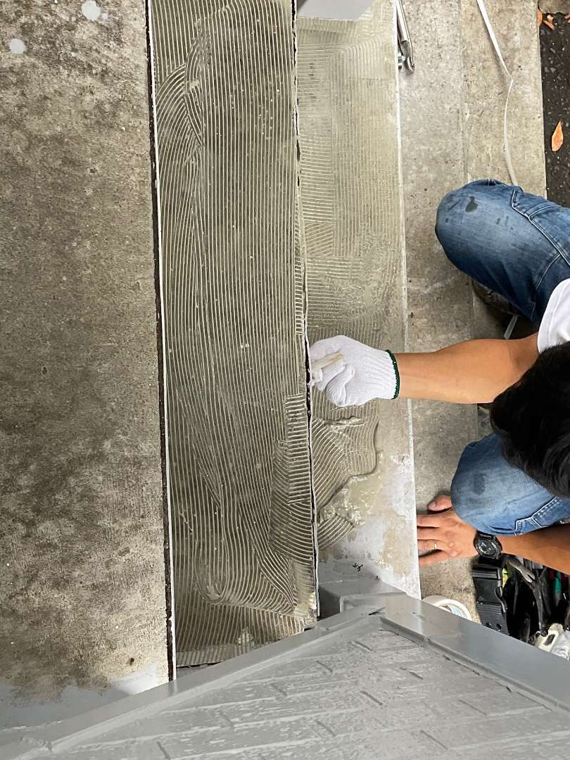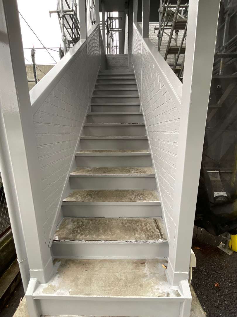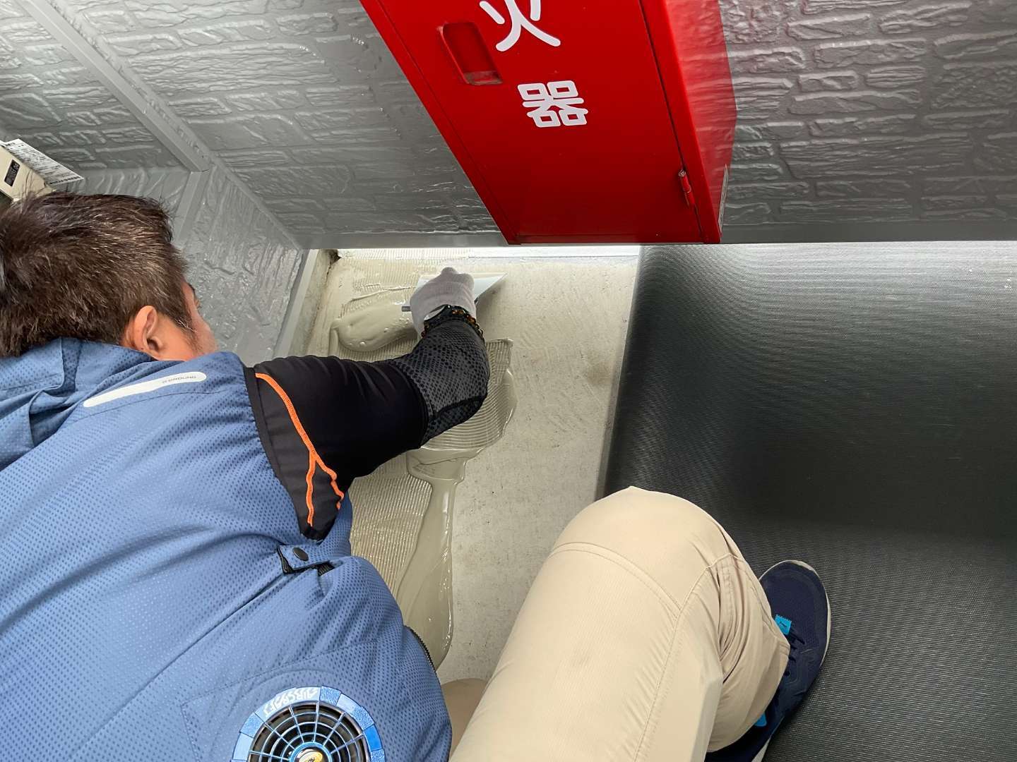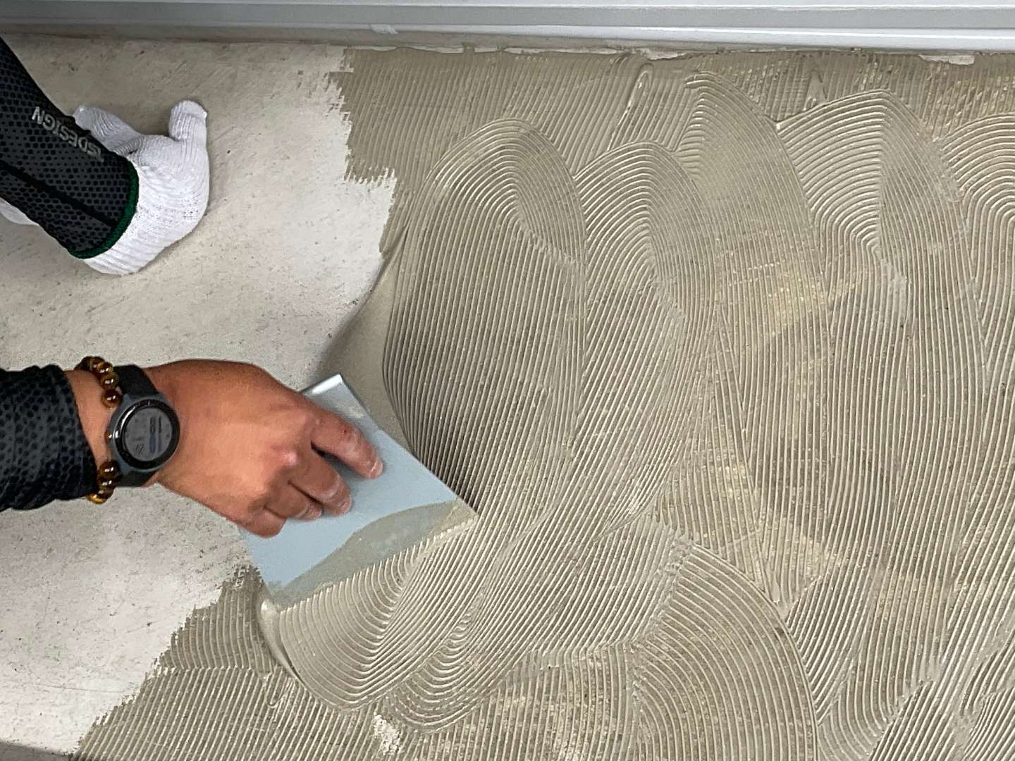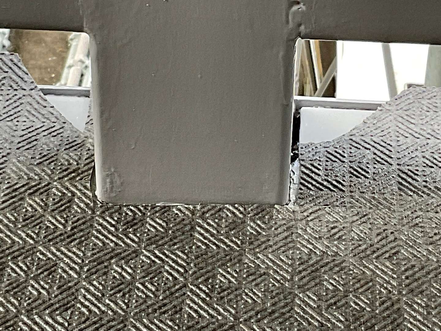 本日は階段・2階廊下化粧シート材(長尺シート)張り方作業です。
