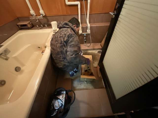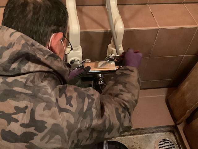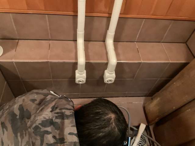 既存水栓取り外し作業