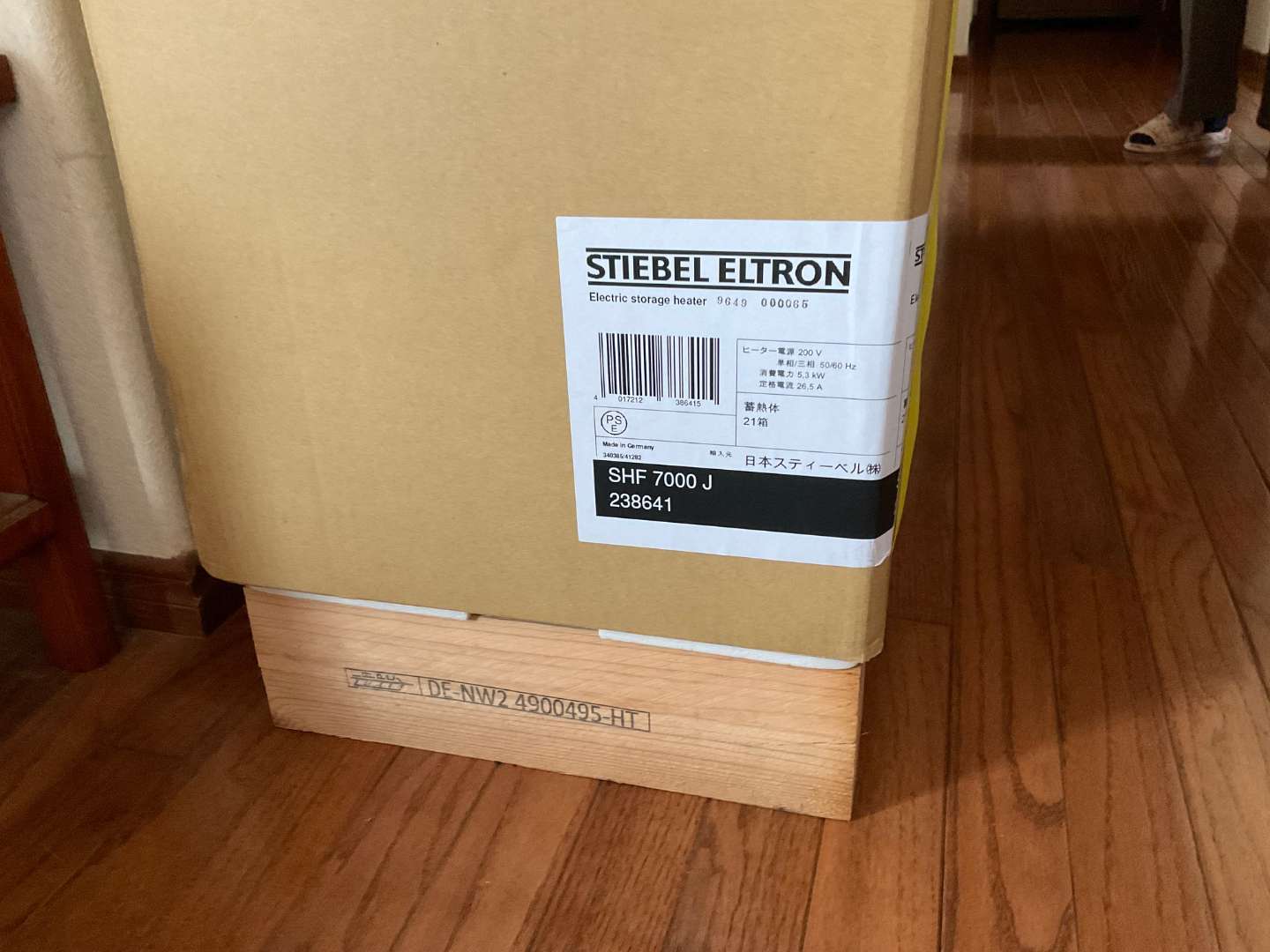 蓄熱暖房器本体です。7キロタイプでとても重量があります。
