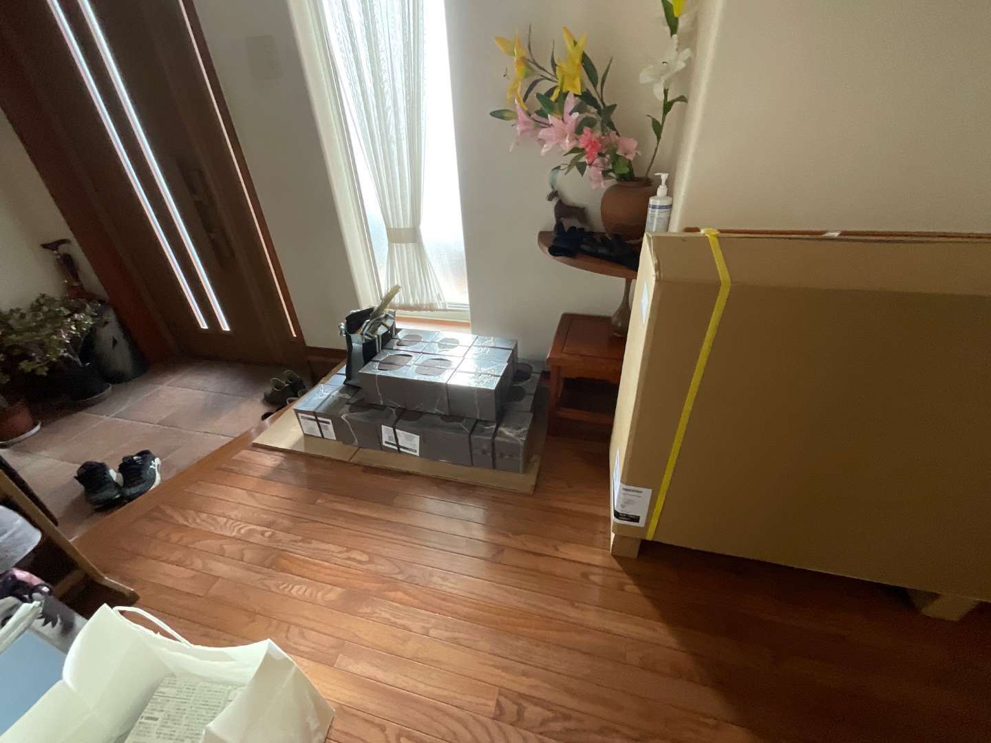 本日は、明日工事予定のお客様宅に蓄熱暖房器を納品に伺いました。