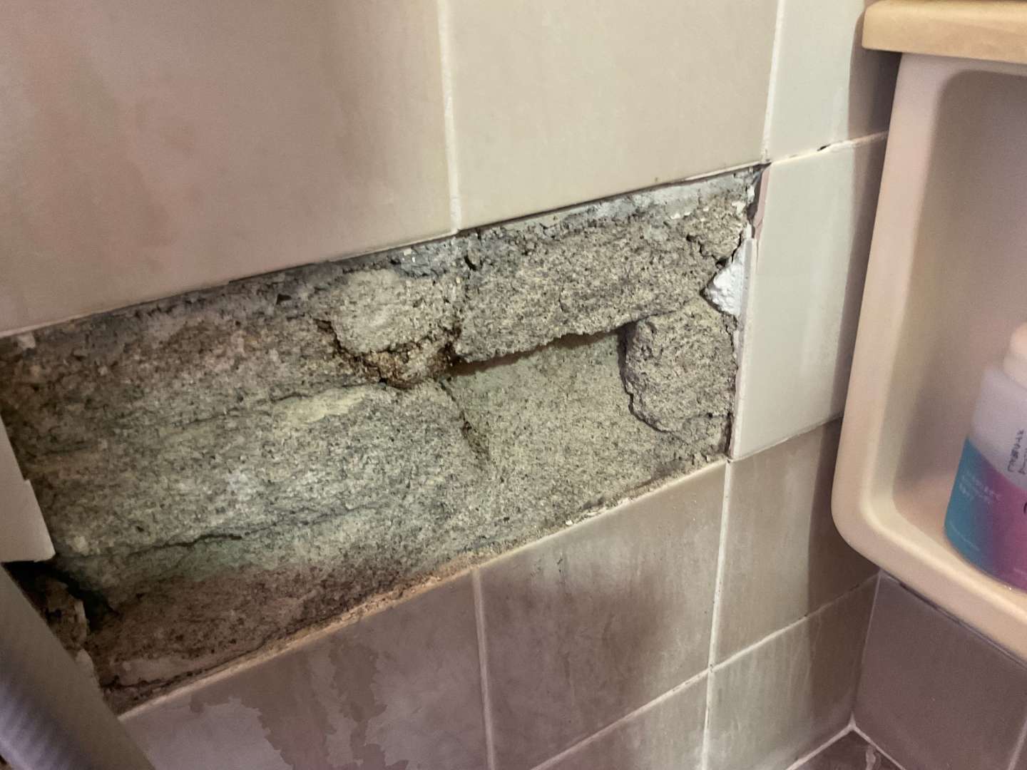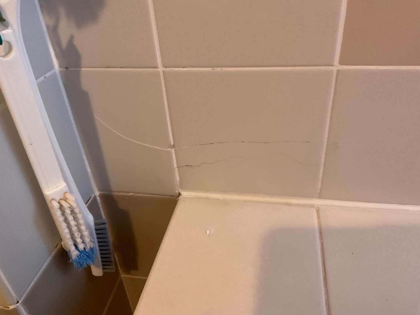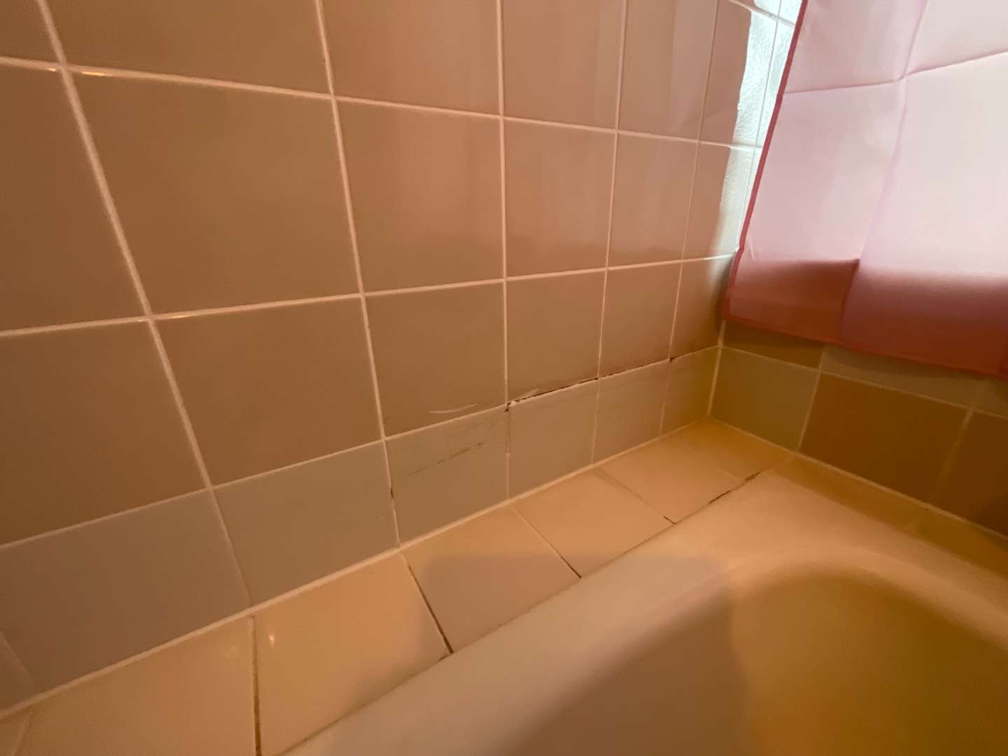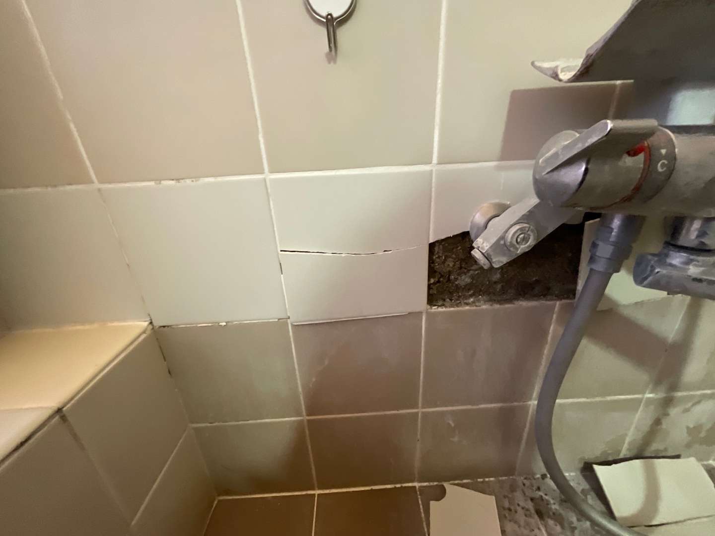 地震で浴室壁タイル破損、応急処置での訪問調査