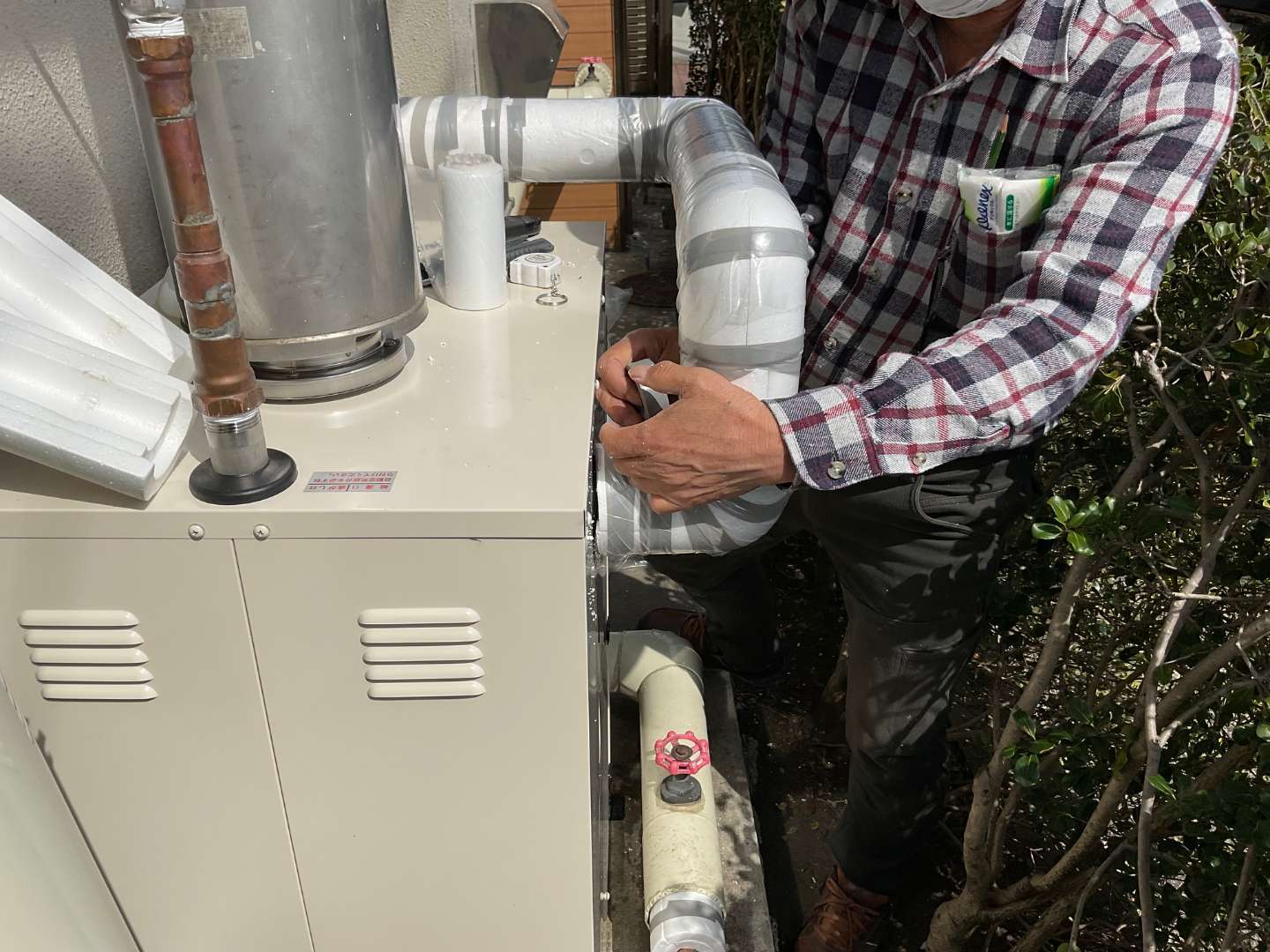 本日の作業は、床暖房配管保温・ラッキング(板金)工事です。