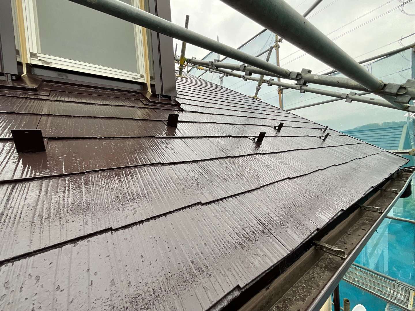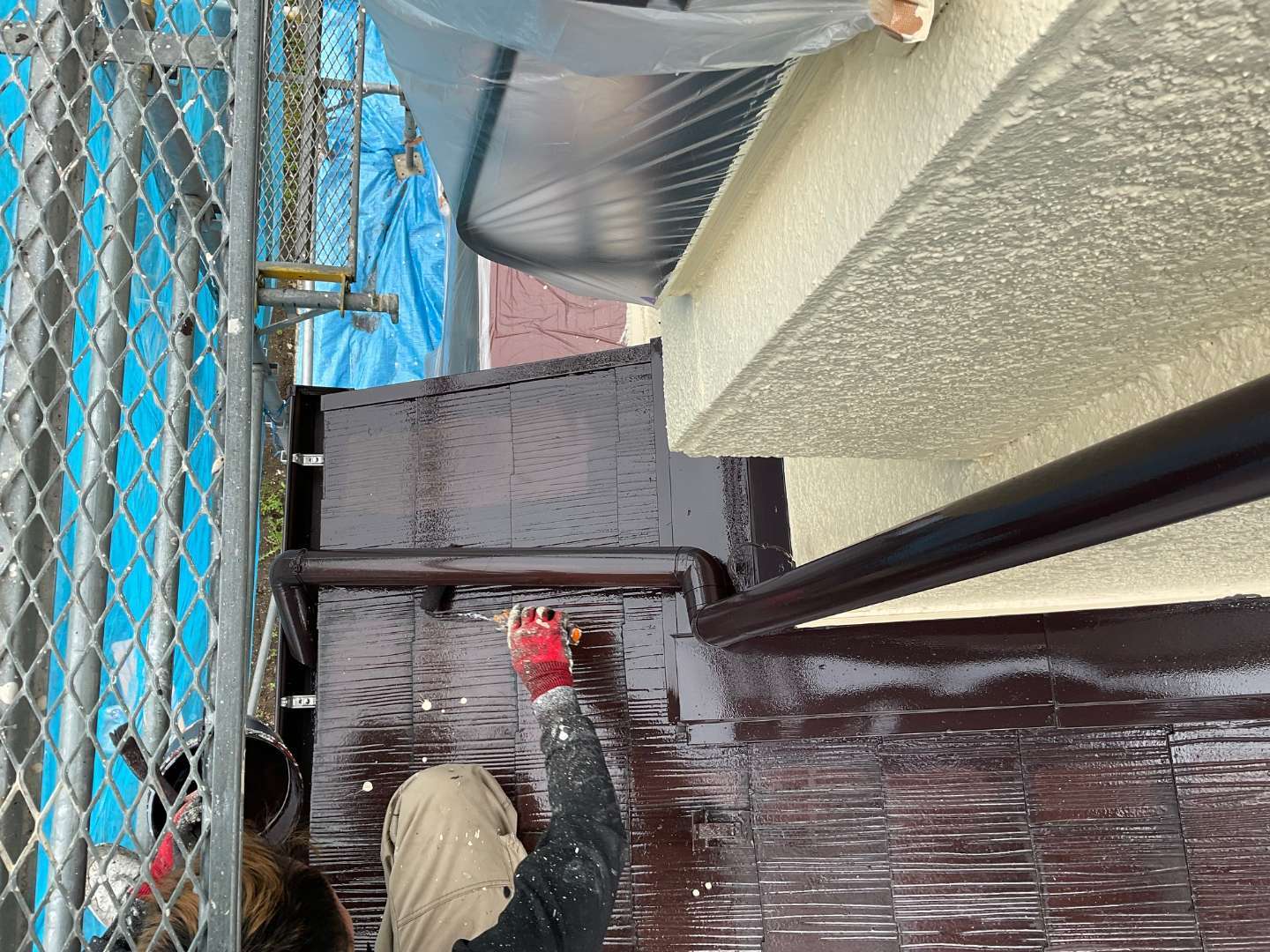本日の作業は、2階屋根・1階屋根仕上げ塗装です。