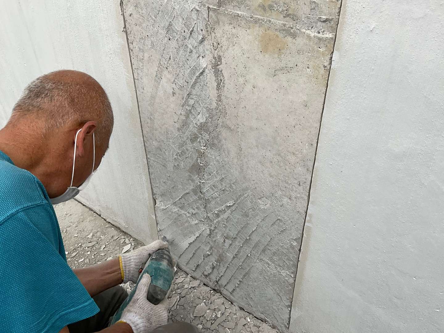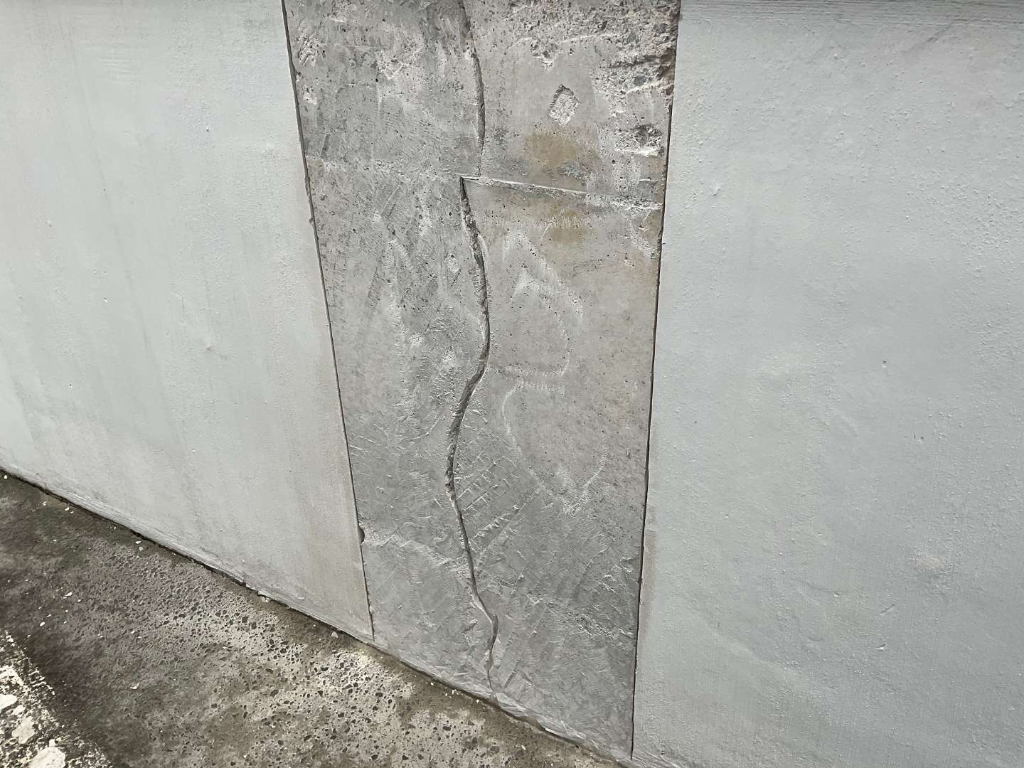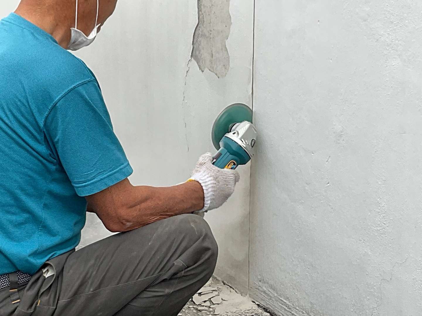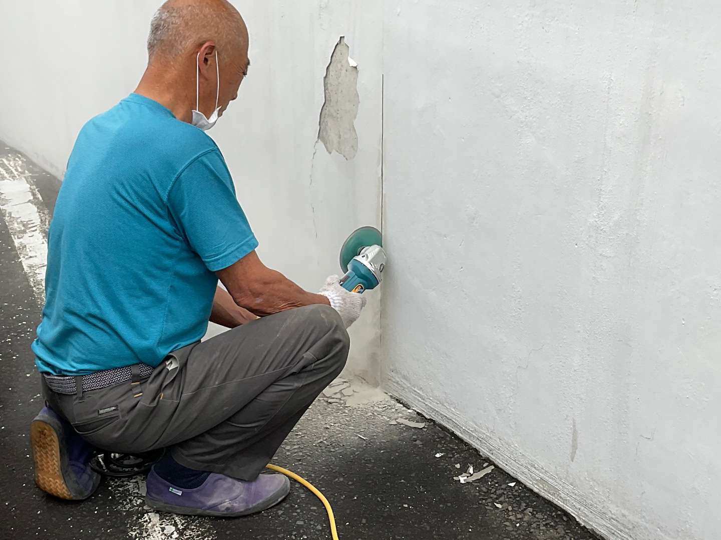 基礎モルタル剥がれ箇所カッター入れ作業