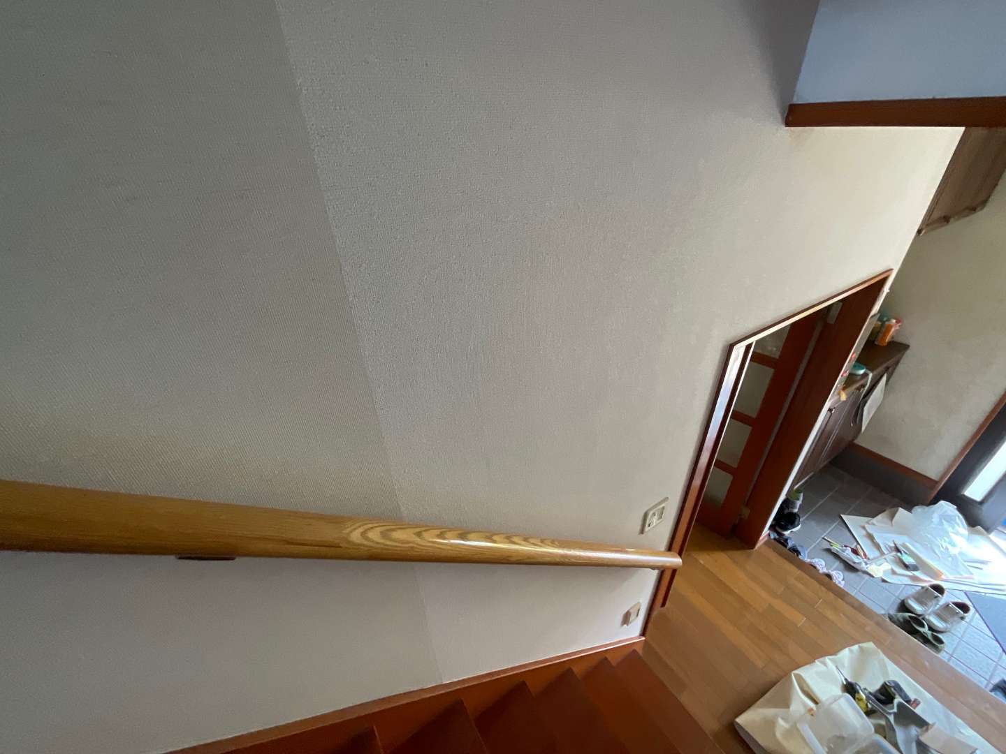 階段壁クロス貼り完了