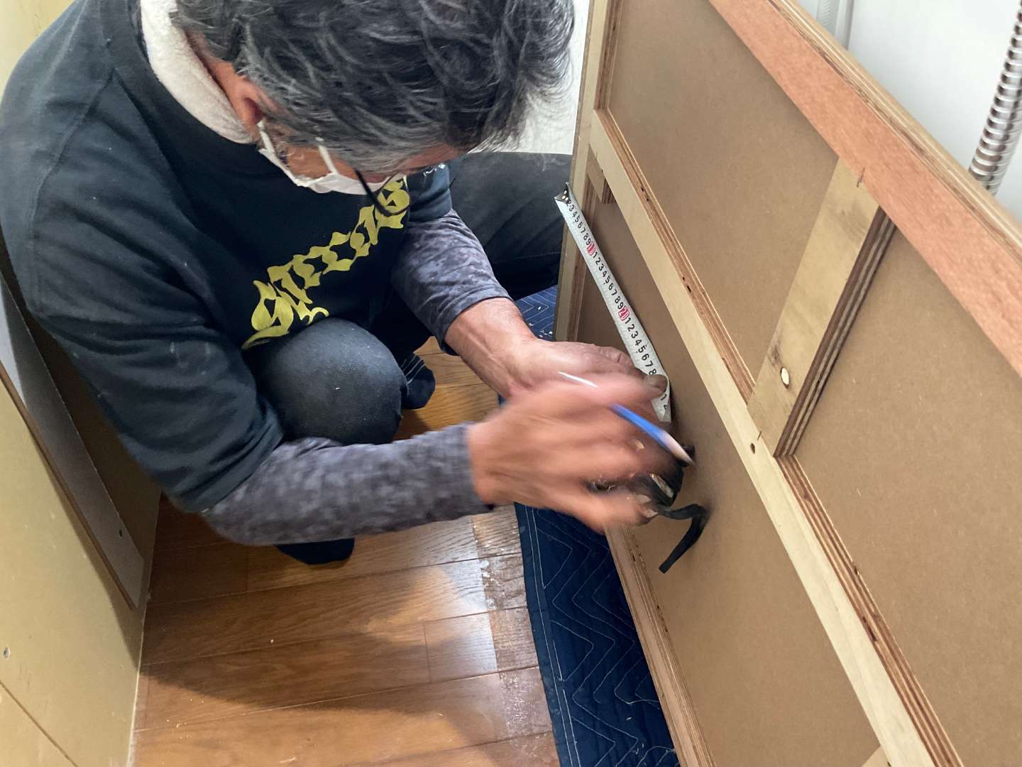 洗面台鏡取り付け作業