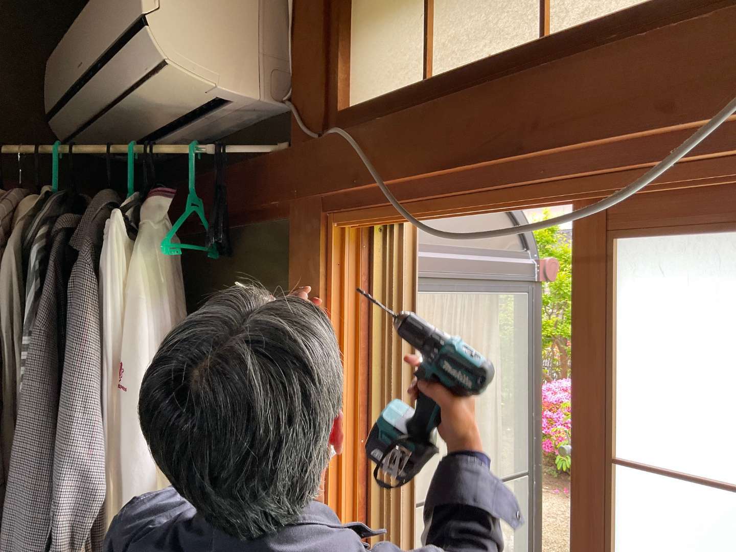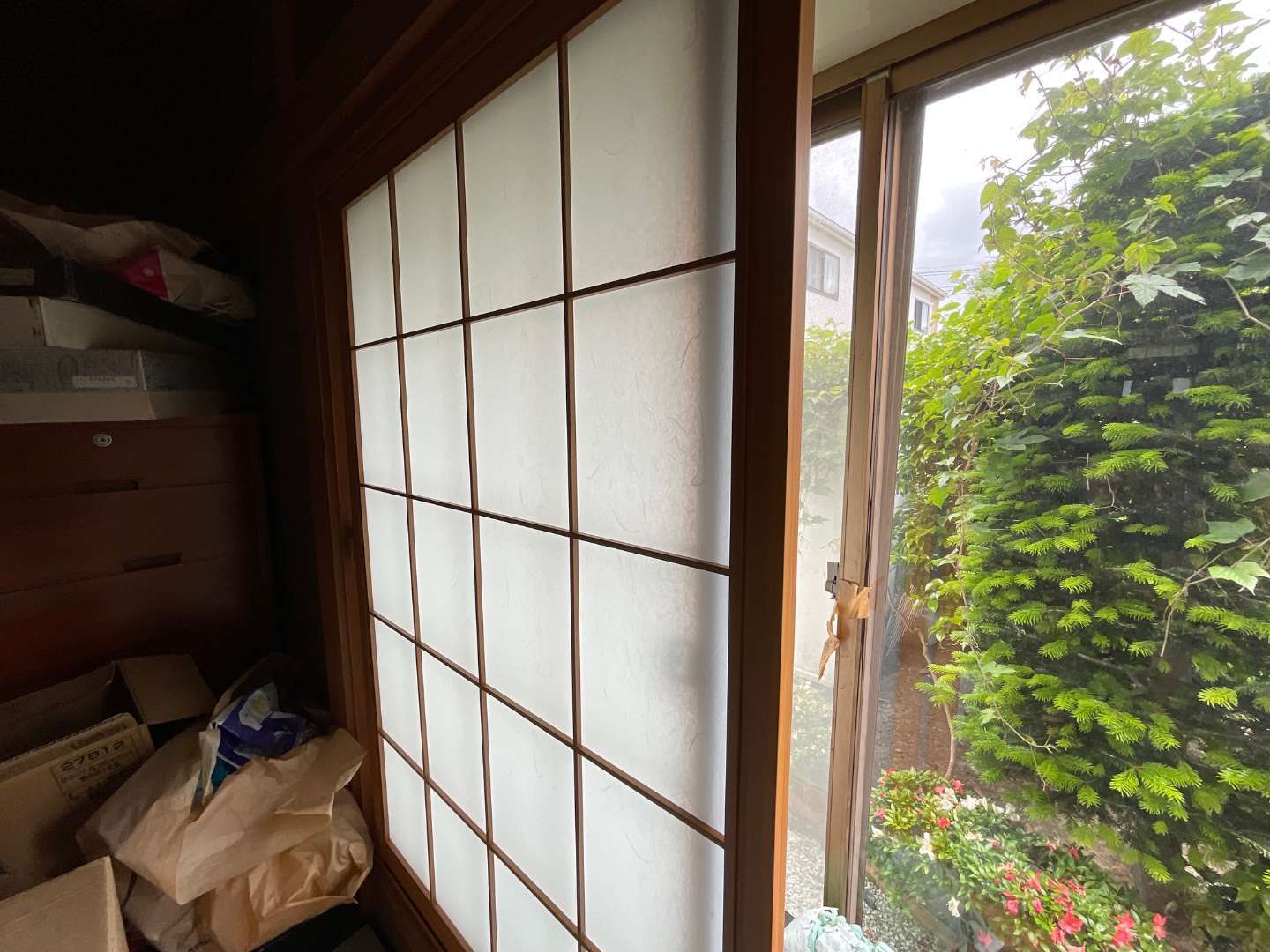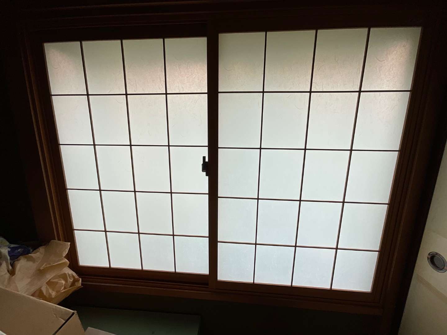 本日の作業は、和風樹脂サッシ、取り付け作業です。