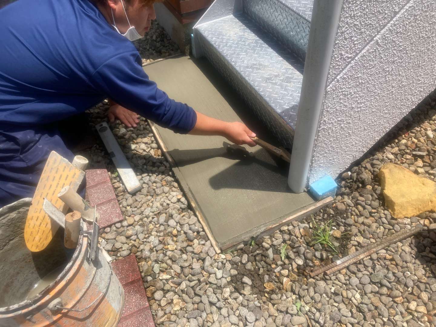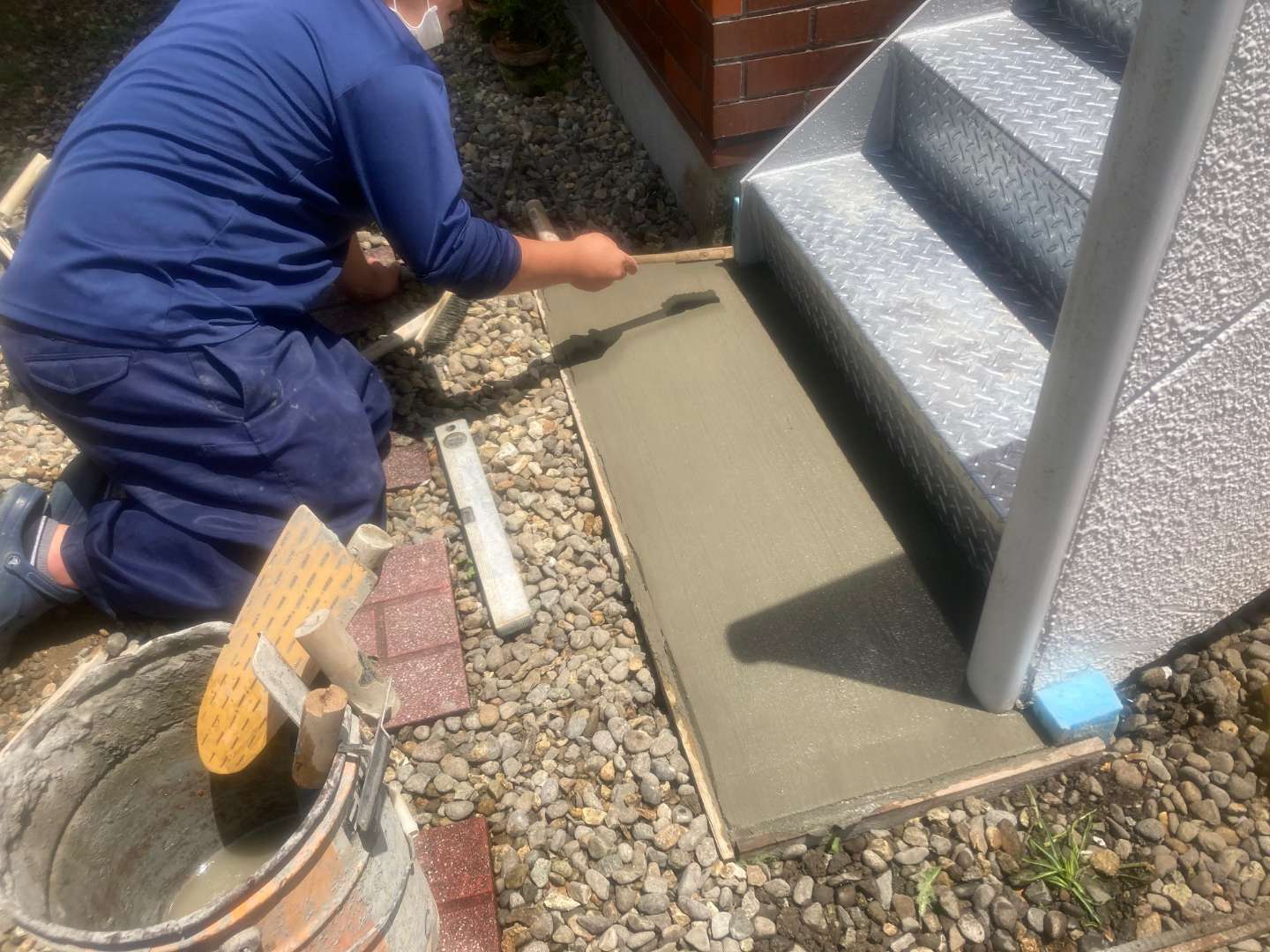 本日は、アパート階段コンクリート打ち作業です。