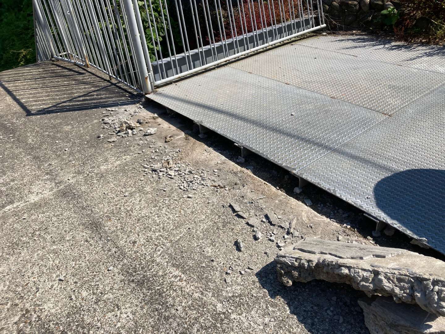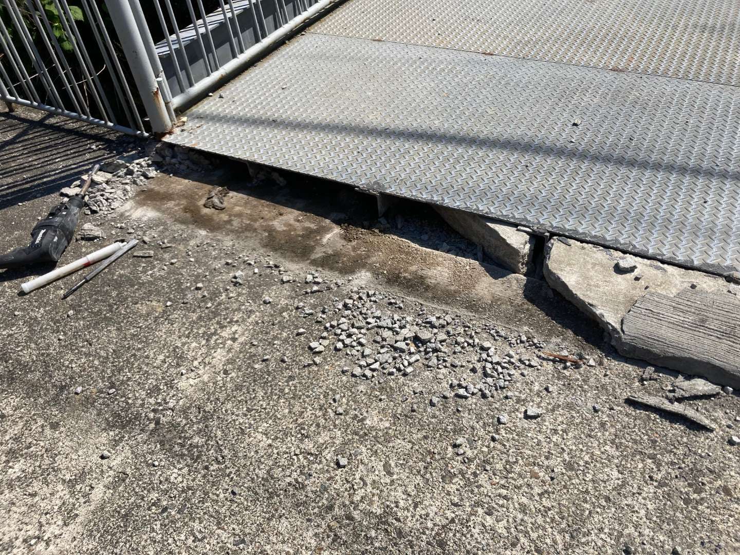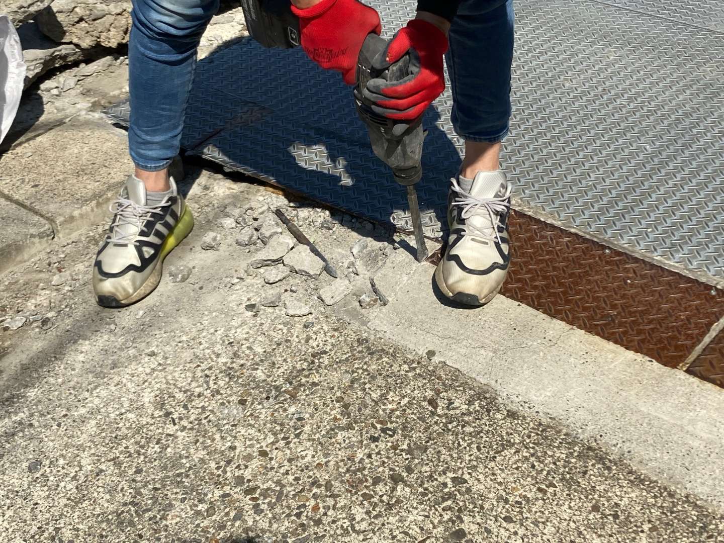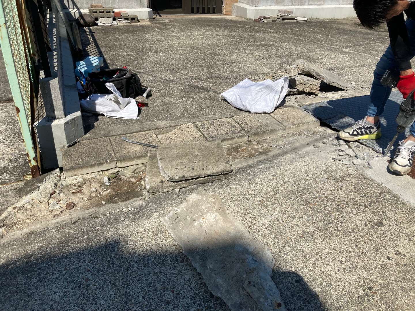 本日の作業は、玄関アルミ材撤去・ガラス交換・部分的コンクリート解体作業です。