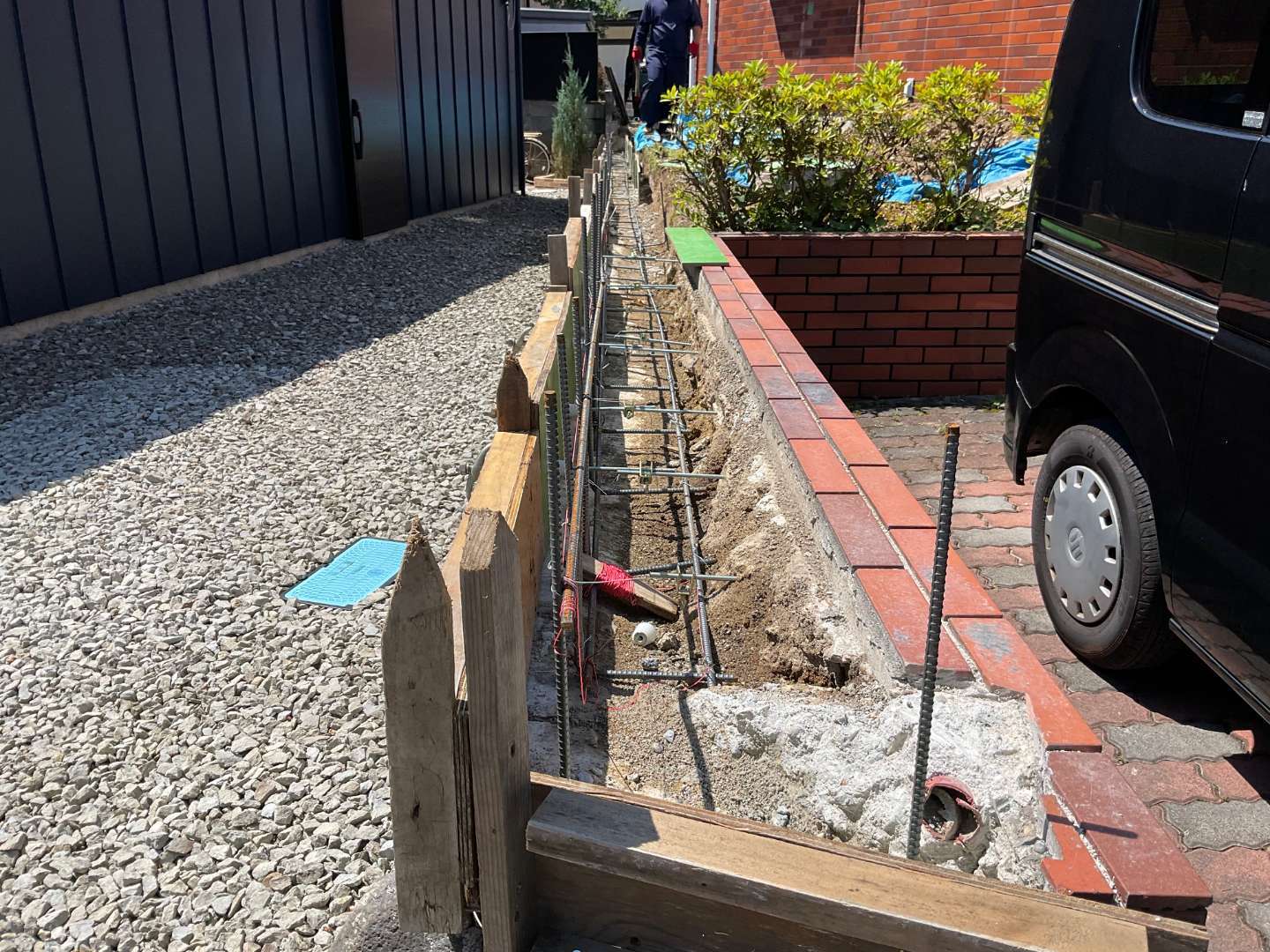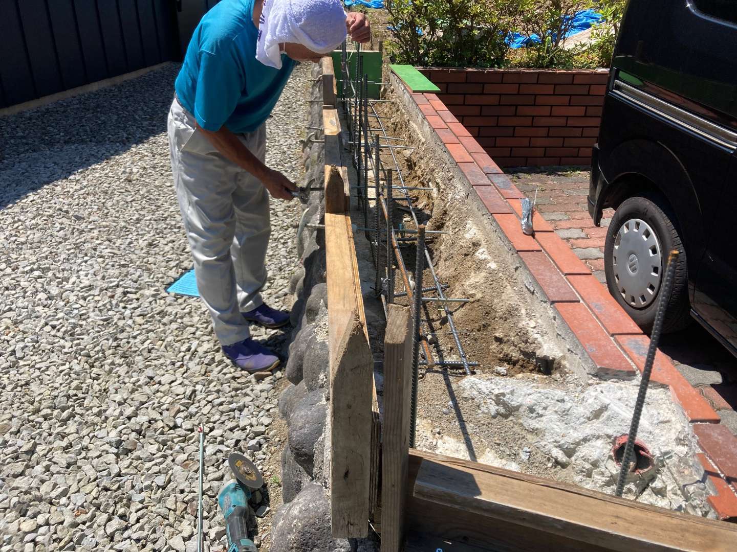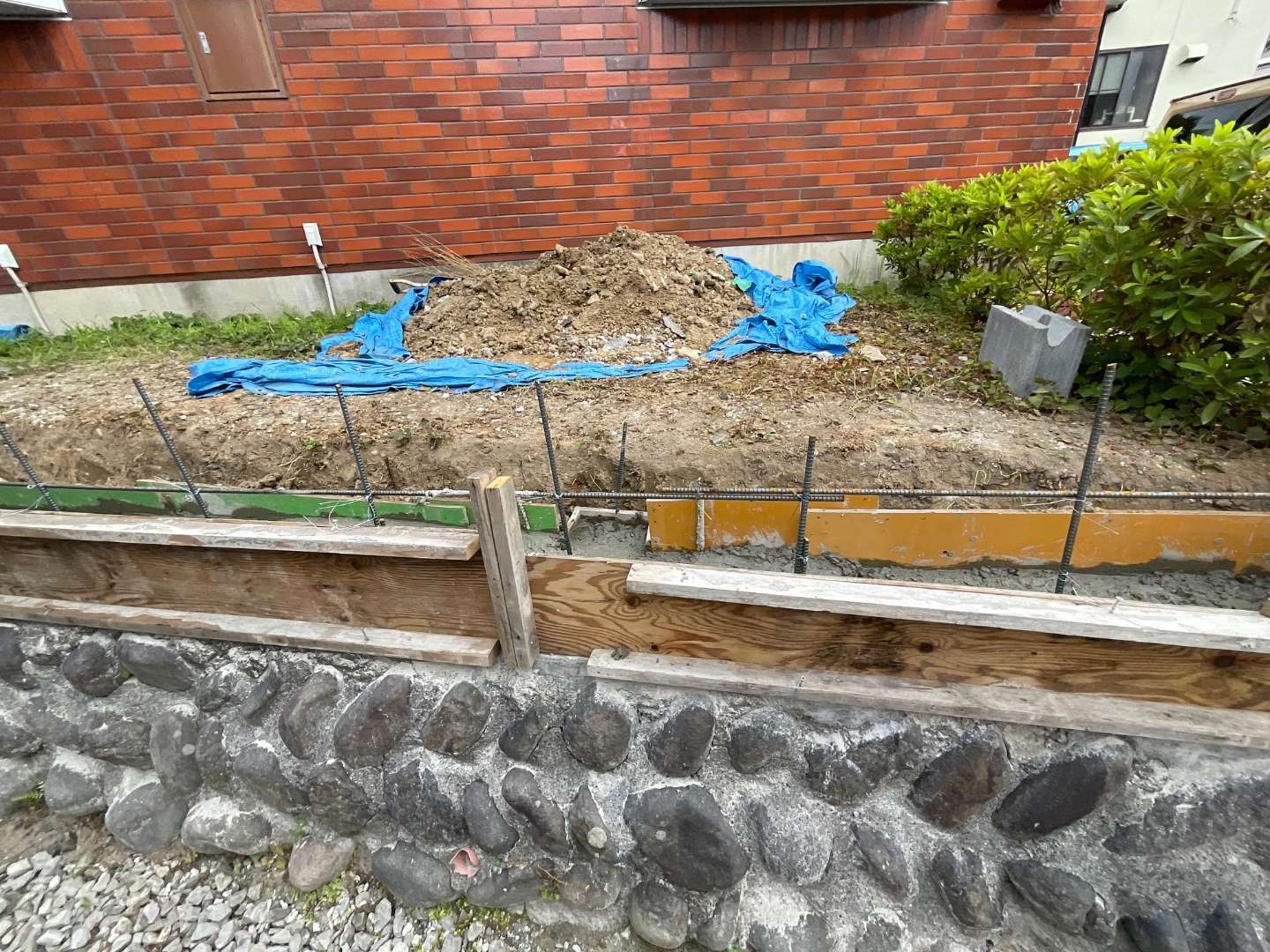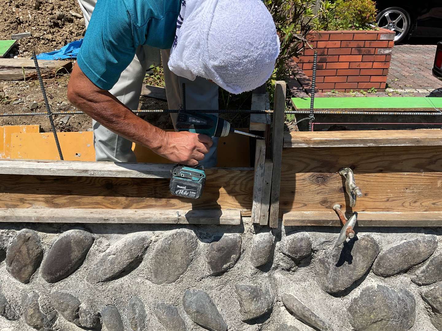 本日の作業は、ブロック用のベースコンクリート打ち作業です。