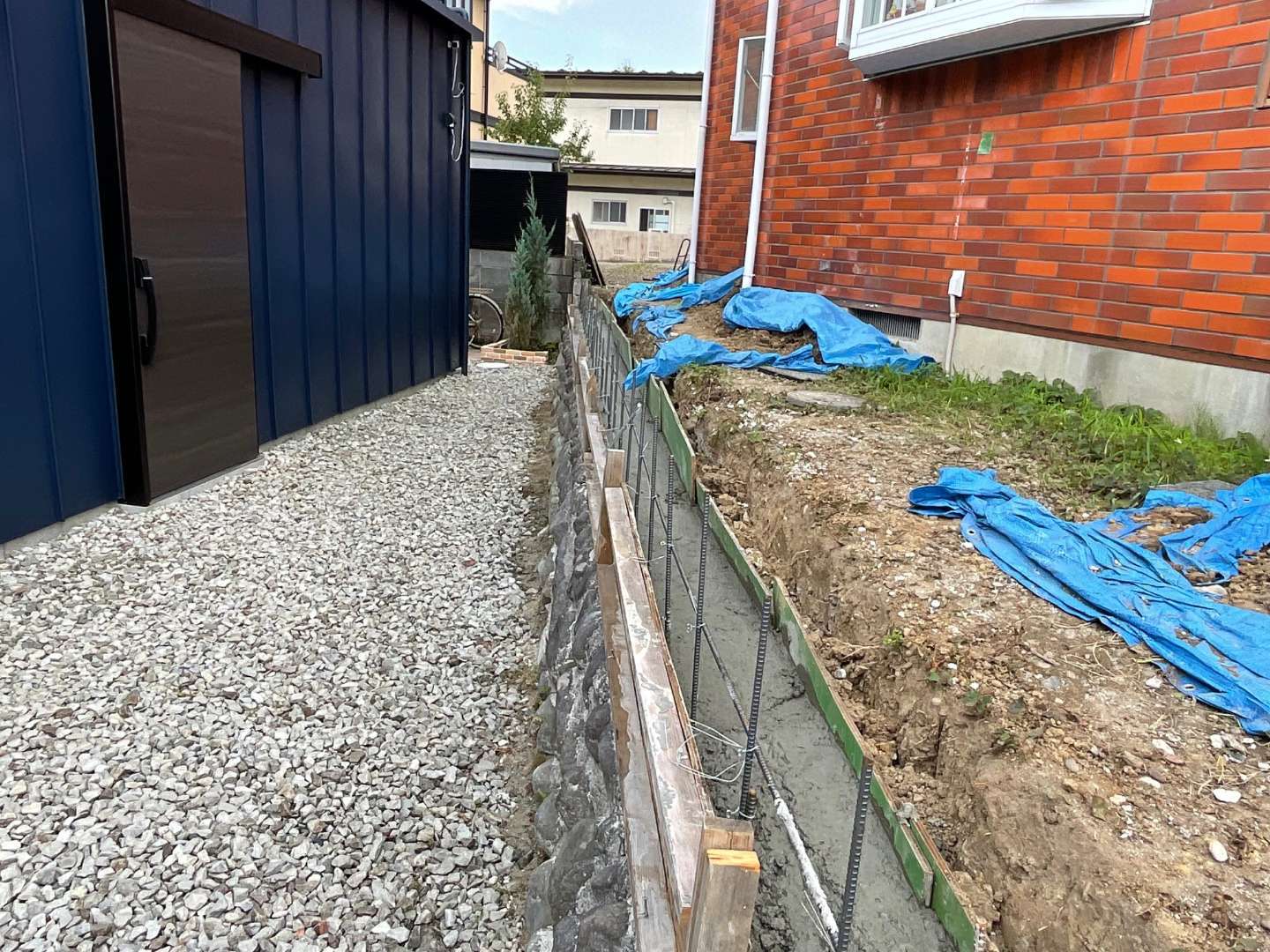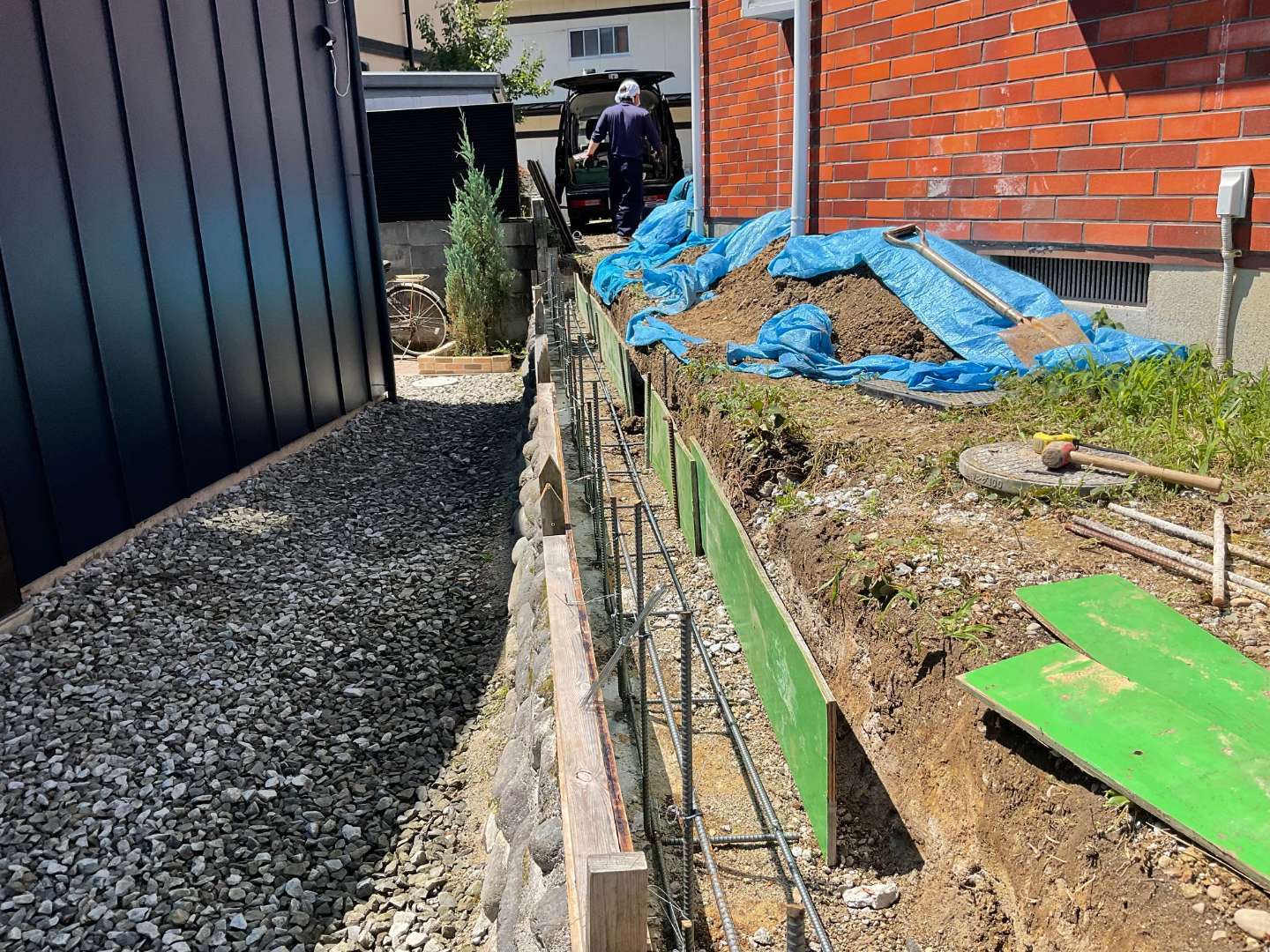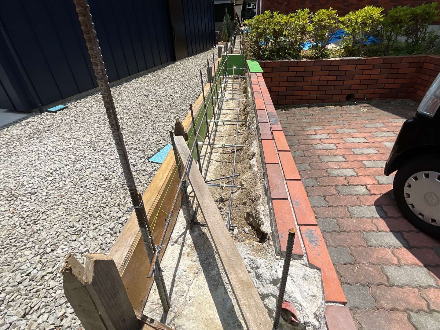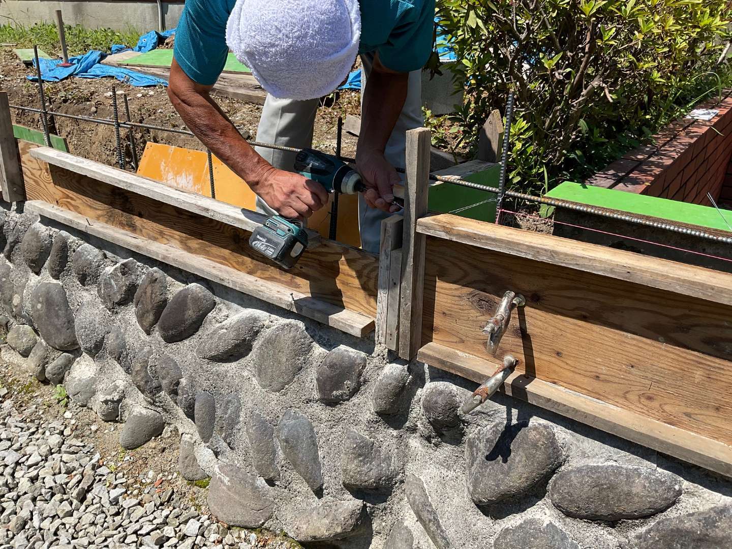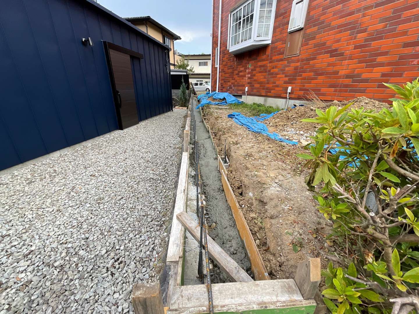 本日の作業は、ブロック用のベースコンクリート打ち作業です。