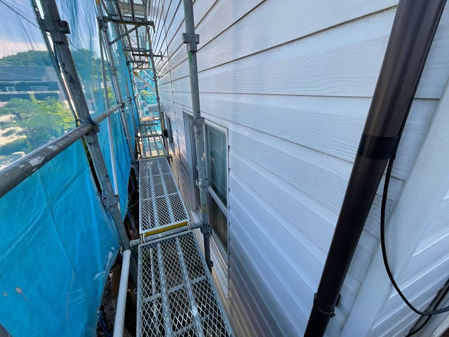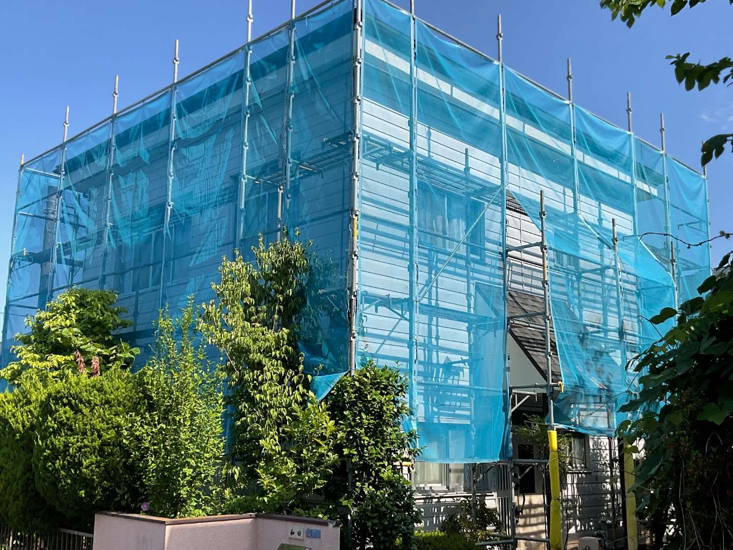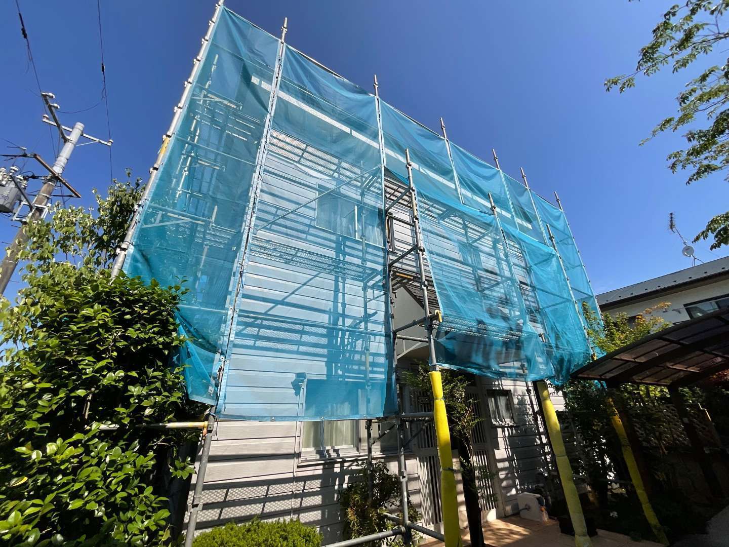 外壁張替えリフォームの為、足場組み作業