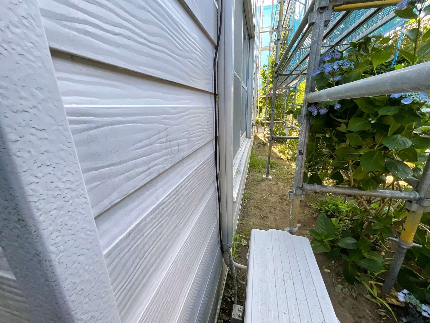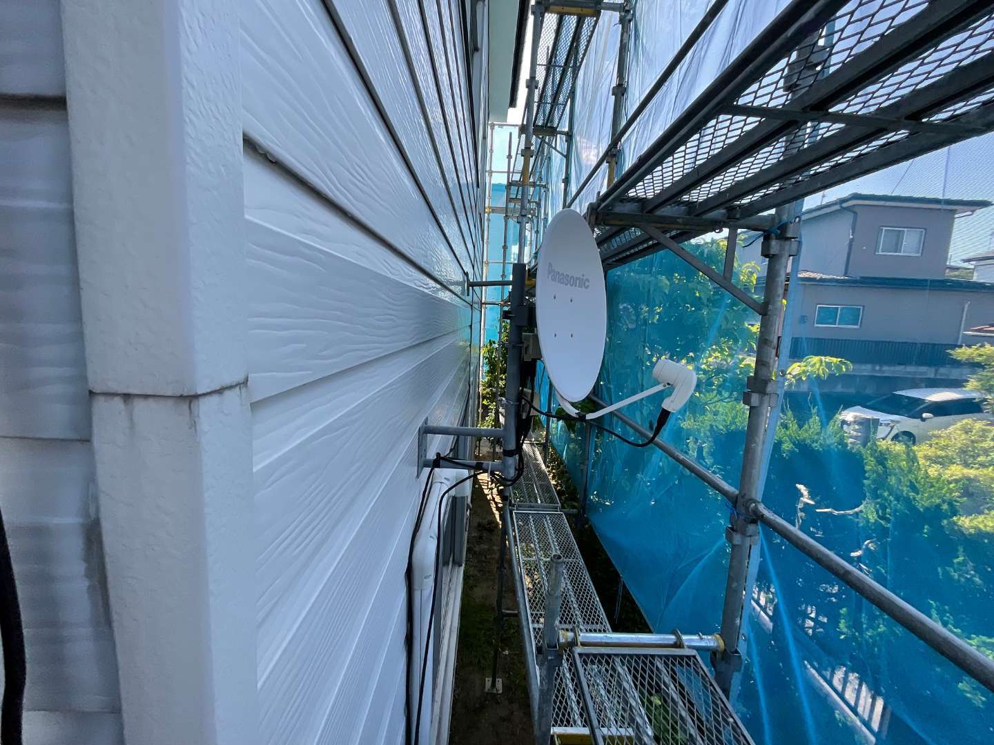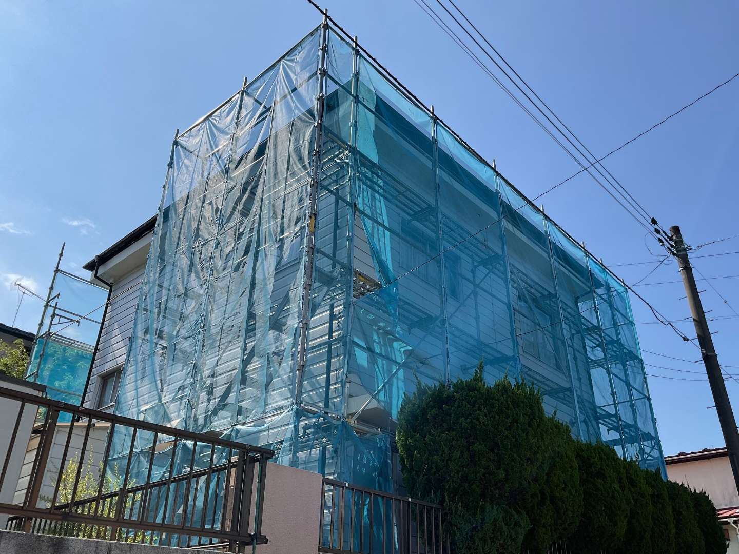外壁張替えリフォームの為、足場組み作業