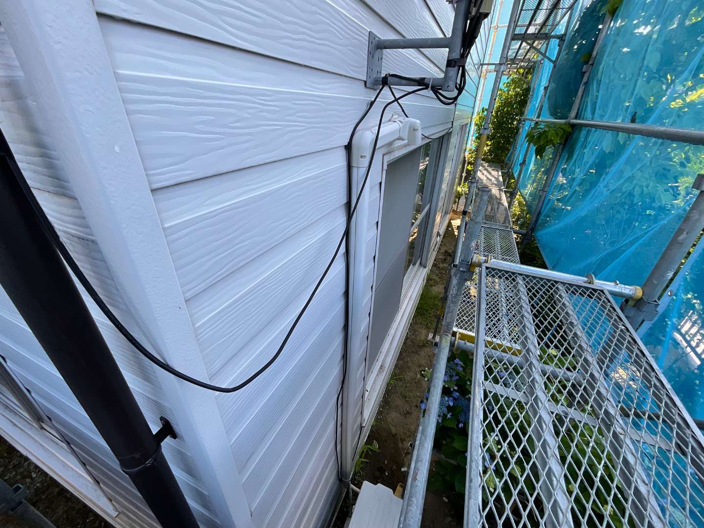 外壁工事の為壁に取り付けてる機器等取り外し作業