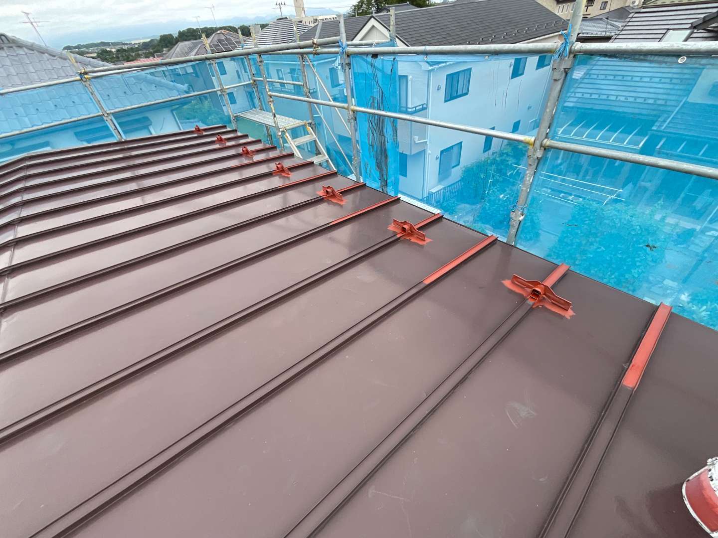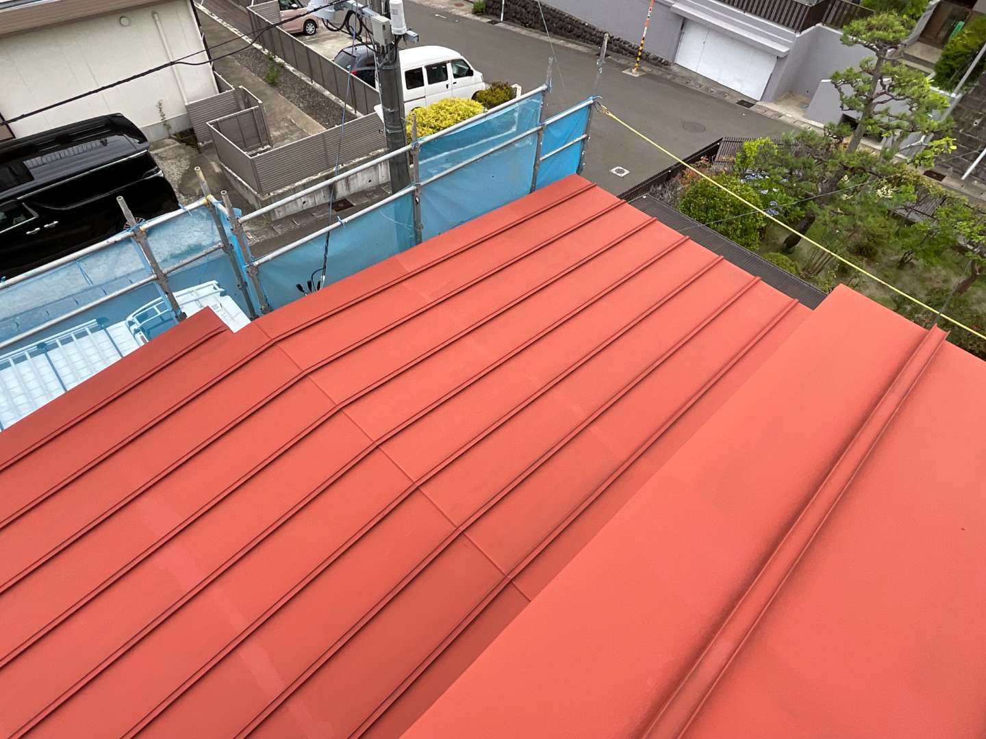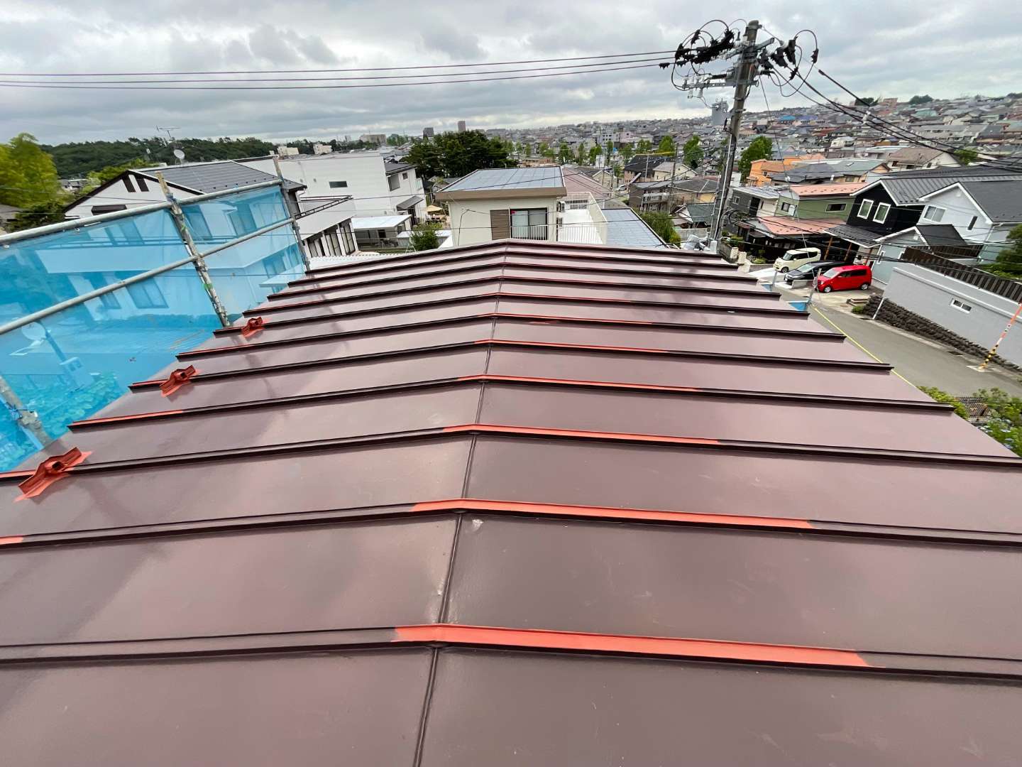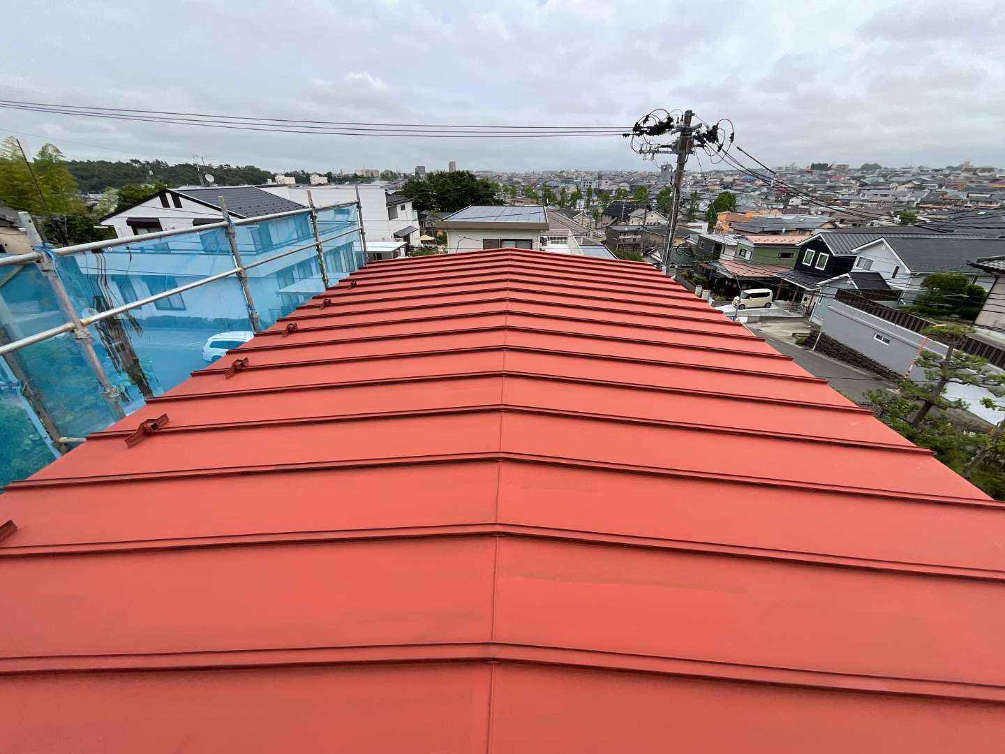 本日の作業は、屋根錆止め塗装:中塗り刷毛入れ塗装です。