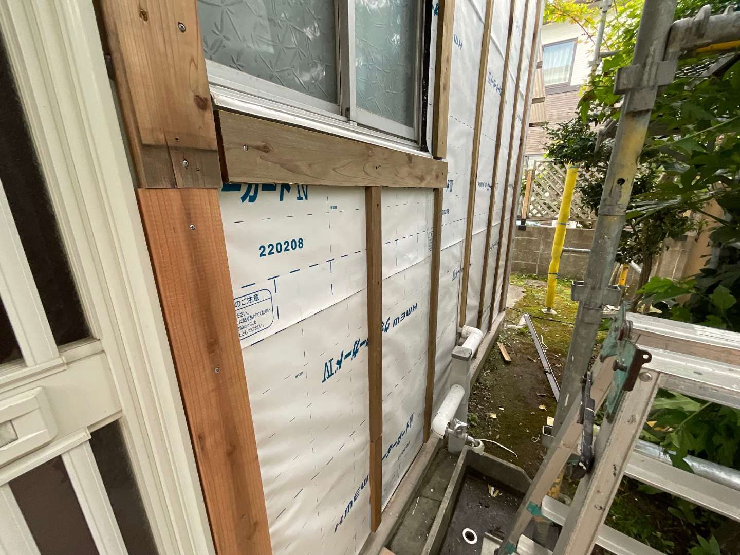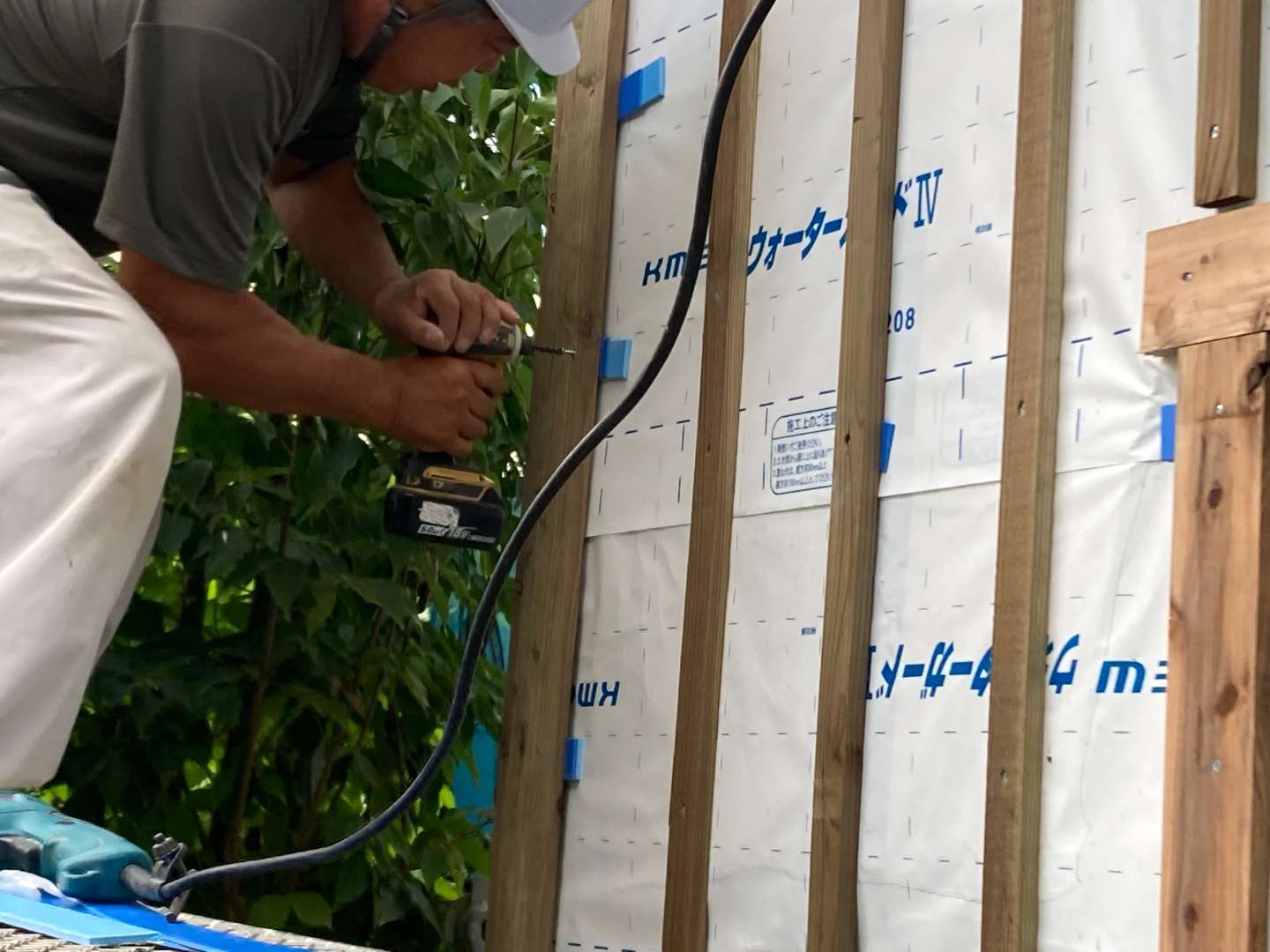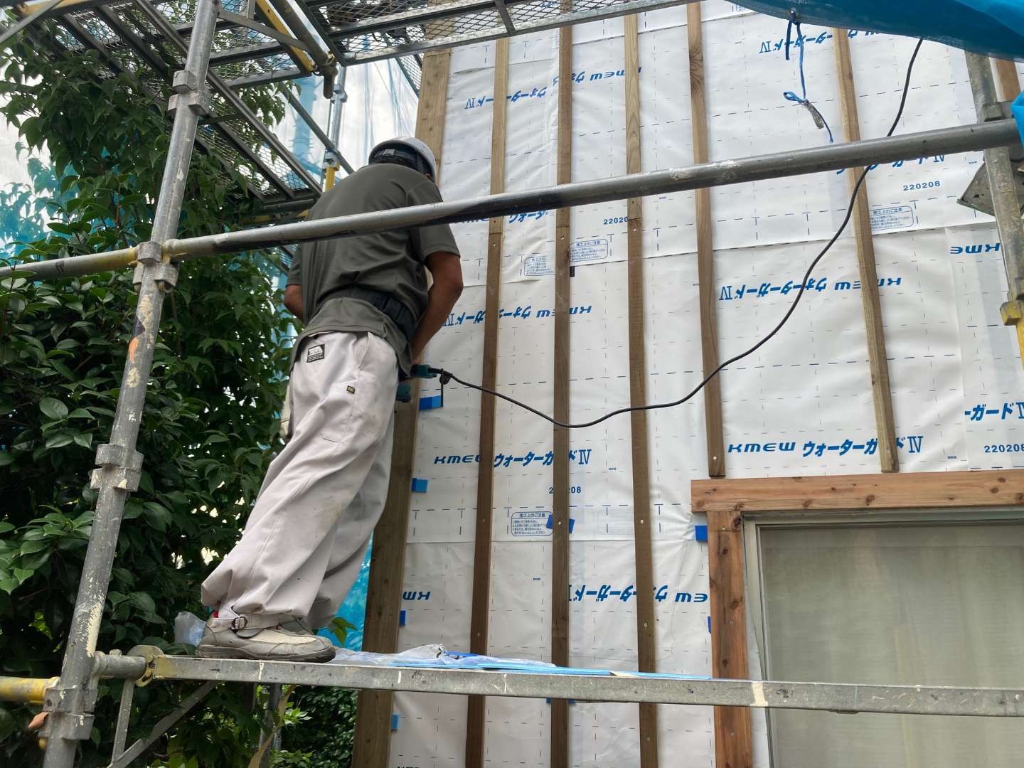 本日の作業は、木下地胴縁の取り付けです。