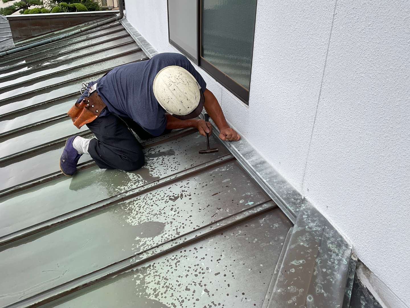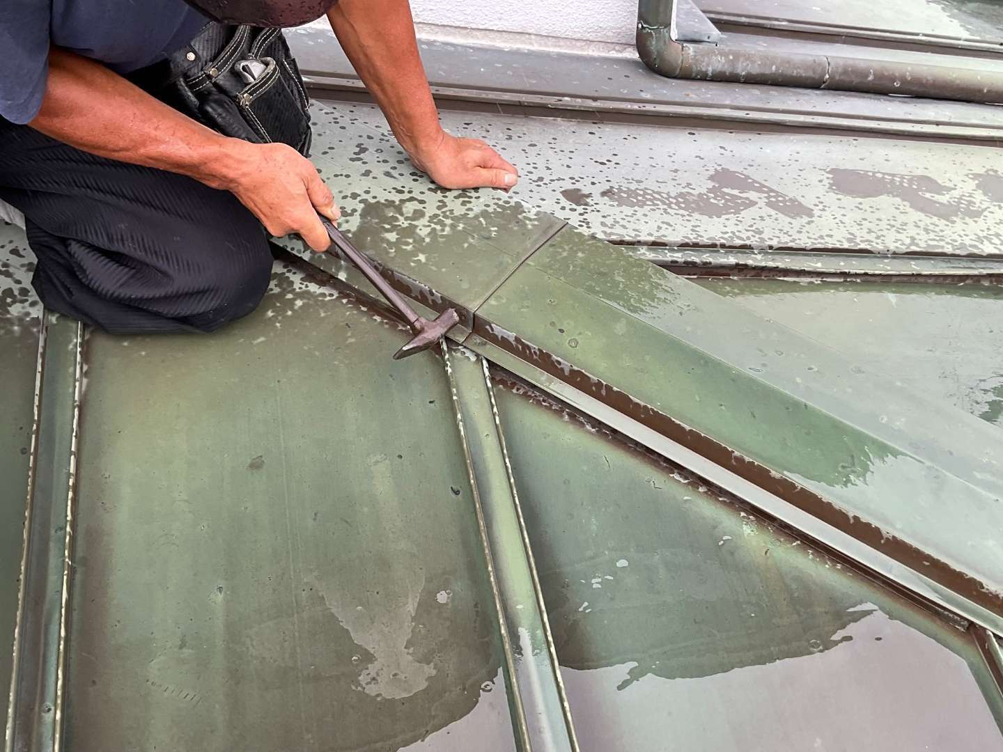 本日は、銅板屋根の修繕作業です。