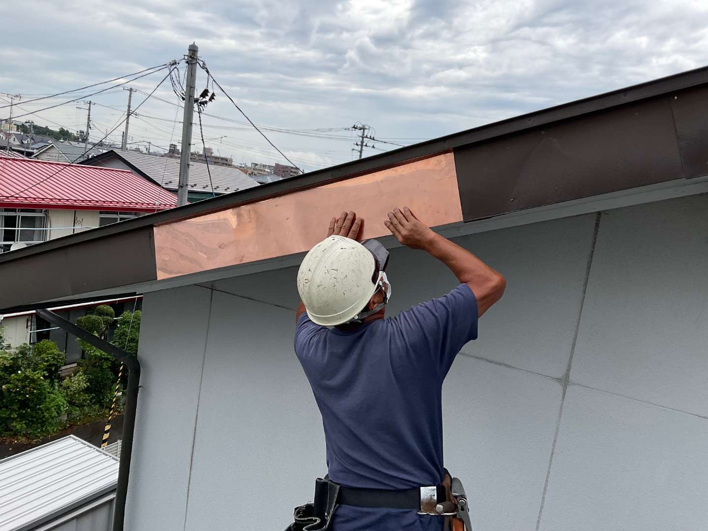 屋根破風板銅板板取り付け