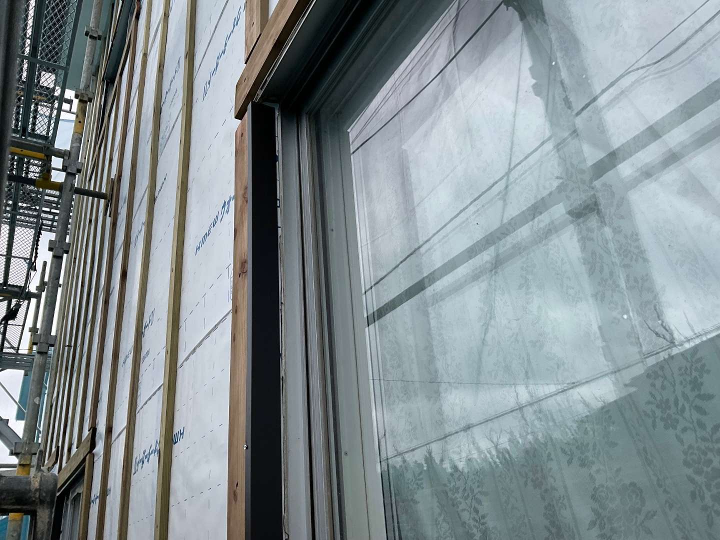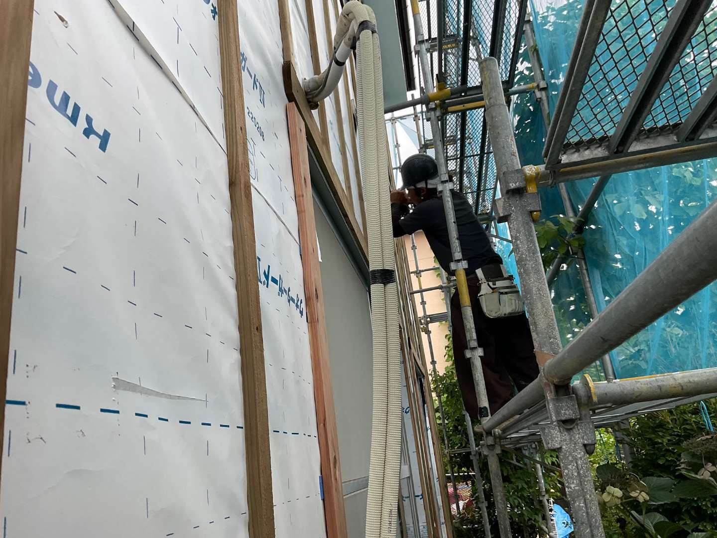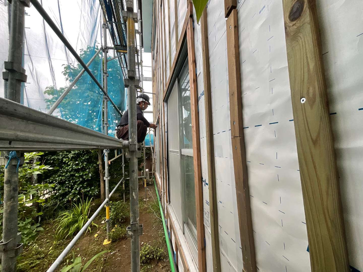 本日は、外壁水切り取り付け・サッシ廻り外壁役物取り付け作業です。