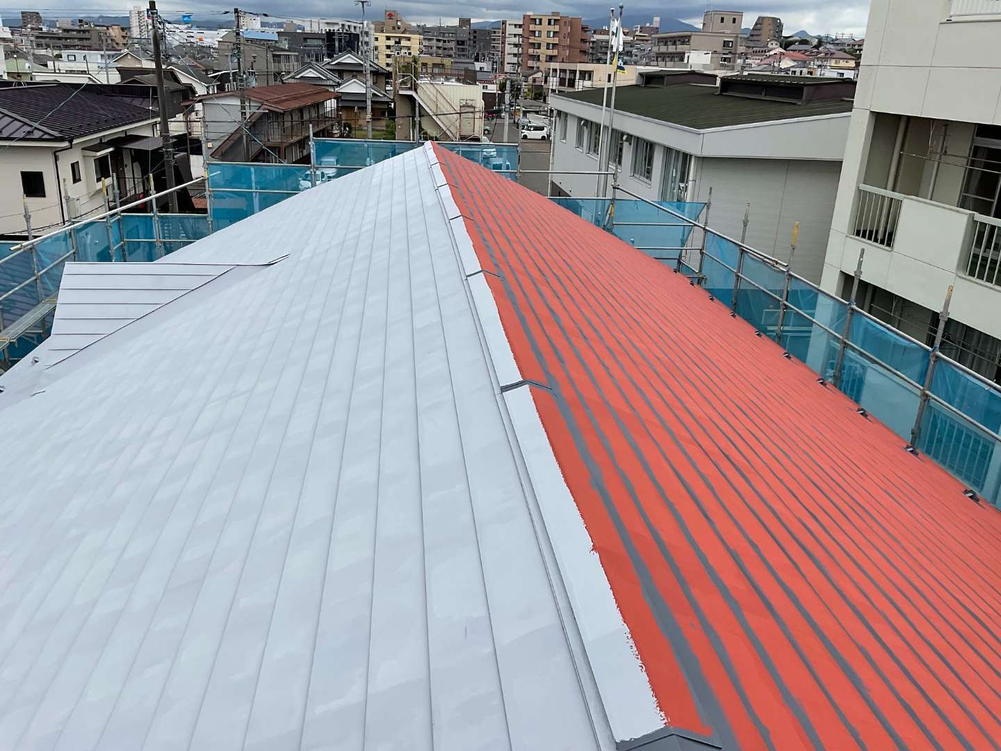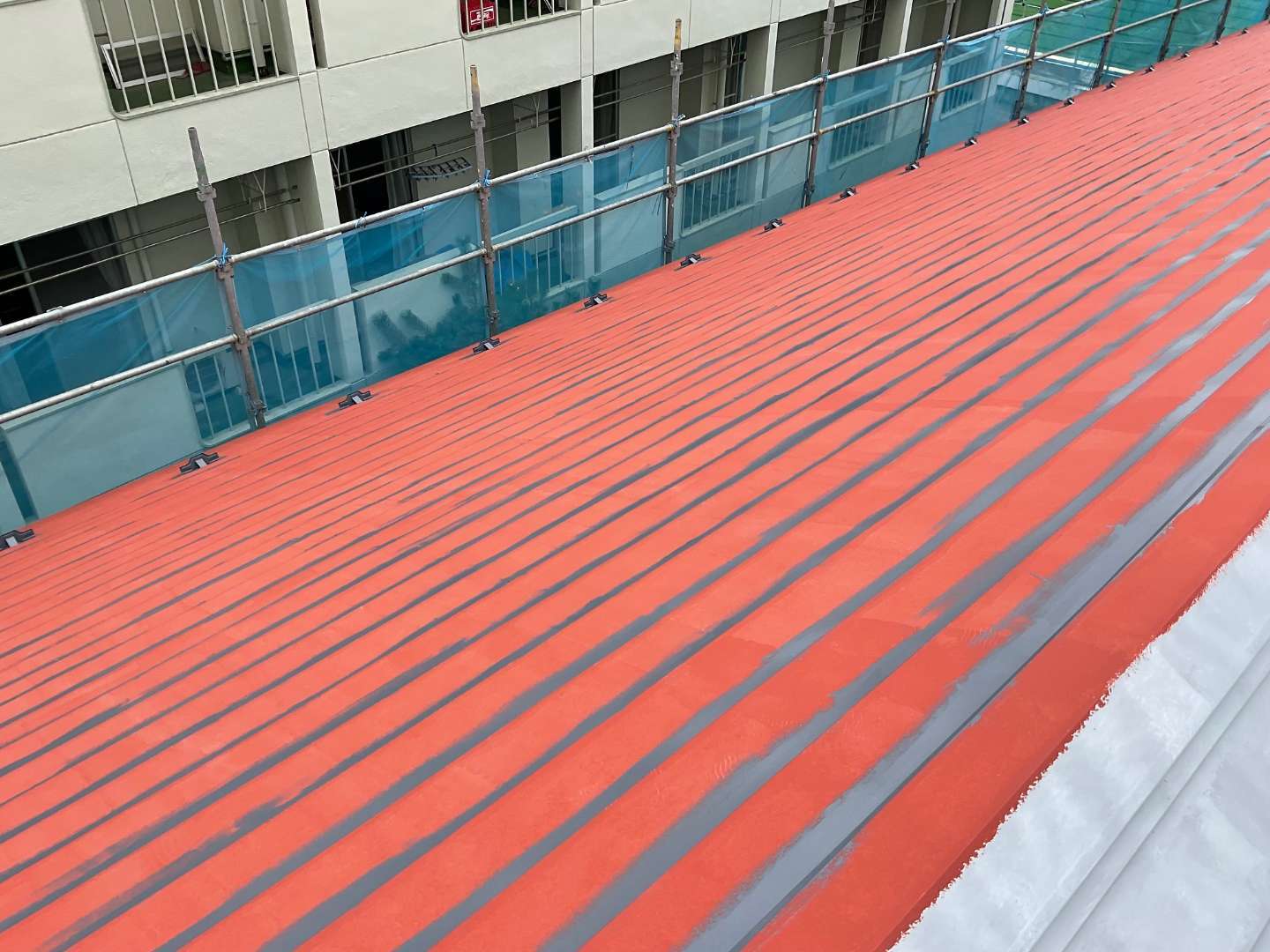 屋根錆止め紅白色です。