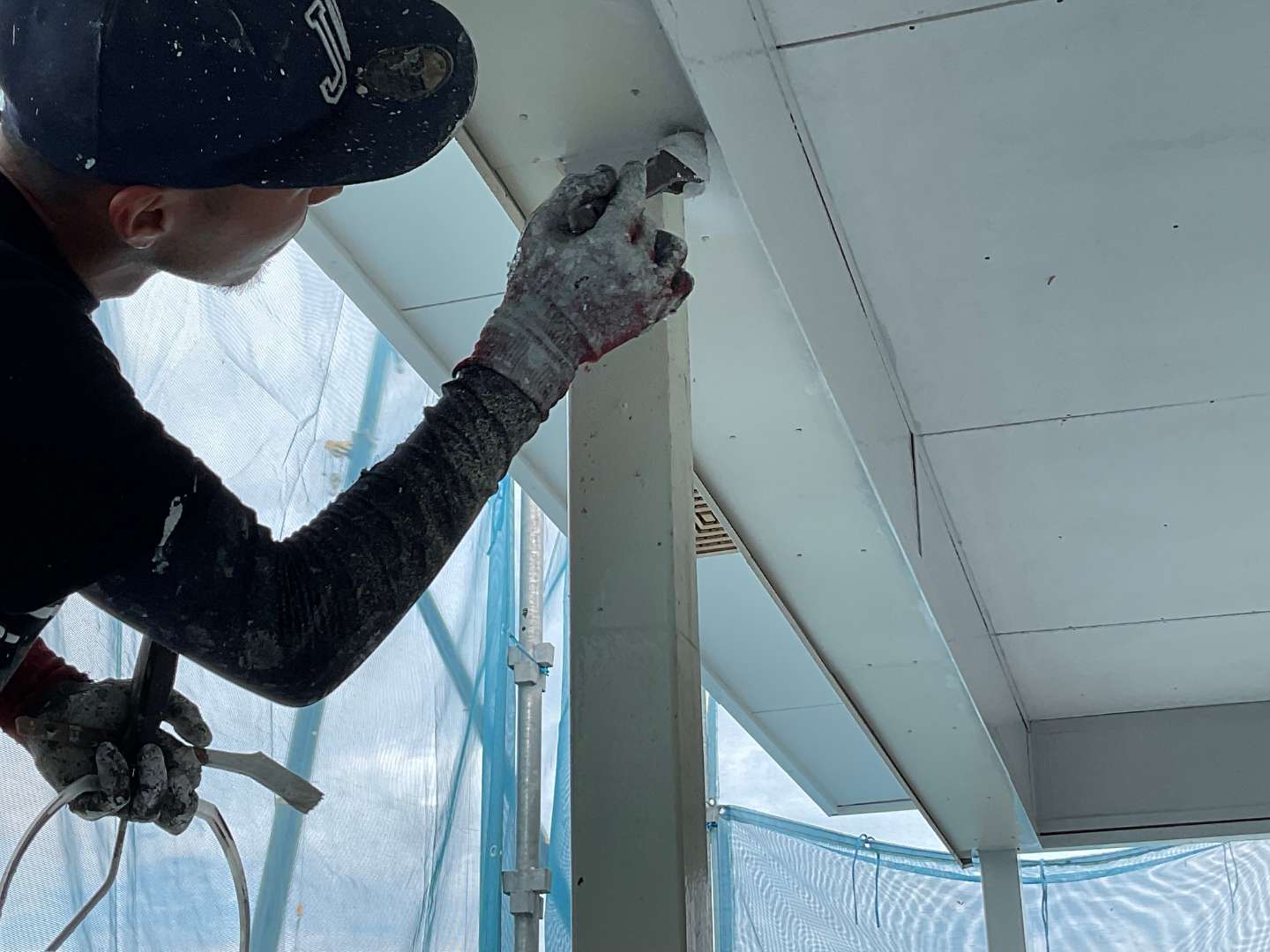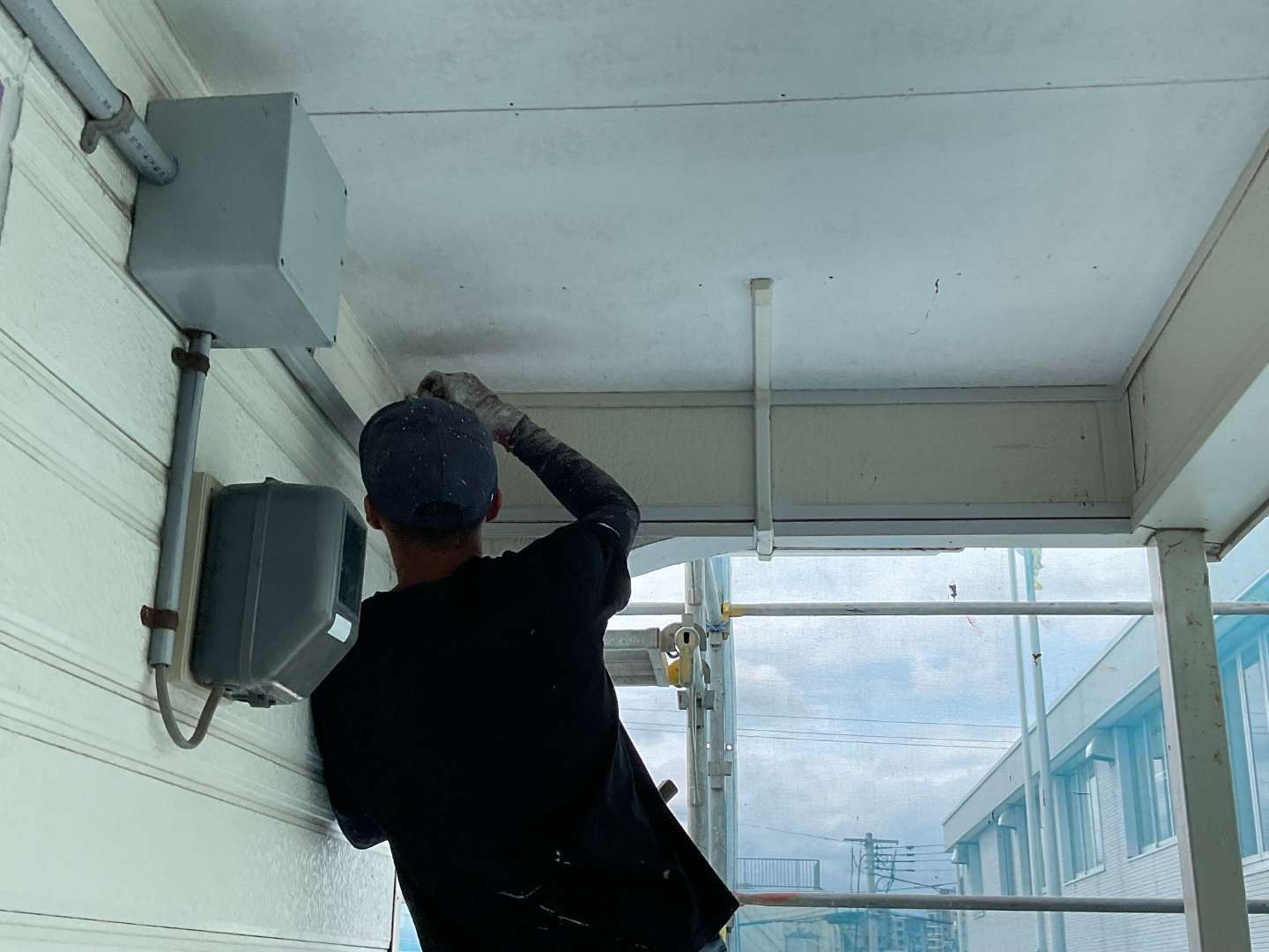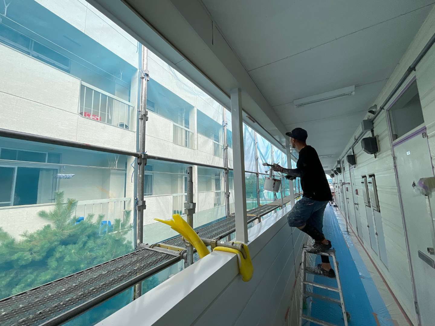 本日の作業は、外壁仕上げ・共用通路錆止め塗装・他です。
