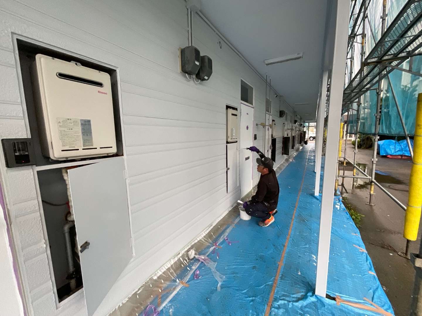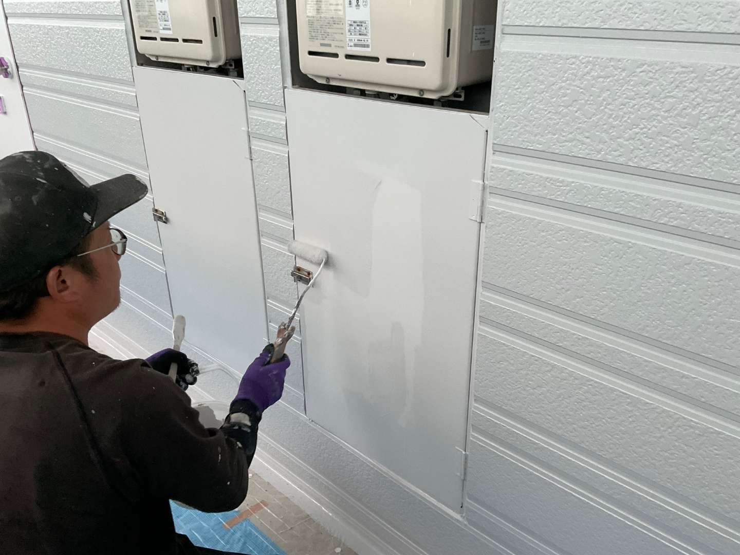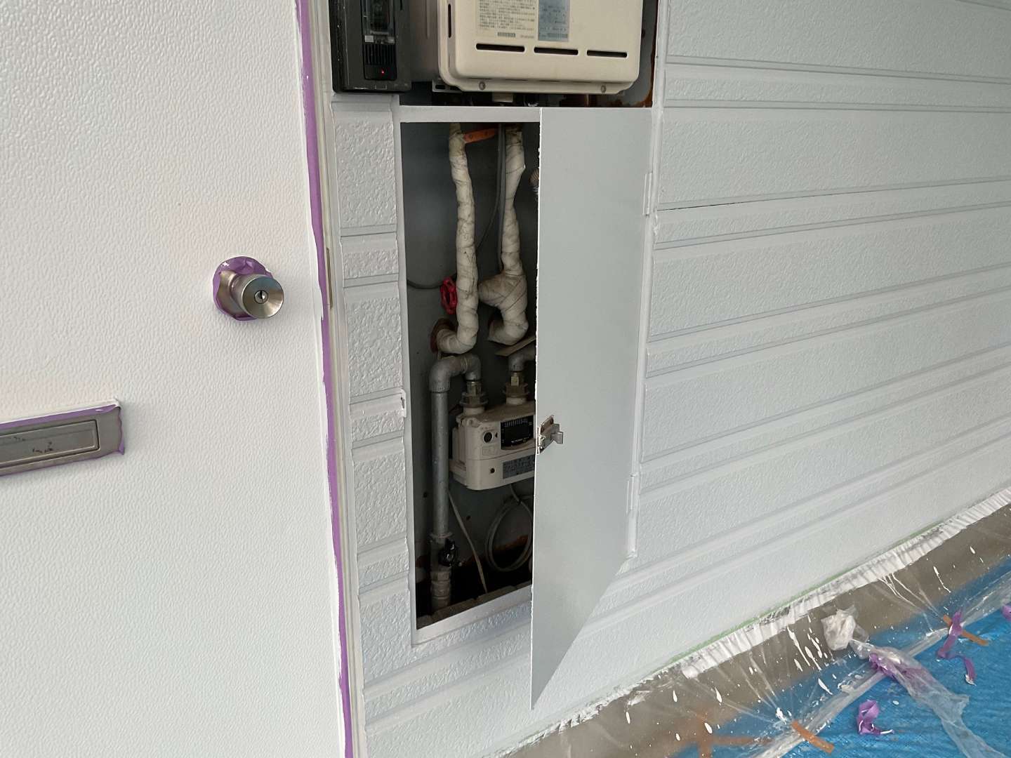 給湯機配管ドア塗装作業