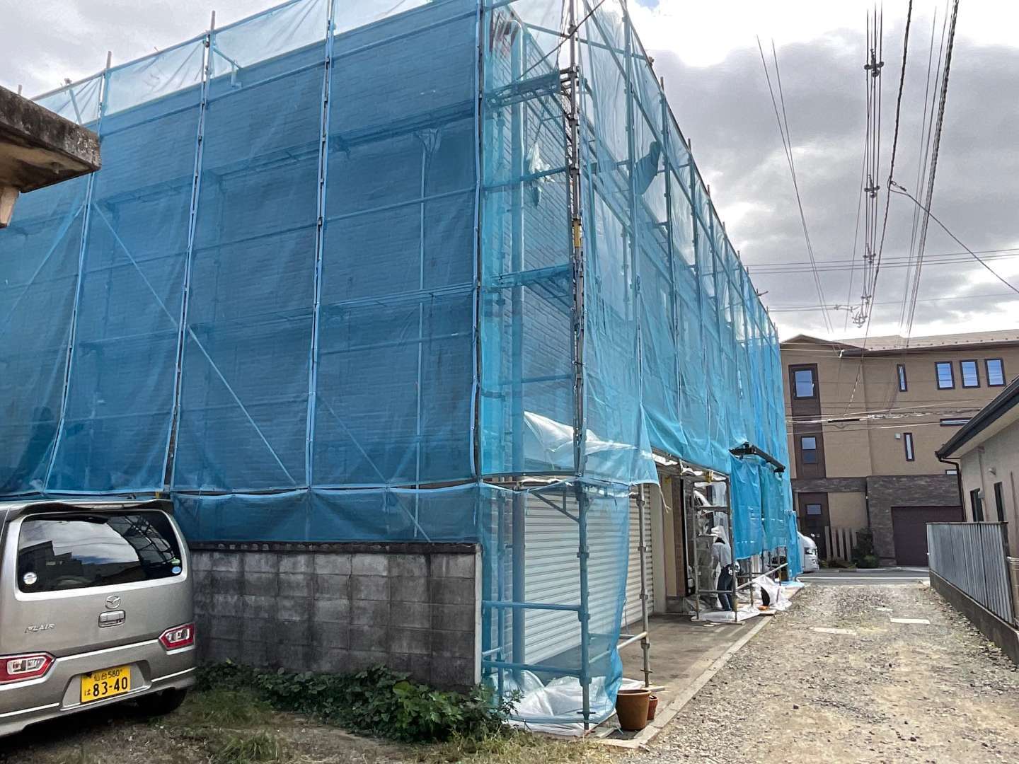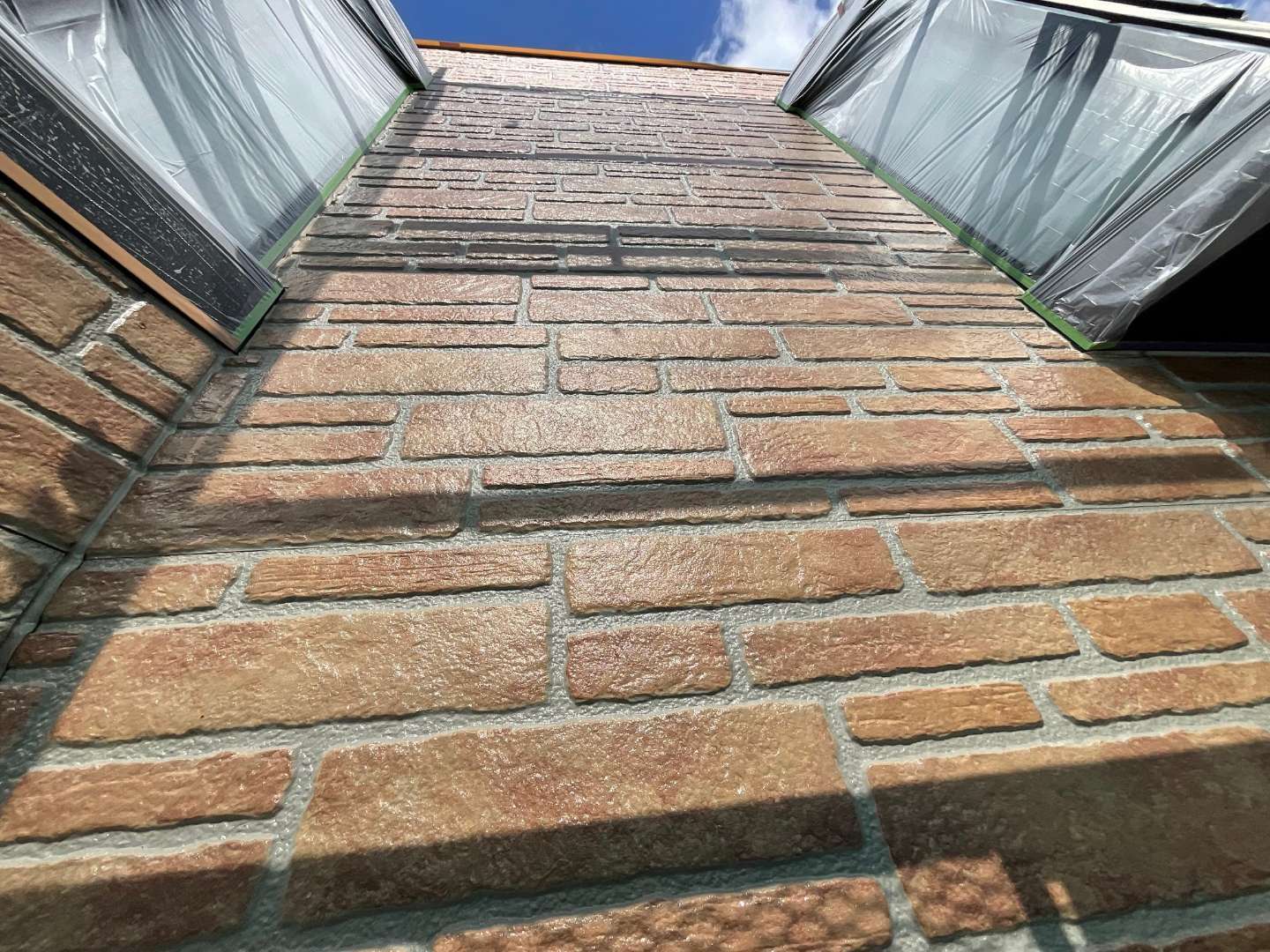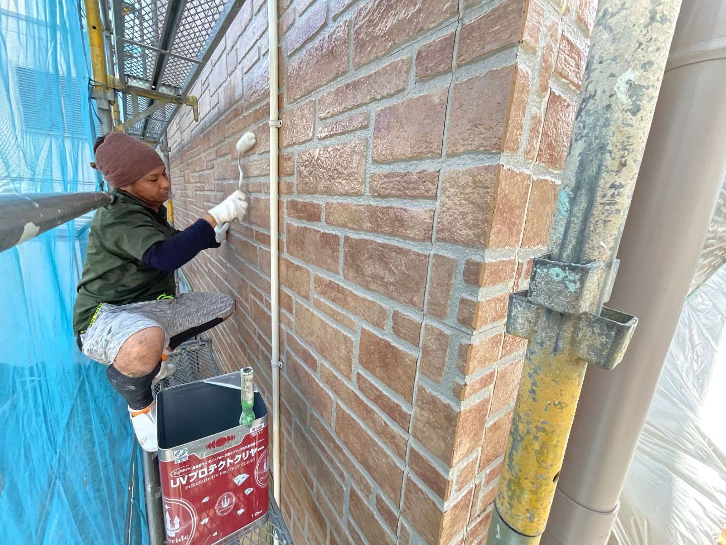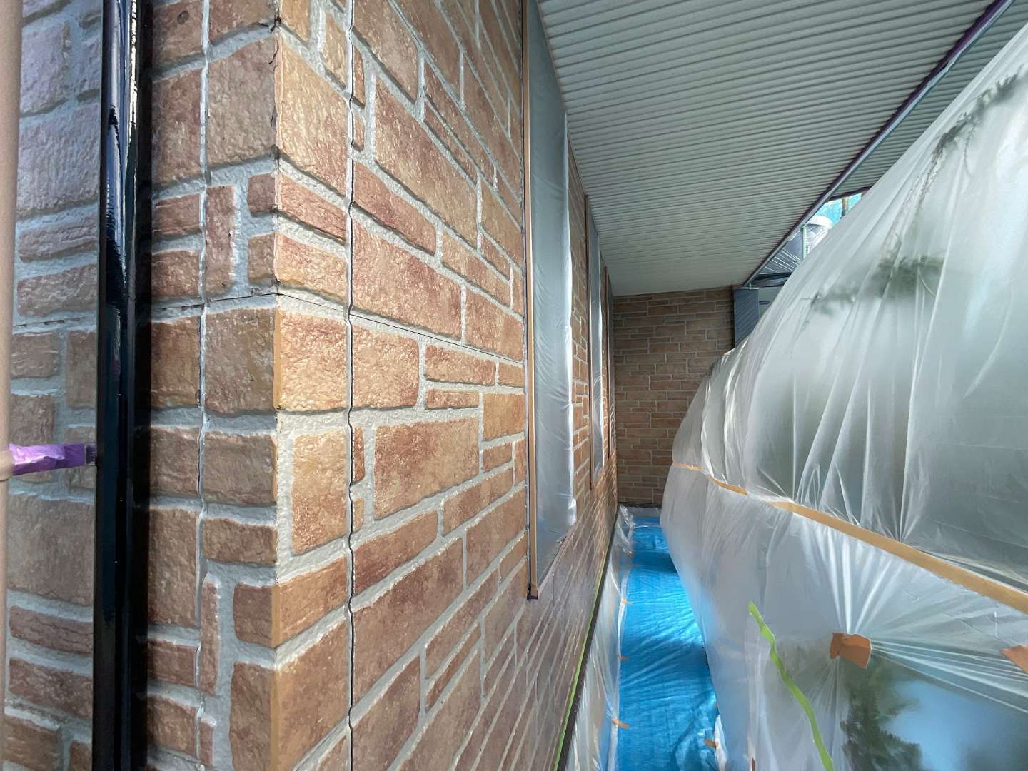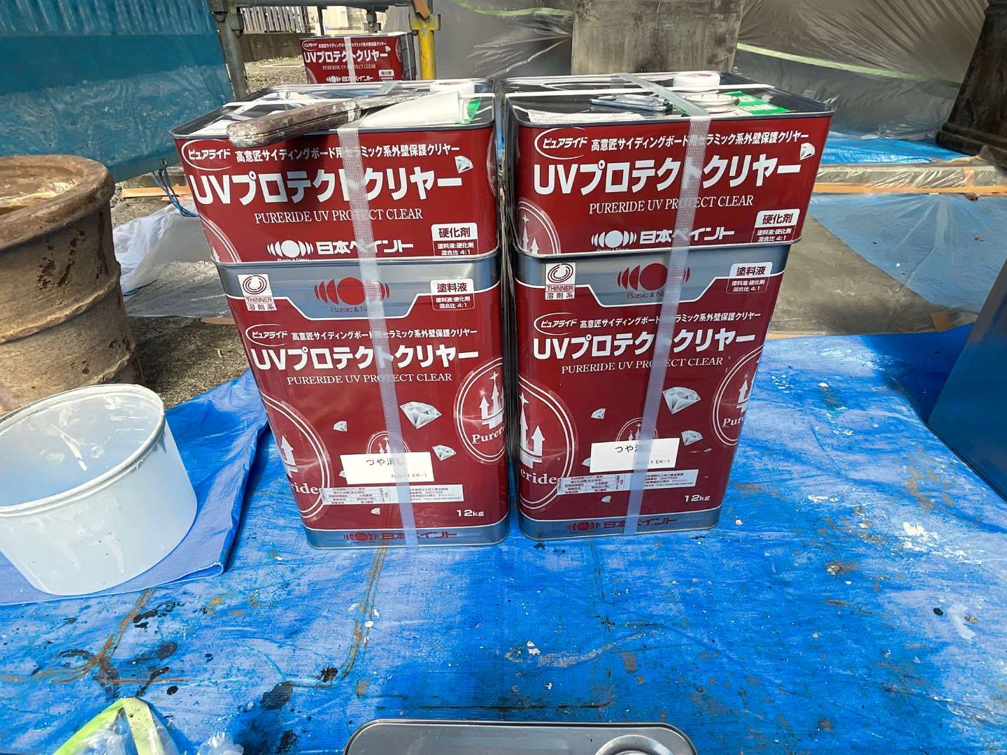 本日の作業は、外壁中塗り塗装、軒天塗装です。