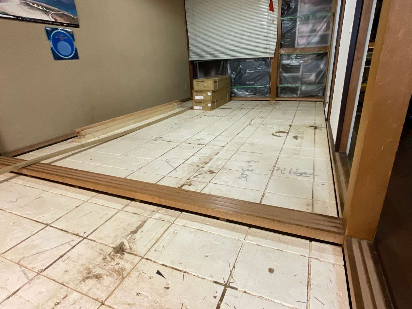 明日は1部屋フロアー材貼り作業です。