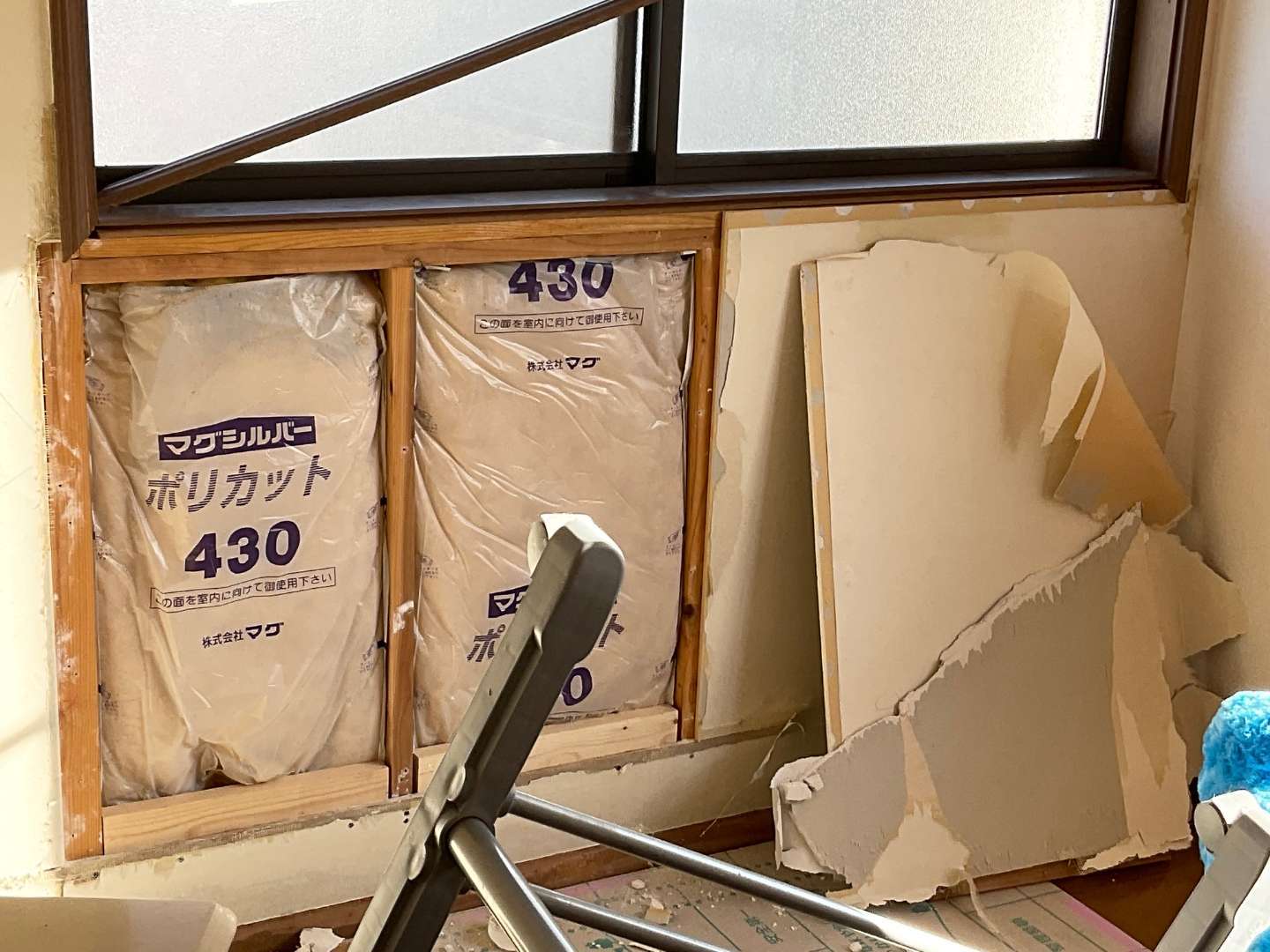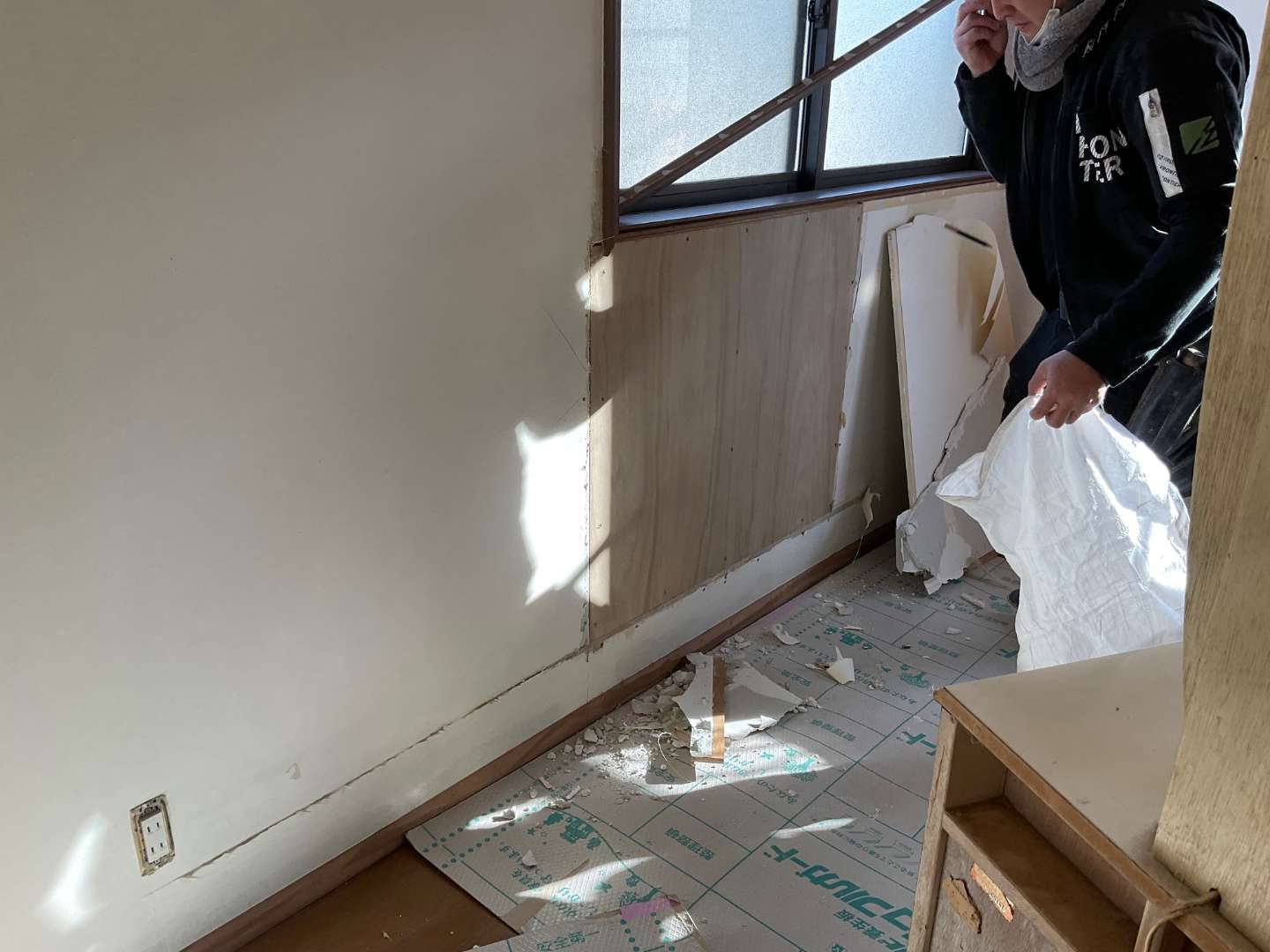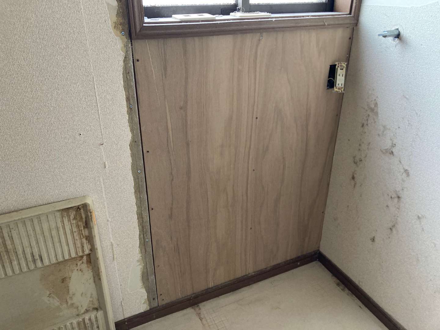 既存壁石膏ボードから、合板ベニヤ張りです。